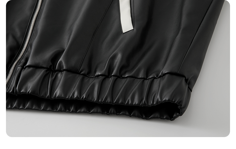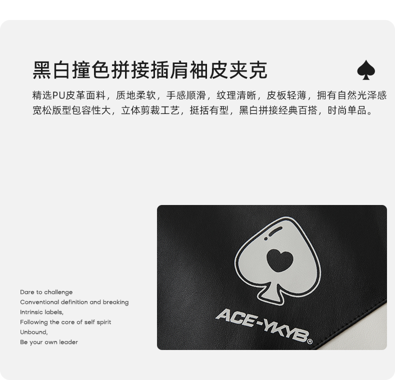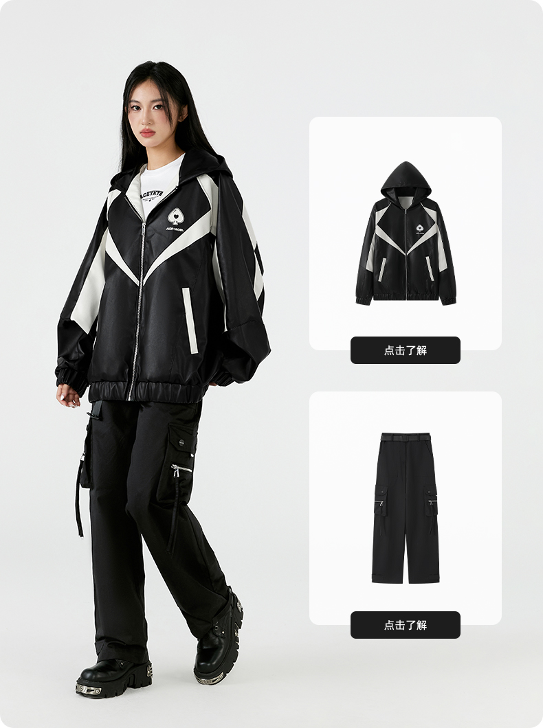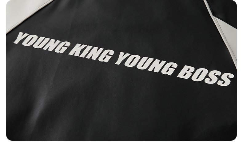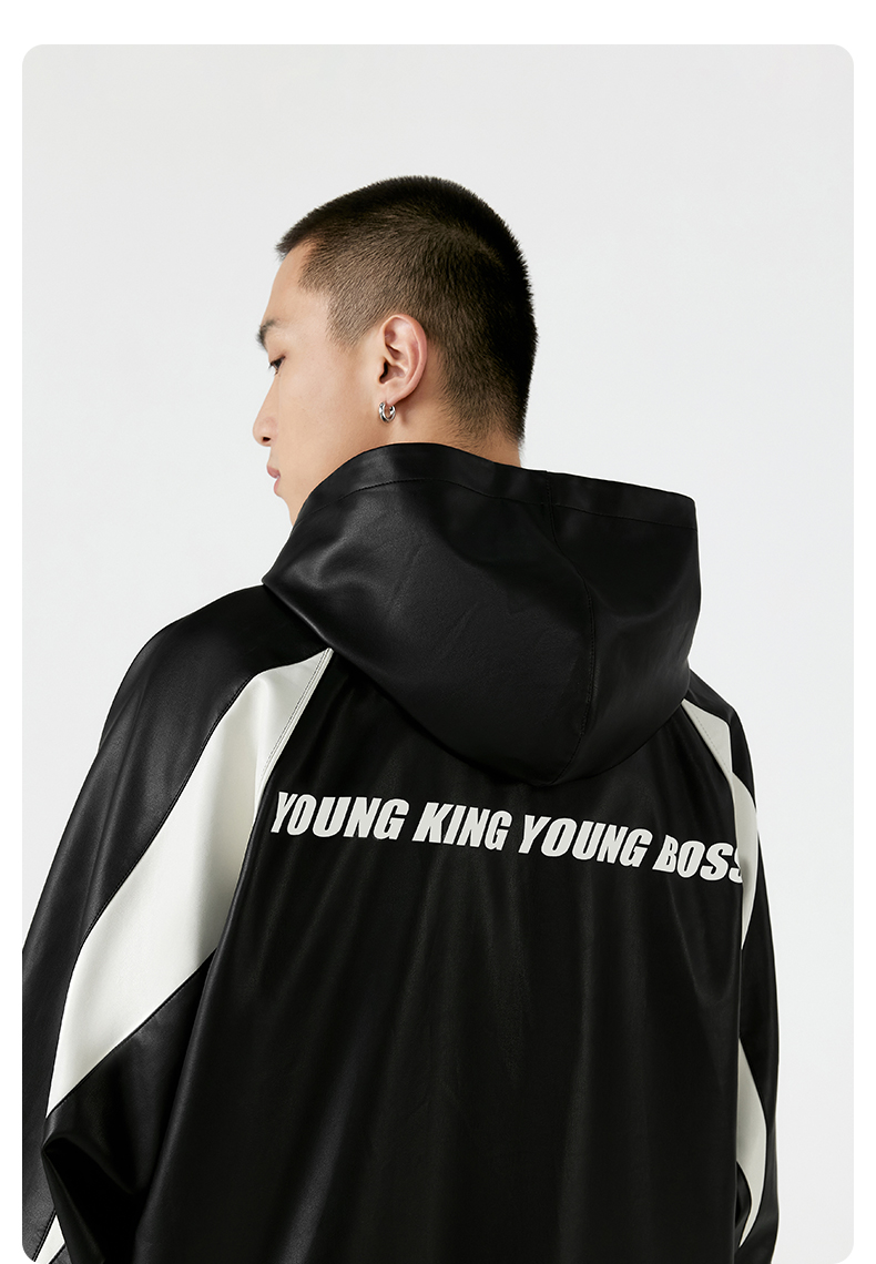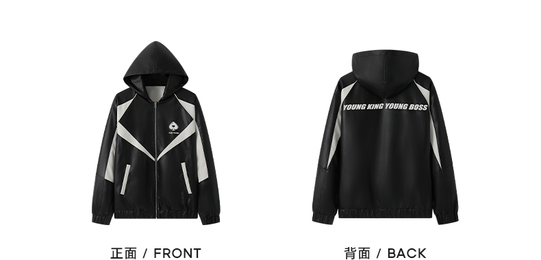YKYB 黑白拼接撞色连帽夹克潮牌秋季新款上衣美式街头宽松PU外套