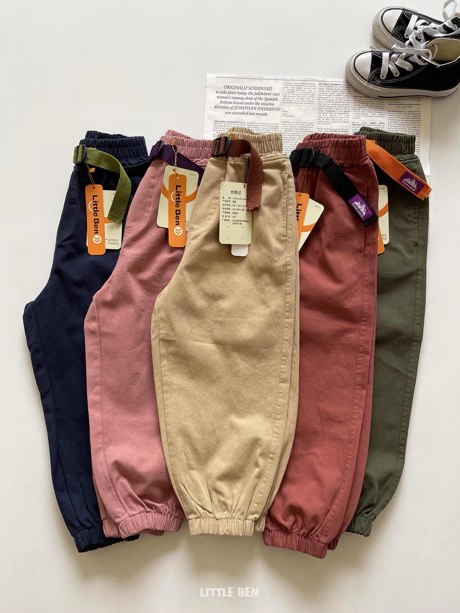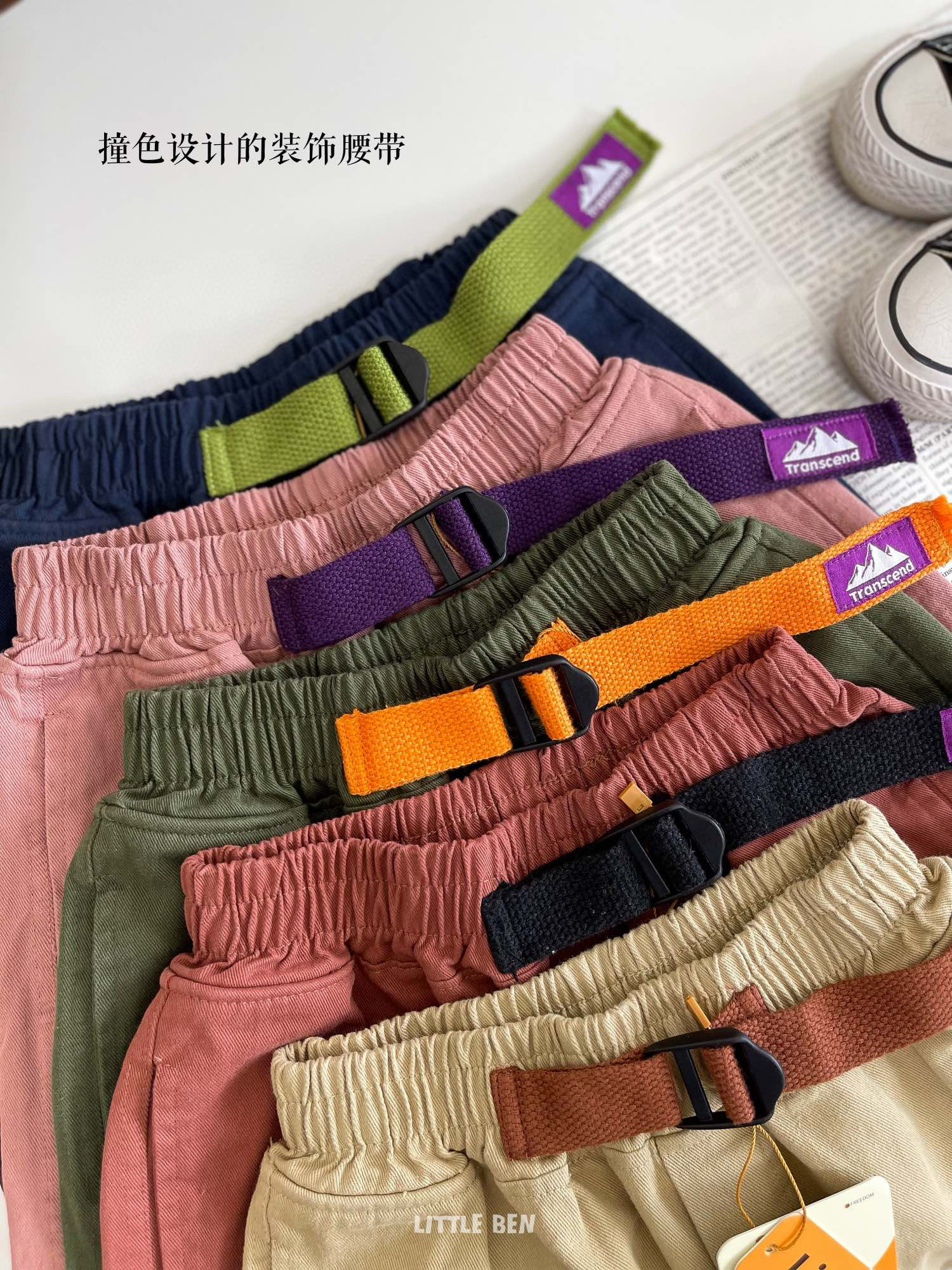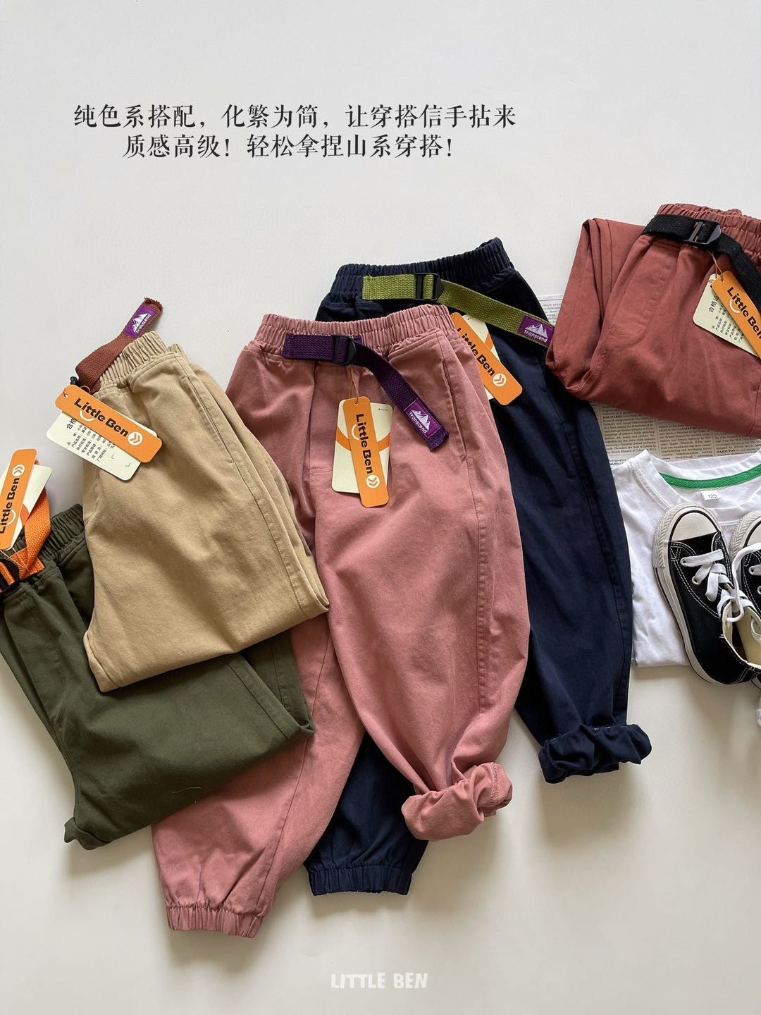 【秋季服饰丨little ben山系儿童棉布休闲裤】面料柔软舒适,可穿至170码,整体版型宽松立体,不挑身材,走线工整耐穿,撞色装饰腰带设计,简约时尚又百搭,多色可选~