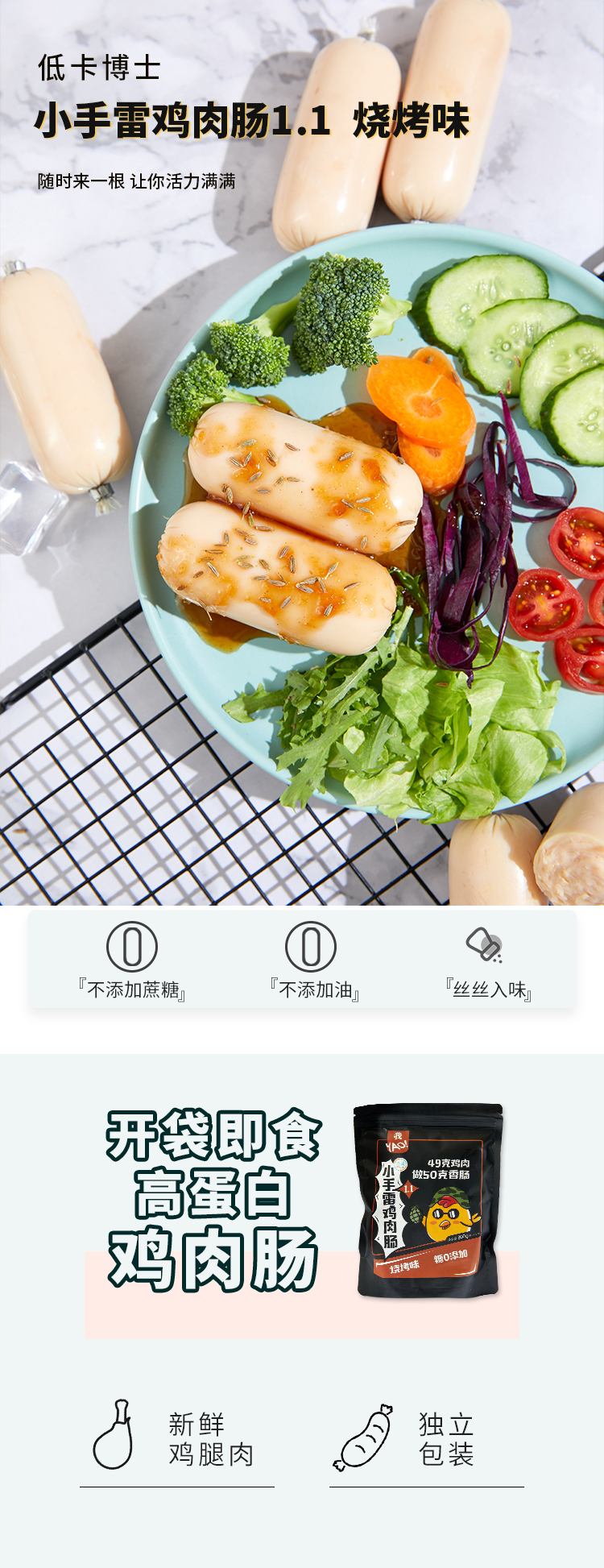 健身零食 低卡博士小手雷鸡肉肠 烧烤味