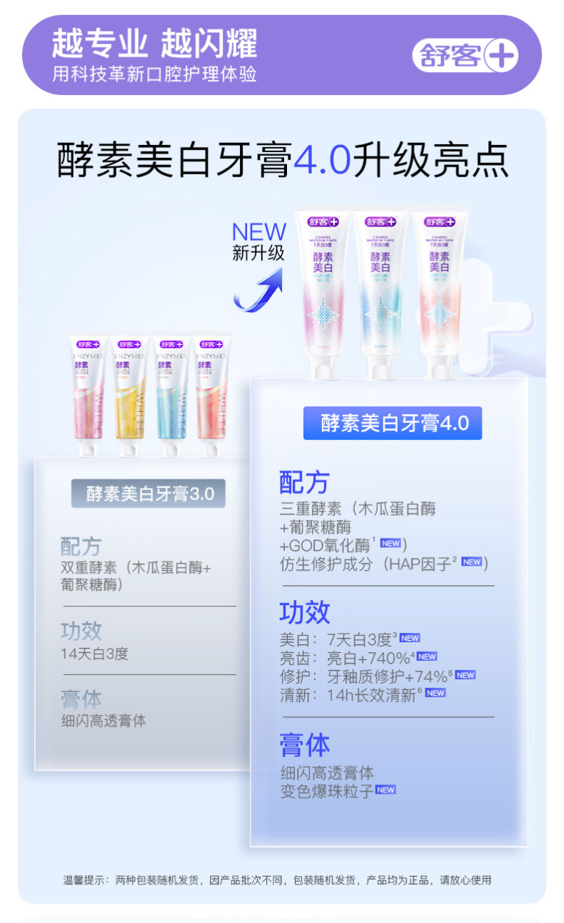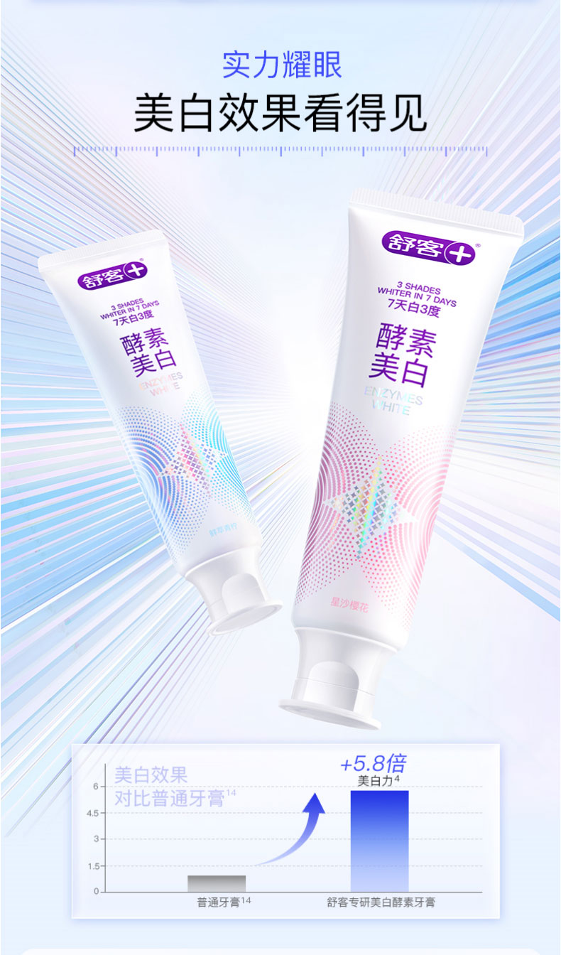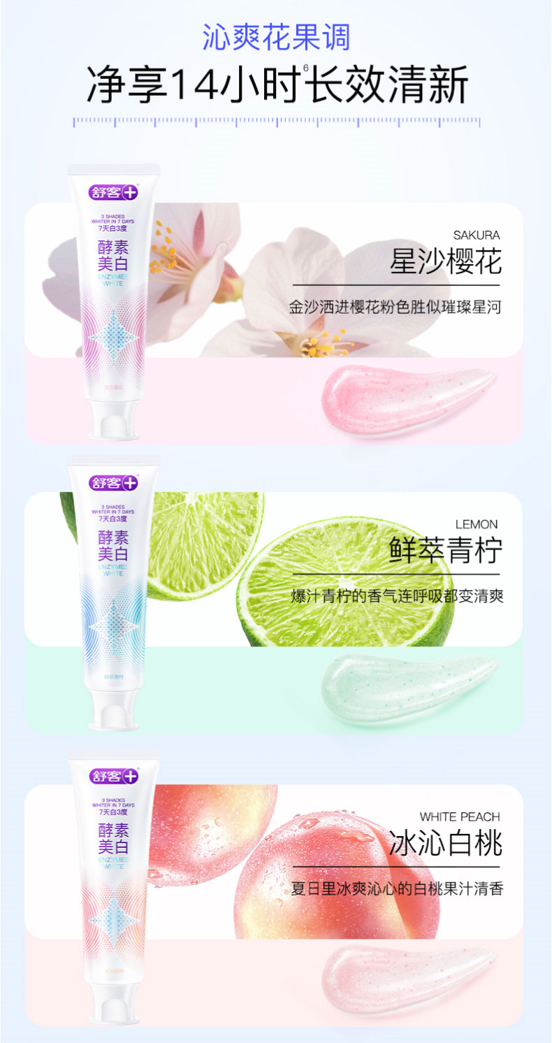 舒客丨酵素牙膏120g*3支 混合口味(樱花味+蜜桃味+青柠味)