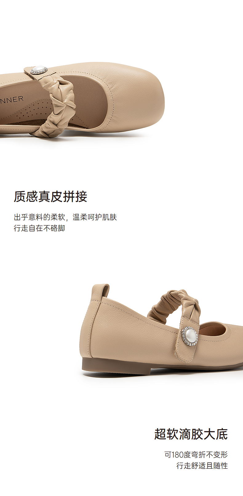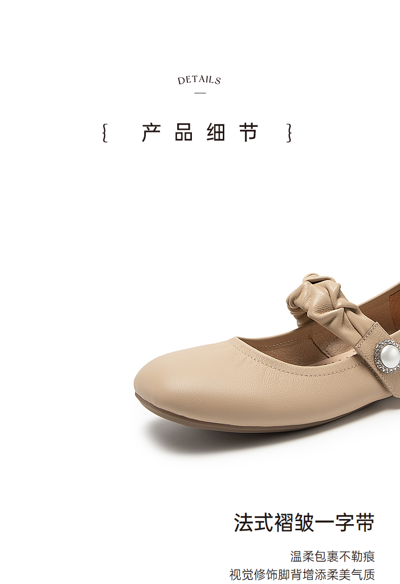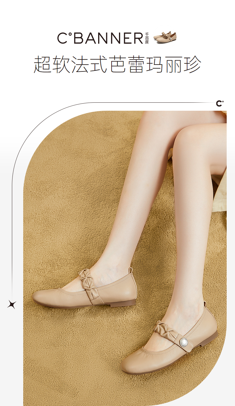 千百度芭蕾舞鞋秋季平底单鞋女真皮玛丽珍鞋晚晚鞋温柔风A23408814
