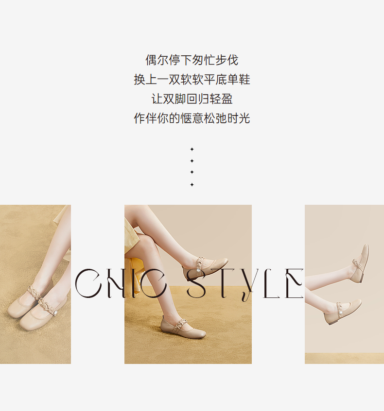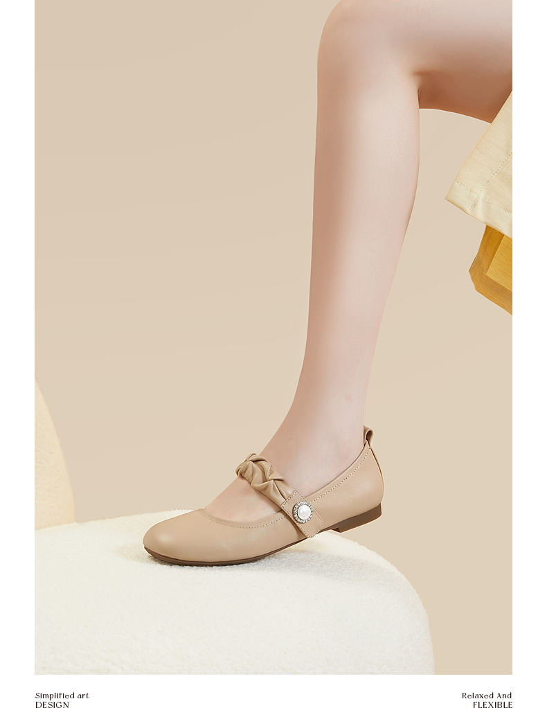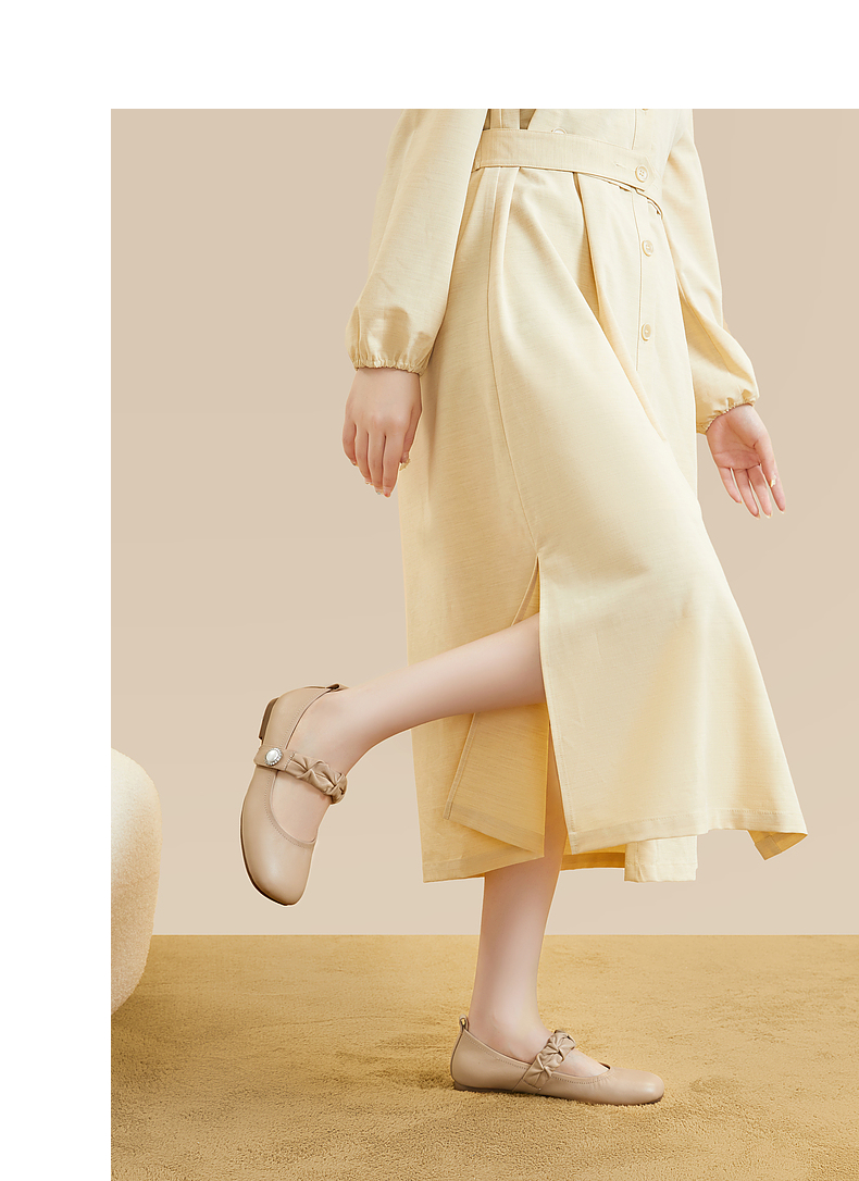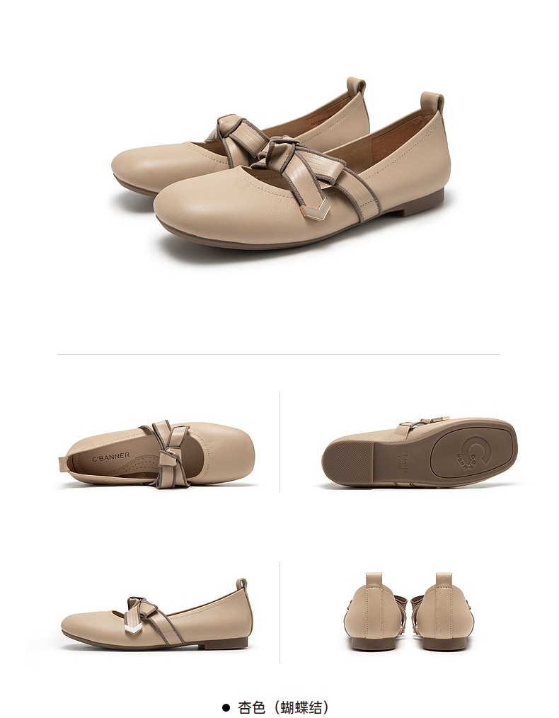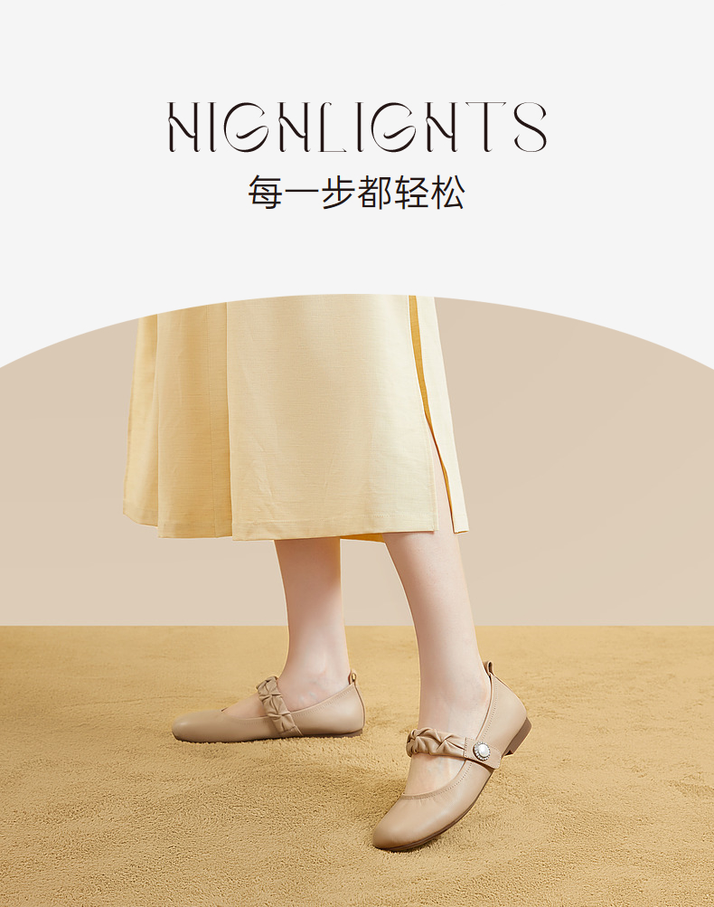 千百度芭蕾舞鞋秋季平底单鞋女真皮玛丽珍鞋晚晚鞋温柔风A23408814