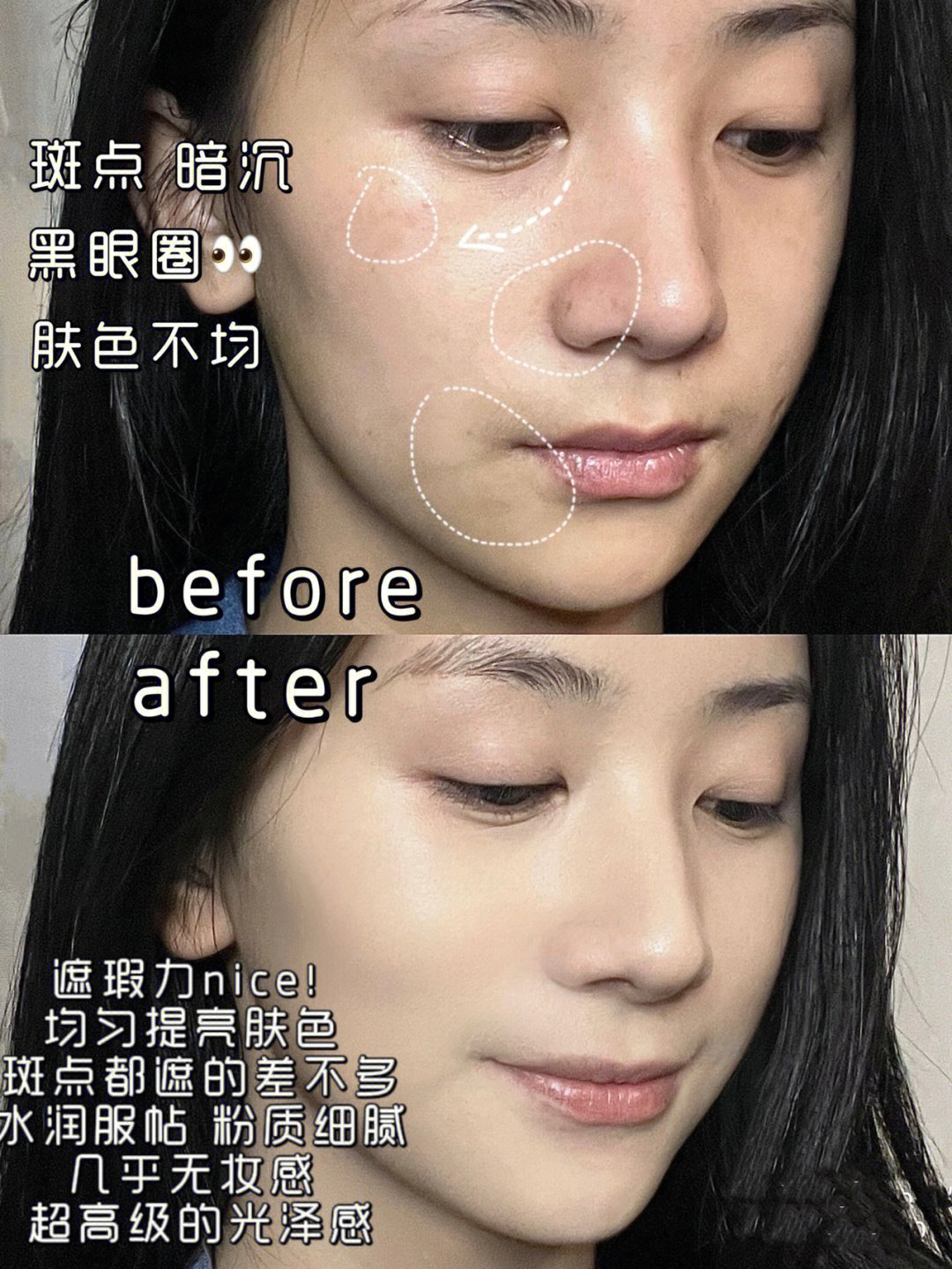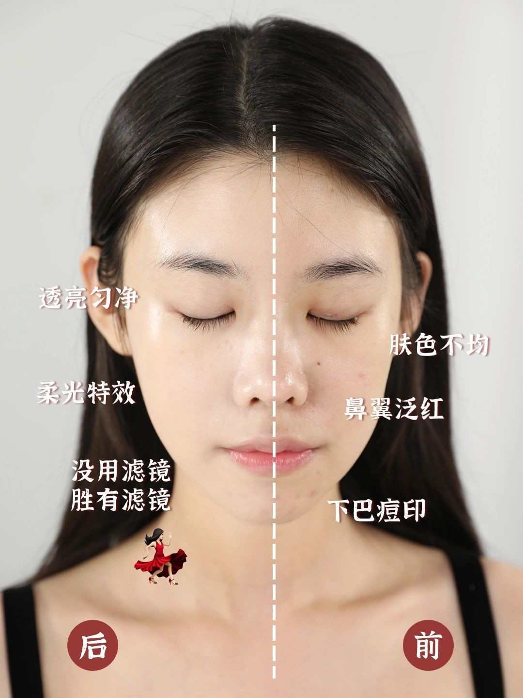 ✅半雾面的哑光清透妆感,带有微微的光泽感,不厚重不假面