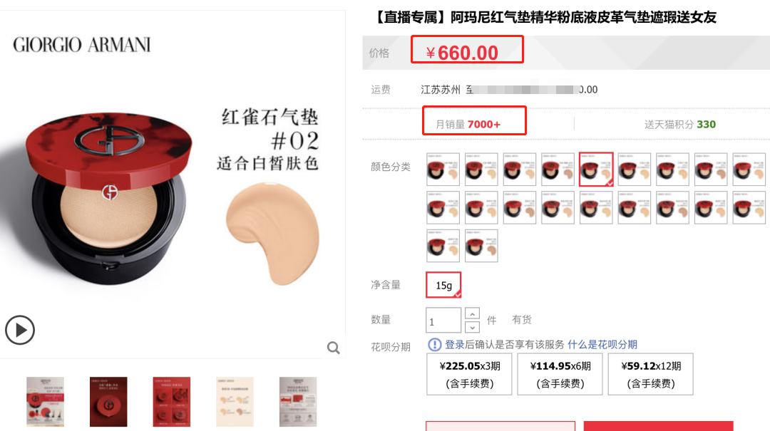 【品名】 阿玛尼红雀石气垫正装 2# 象牙白