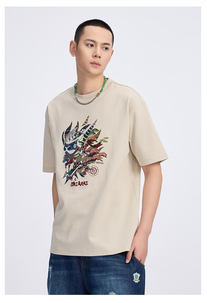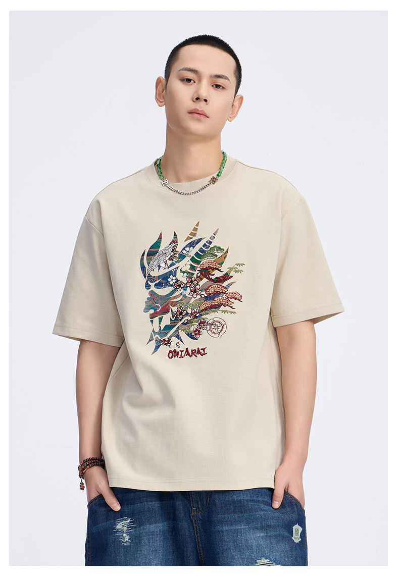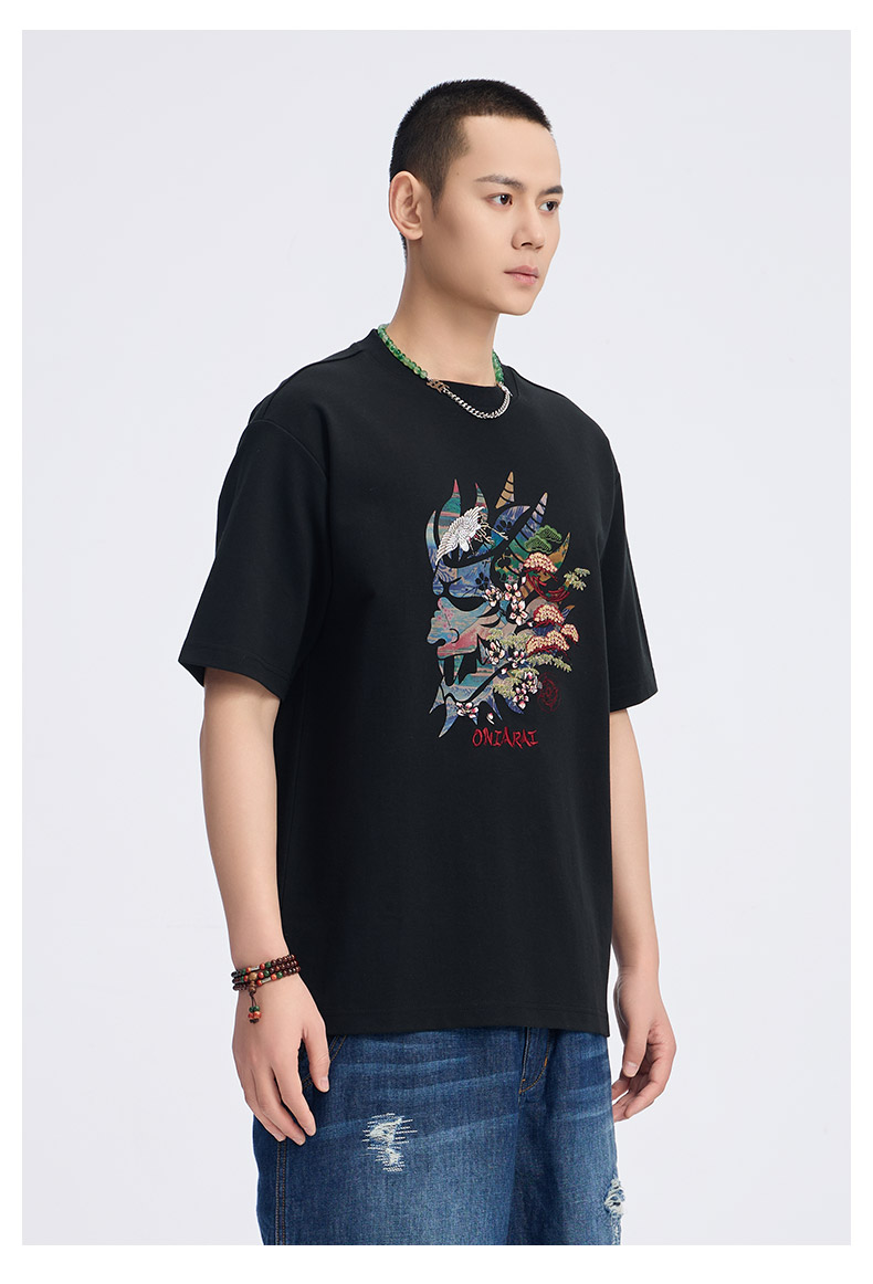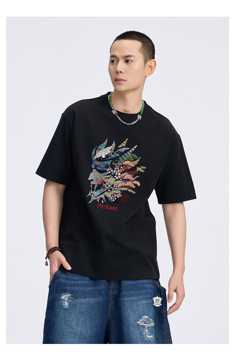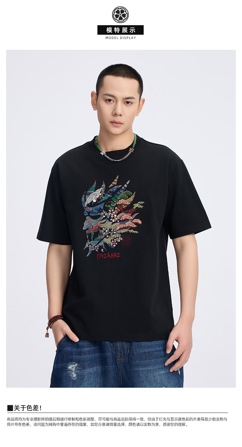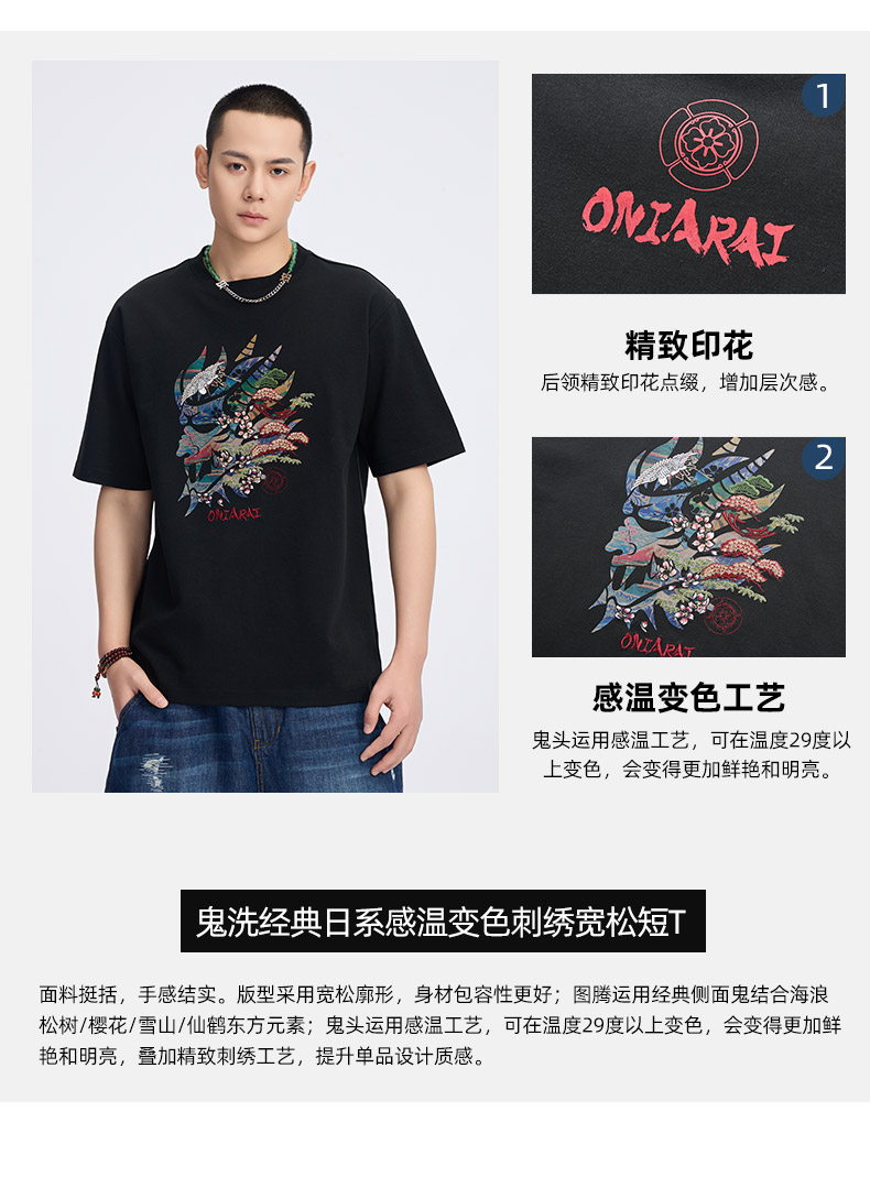 ONIARAI/鬼洗25春夏新品经典日系感温变色刺绣宽松短T男 B840275