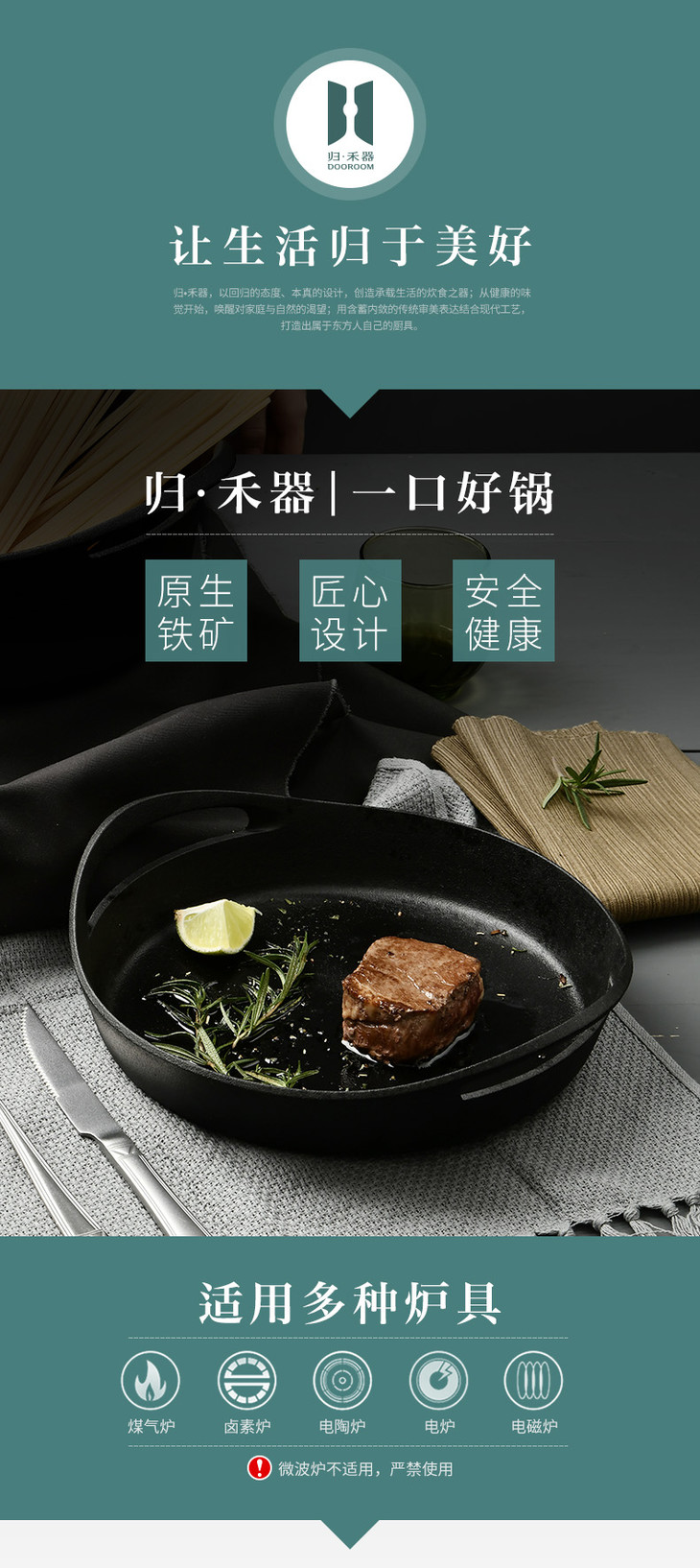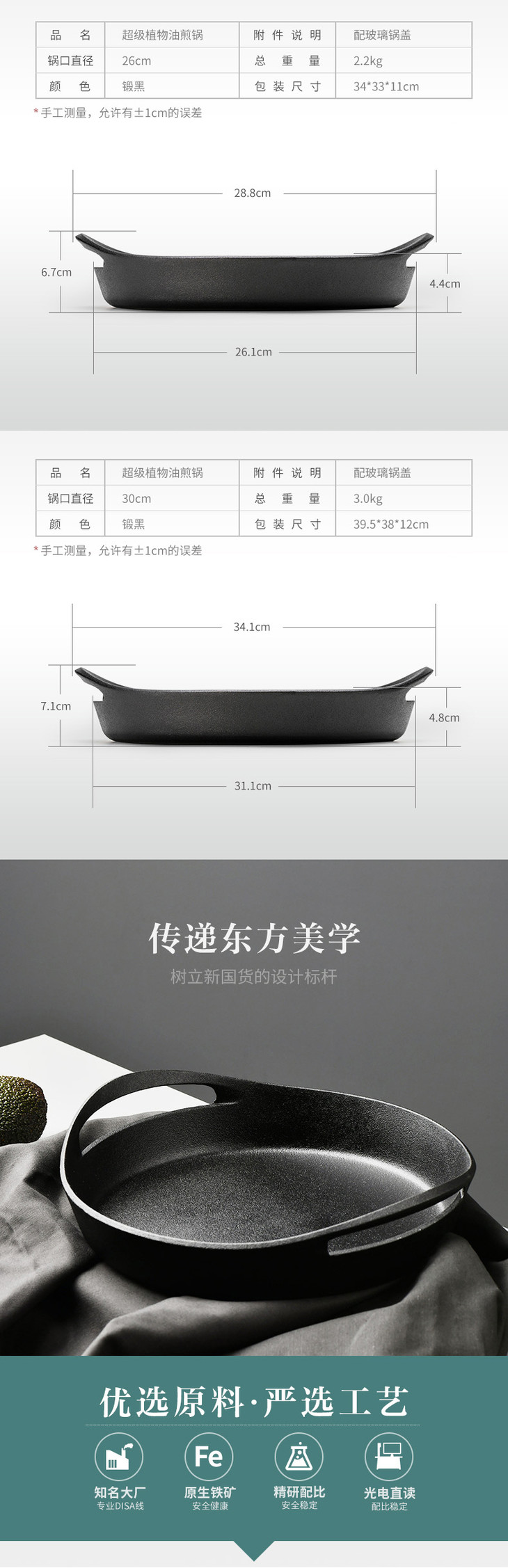 【健康无涂层】双耳铸铁煎锅 节能少烟 无涂层 【归禾器】