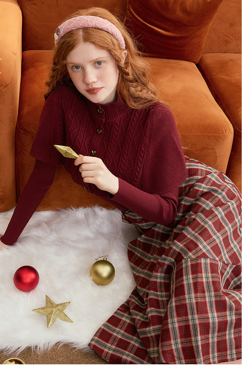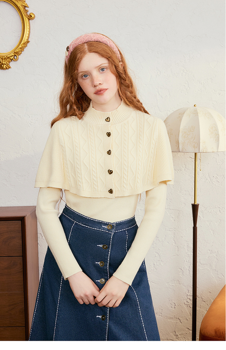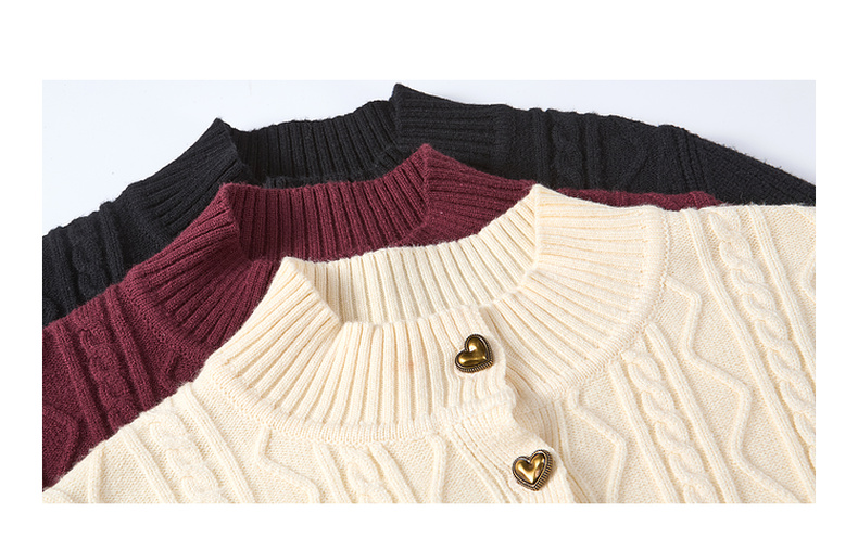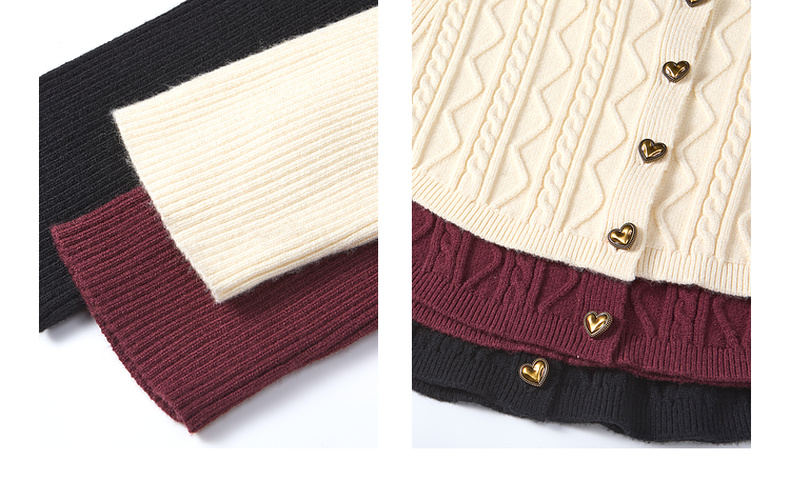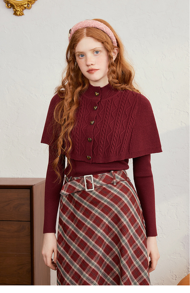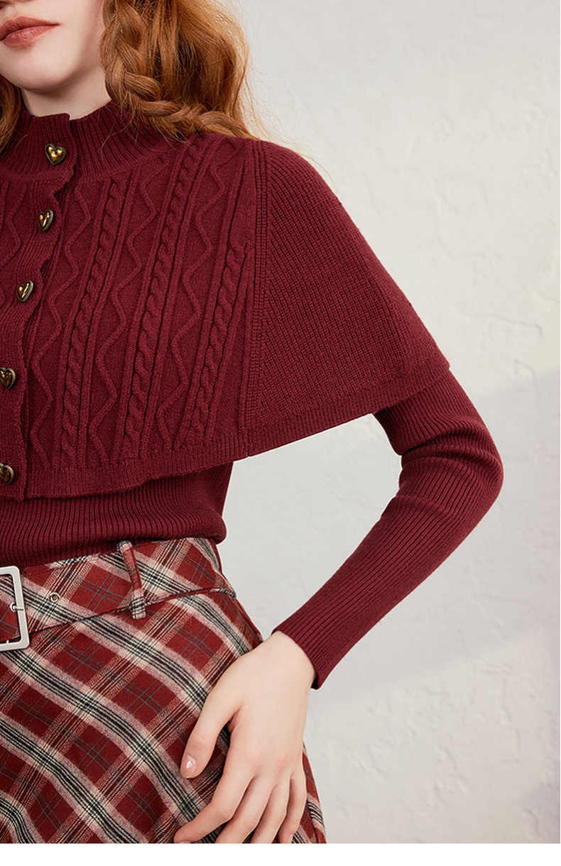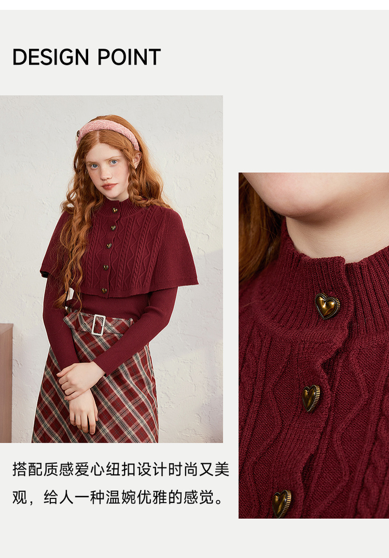 两三事 红莓暮雪 2024冬季新款复古心形纽扣两件套针织衫女