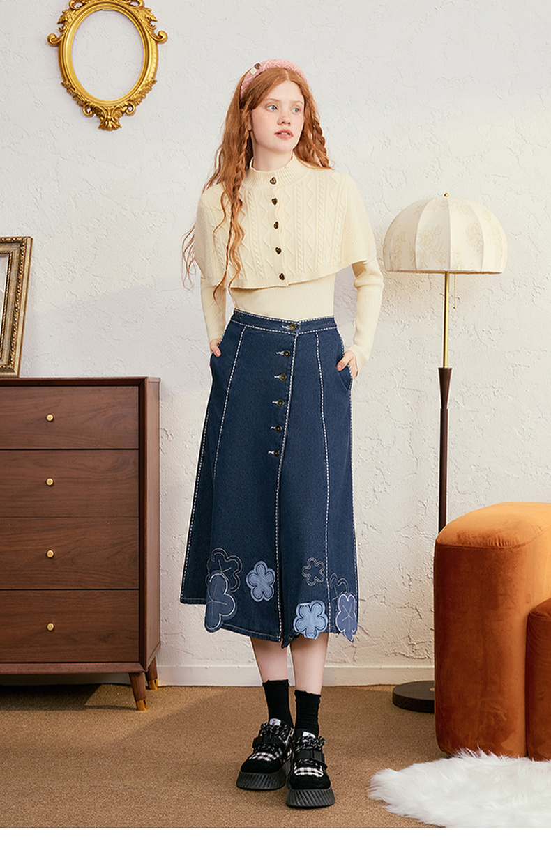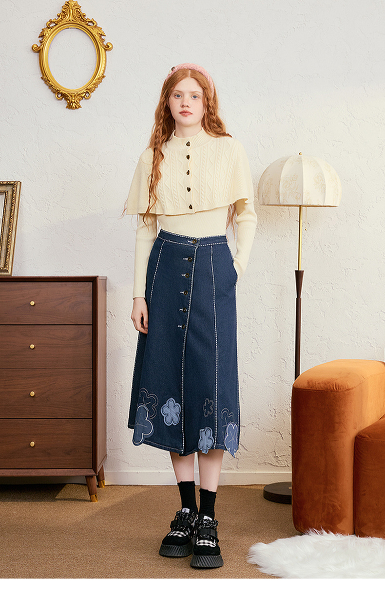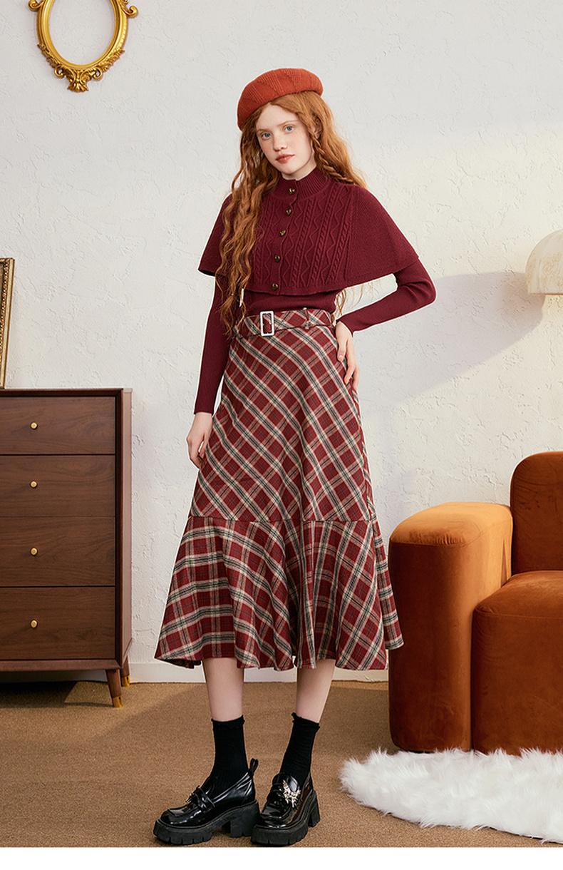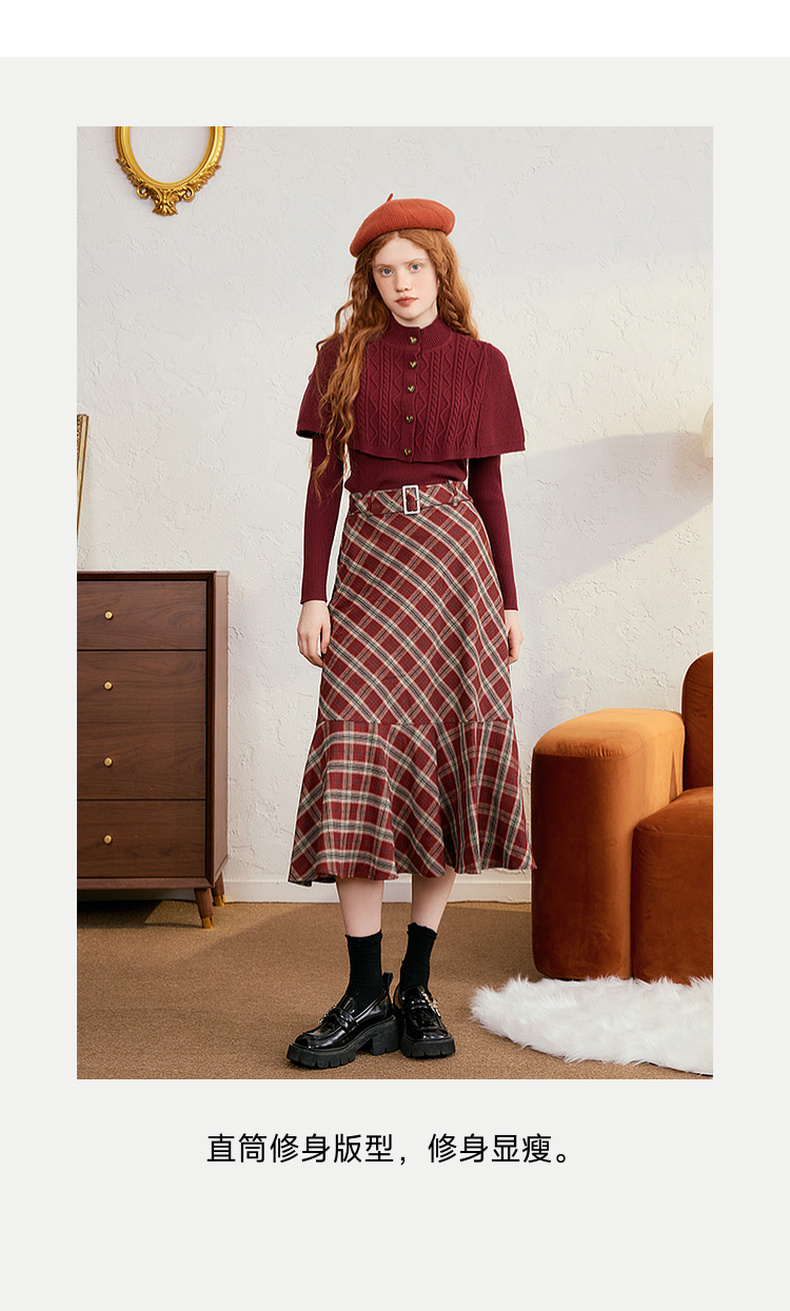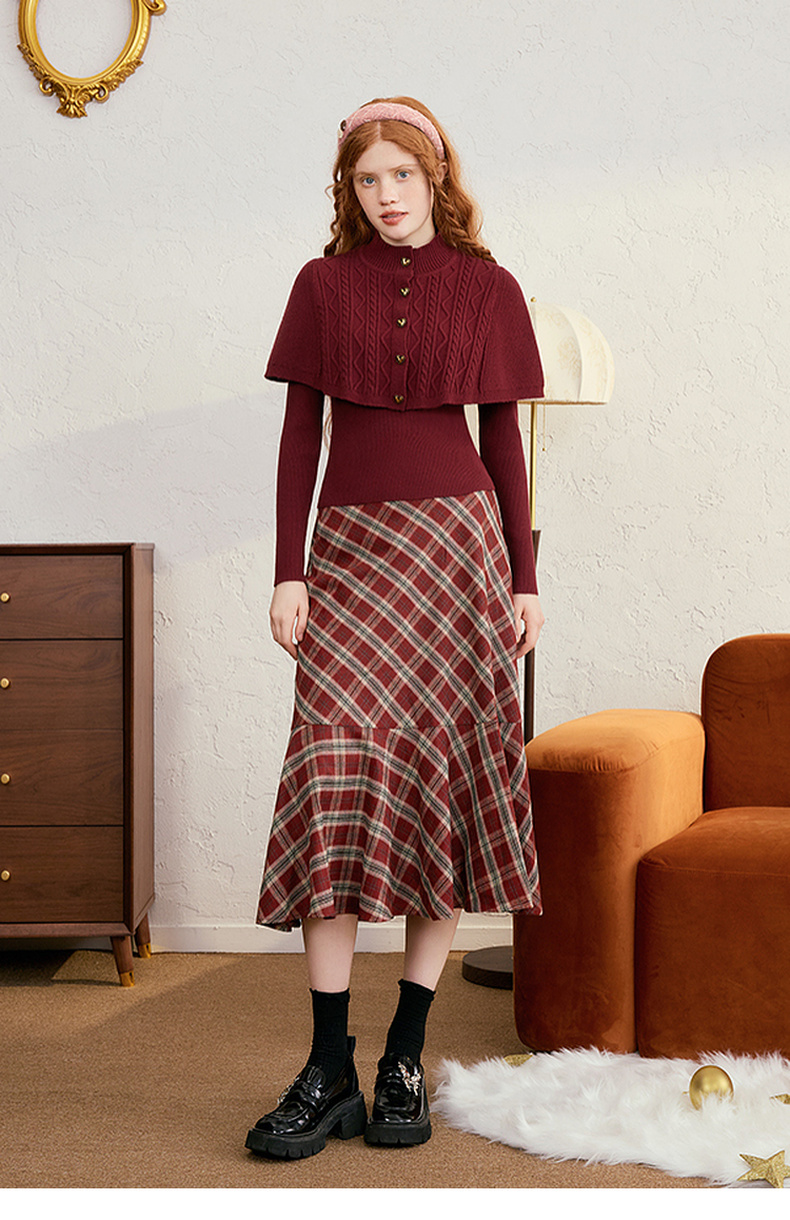 两三事 红莓暮雪 2024冬季新款复古心形纽扣两件套针织衫女