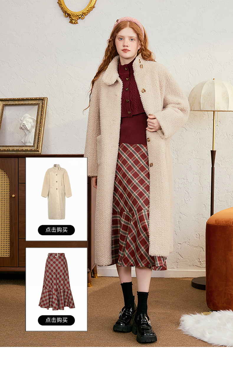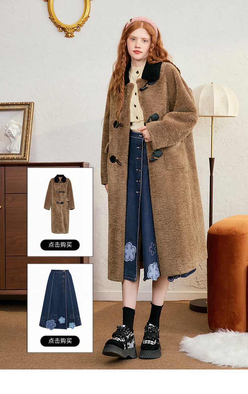 【暖冬内购】两三事 海上神探长 2024秋冬新款花朵毛巾绣拼色牛角扣毛呢外套女