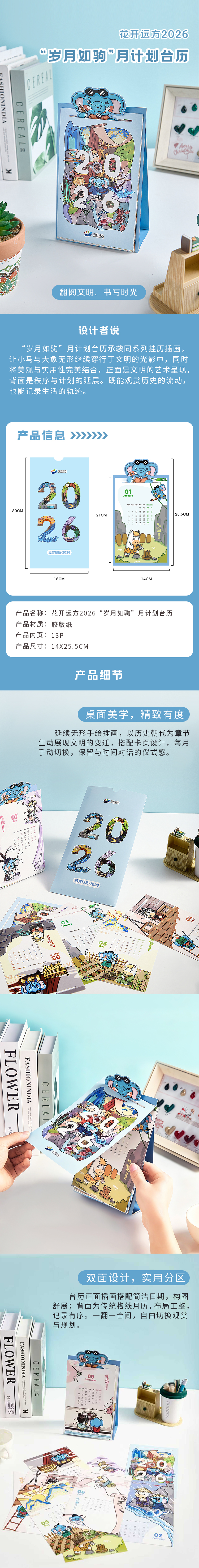 【整套】花开远方2026“岁月如驹”月历(挂历+台历)