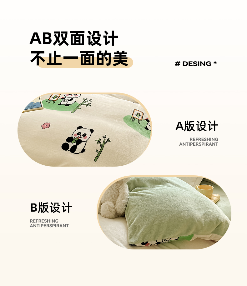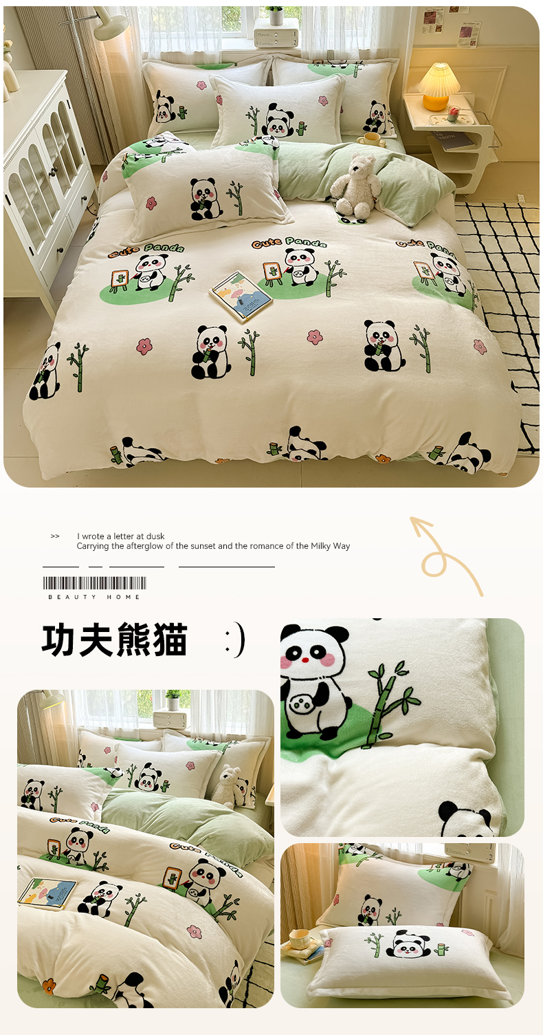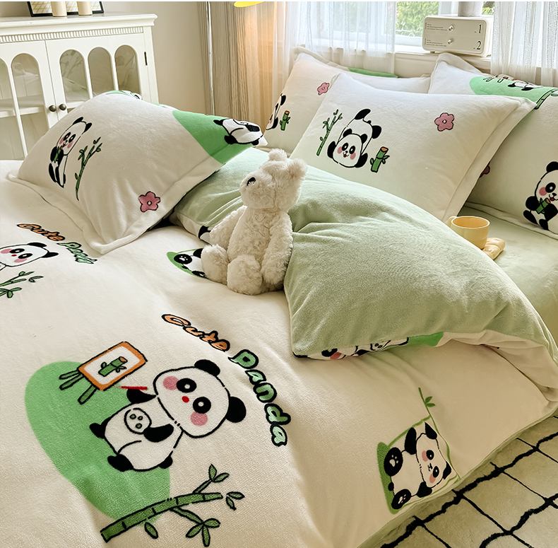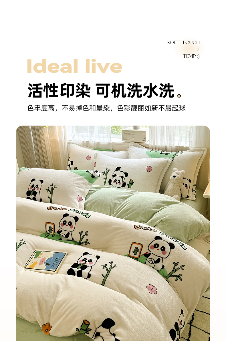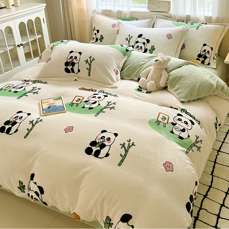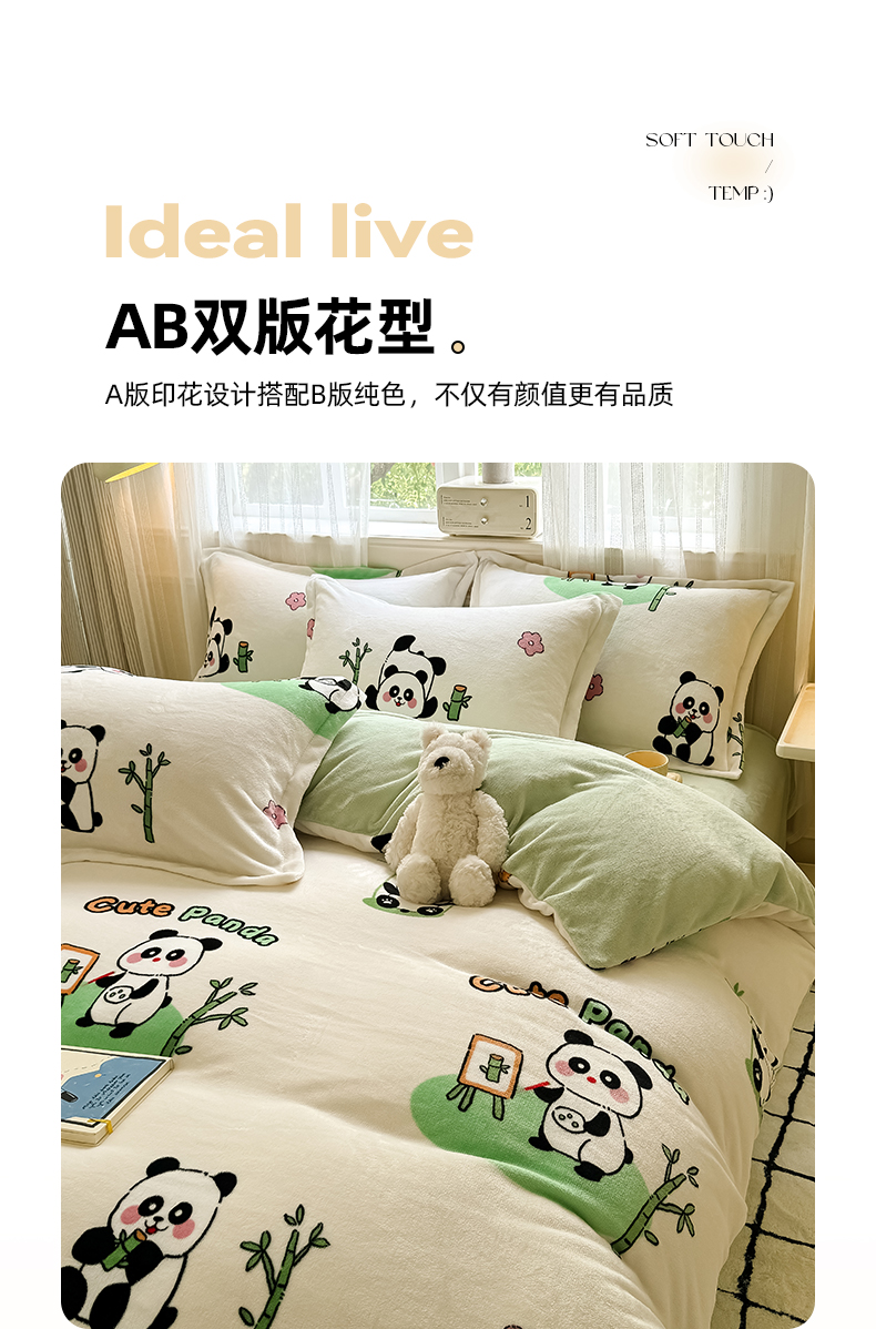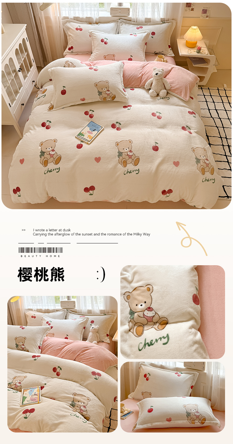 【热卖推荐】自然醒秋冬款A类小清新印花牛奶绒四件套卡通加厚加绒冬季法兰珊瑚绒床品被套三件套QJ