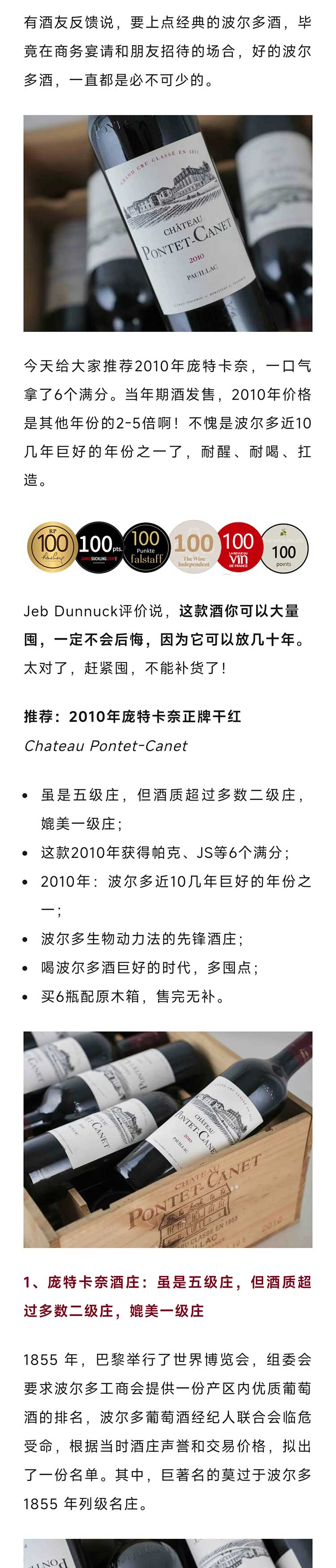 【6个满分】2010年法国波尔多列级庄庞特卡奈干红葡萄酒
