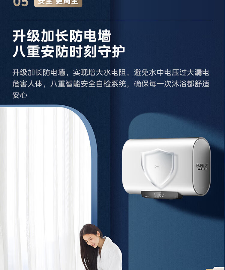 美的(Midea)扁桶电热水器家用50升纤薄双胆3300w变频速热稀土免换镁棒节能省电热水器 F50-33UT1(H)[家电]