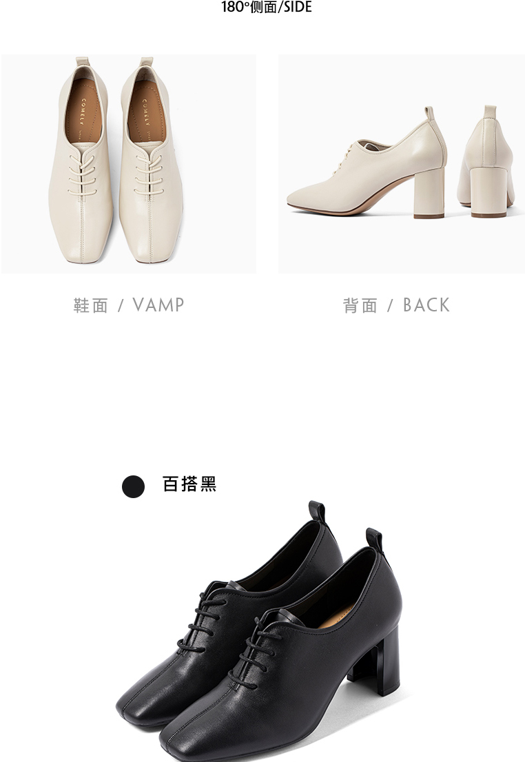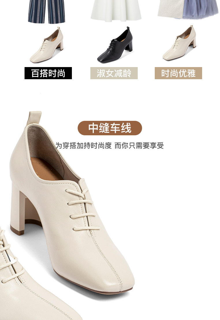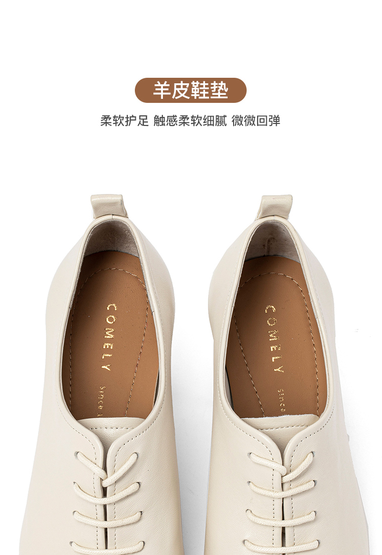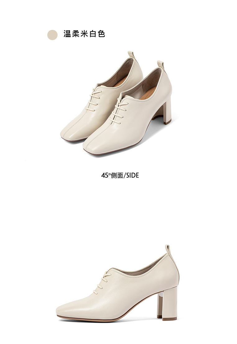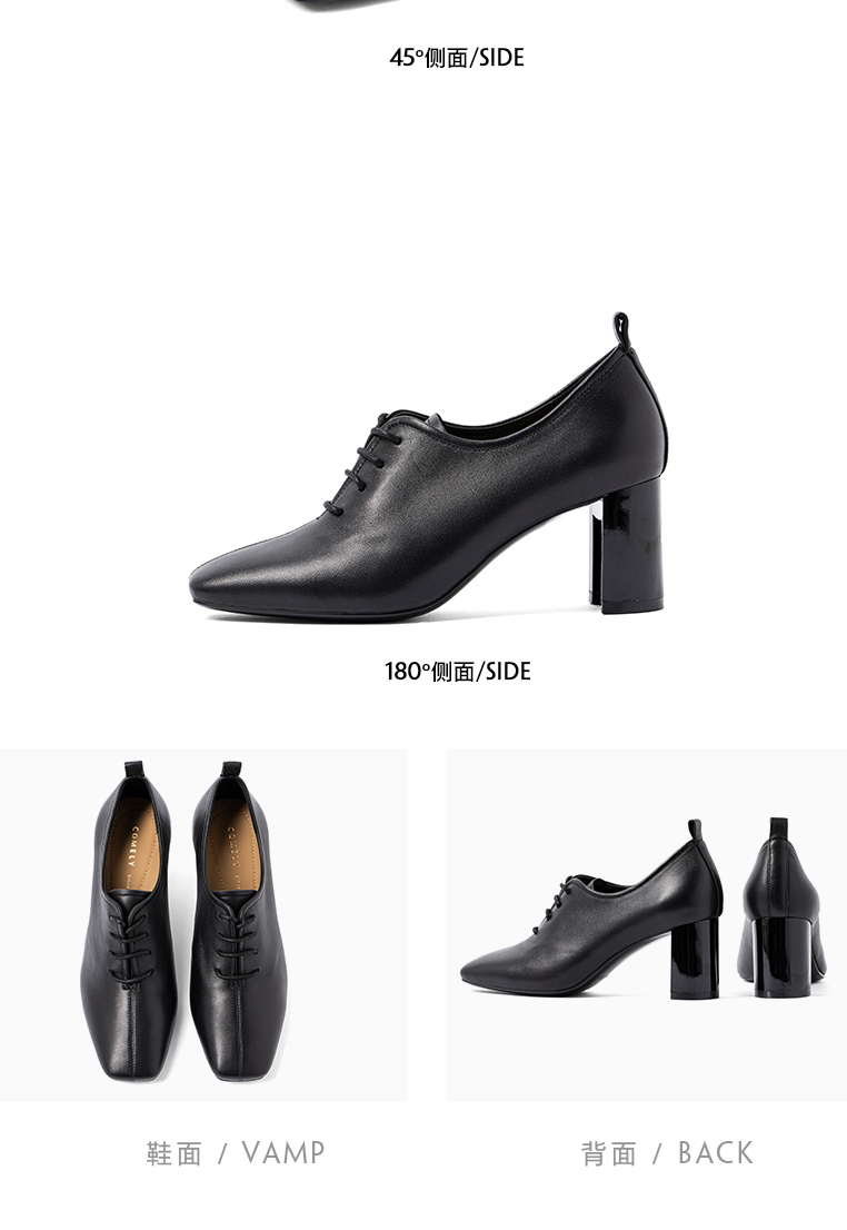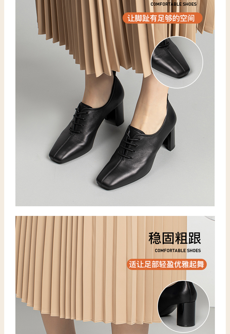康莉2021早秋新款单鞋女粗跟方头真皮英伦风系带小皮鞋KYQ16185DU01CM1