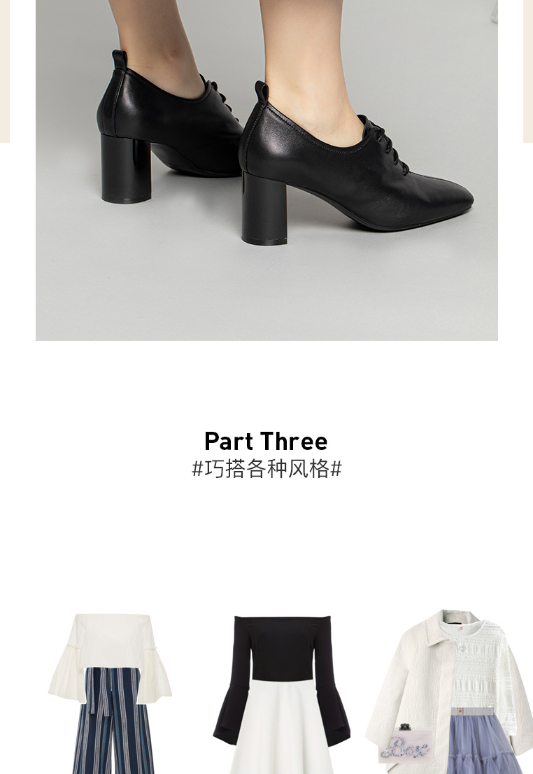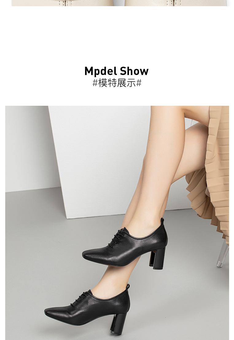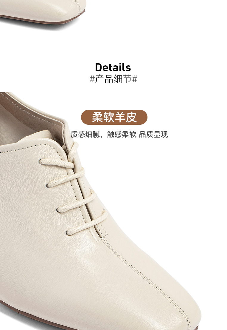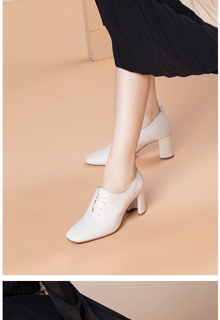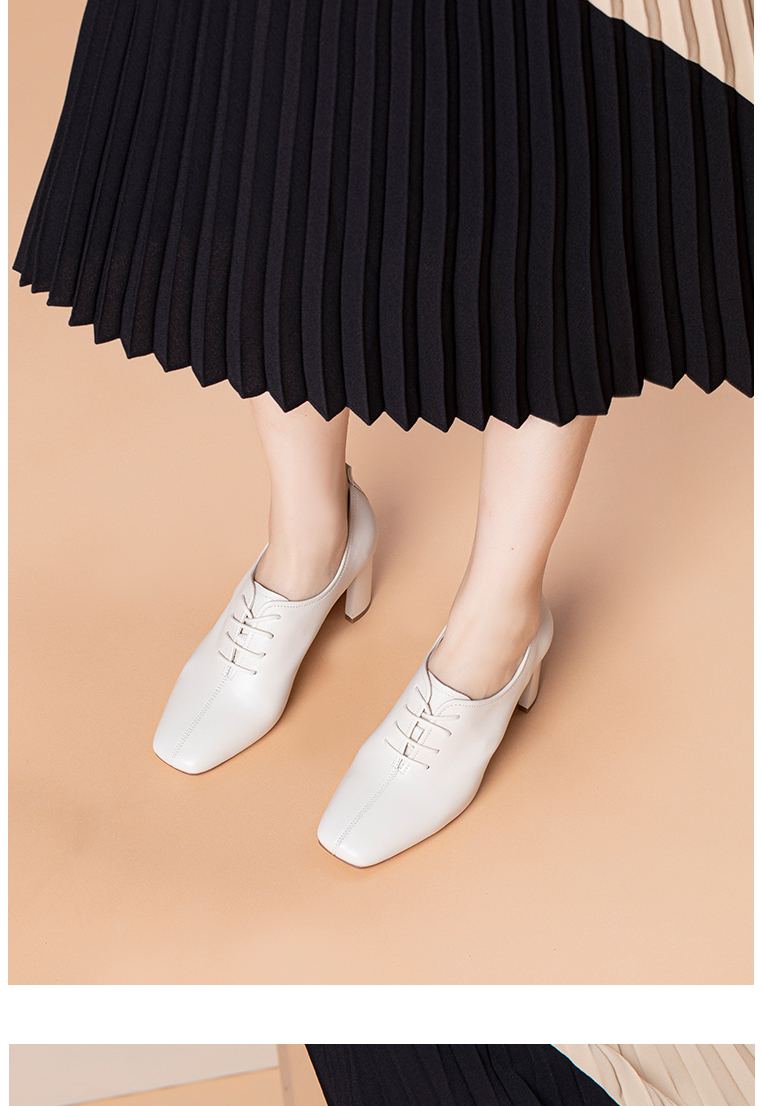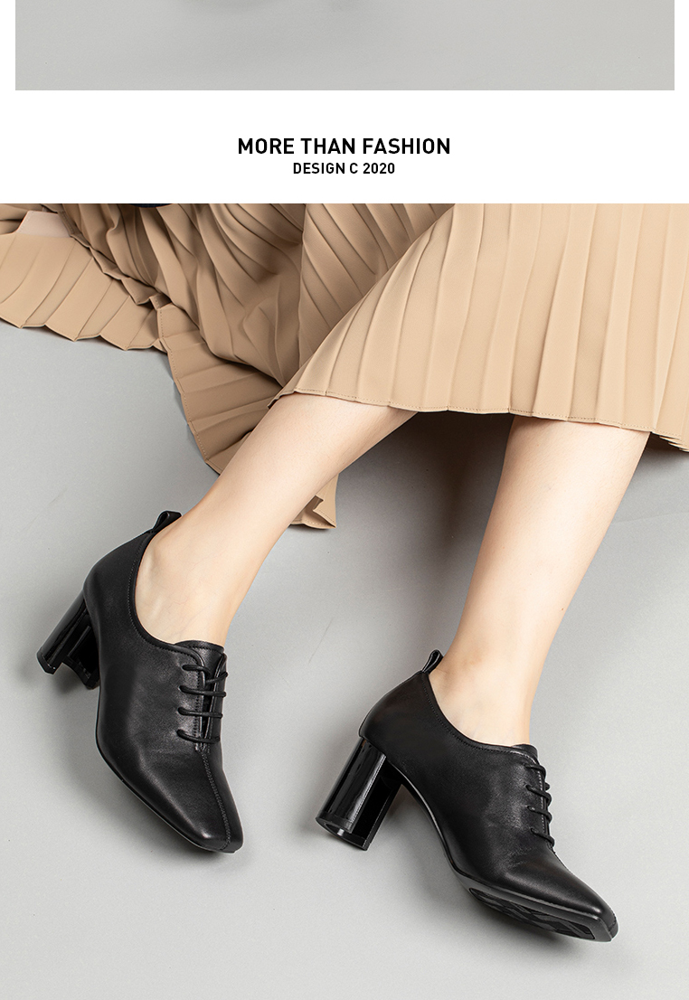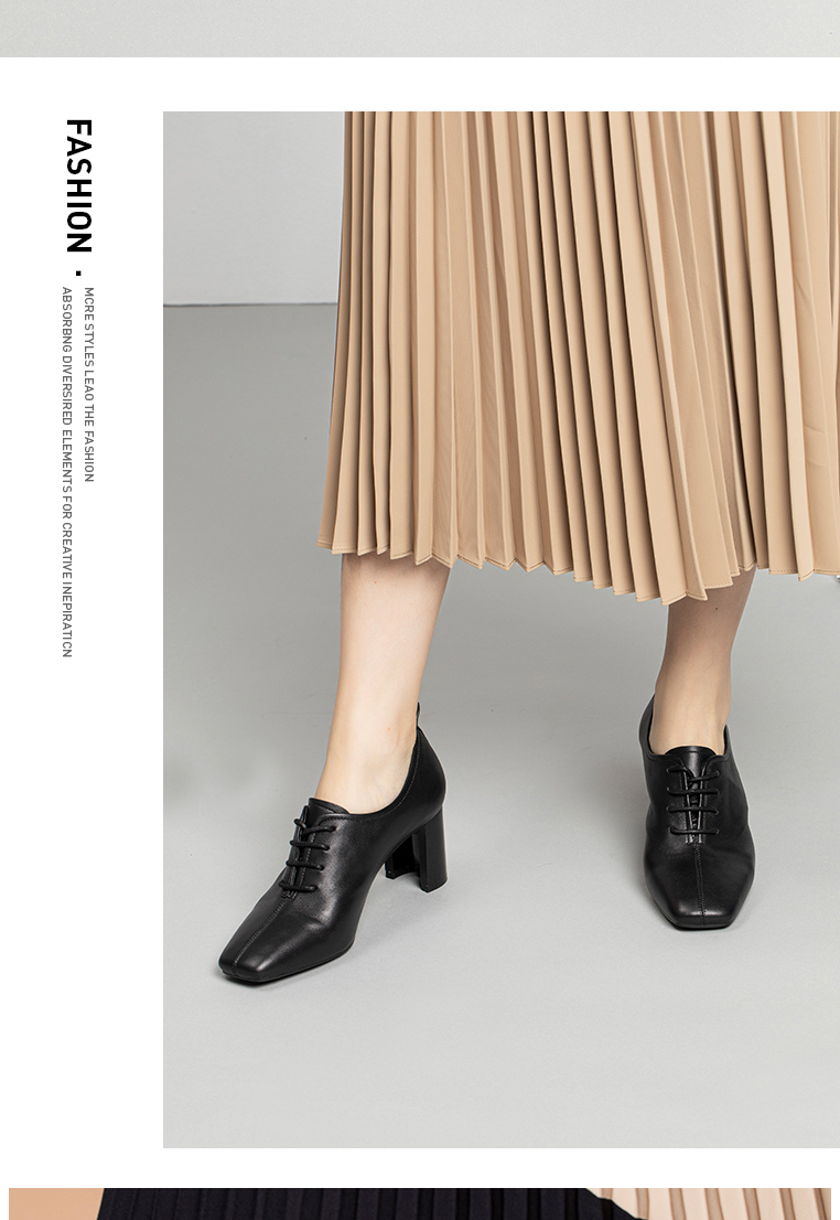 康莉2021早秋新款单鞋女粗跟方头真皮英伦风系带小皮鞋KYQ16185DU01CM1