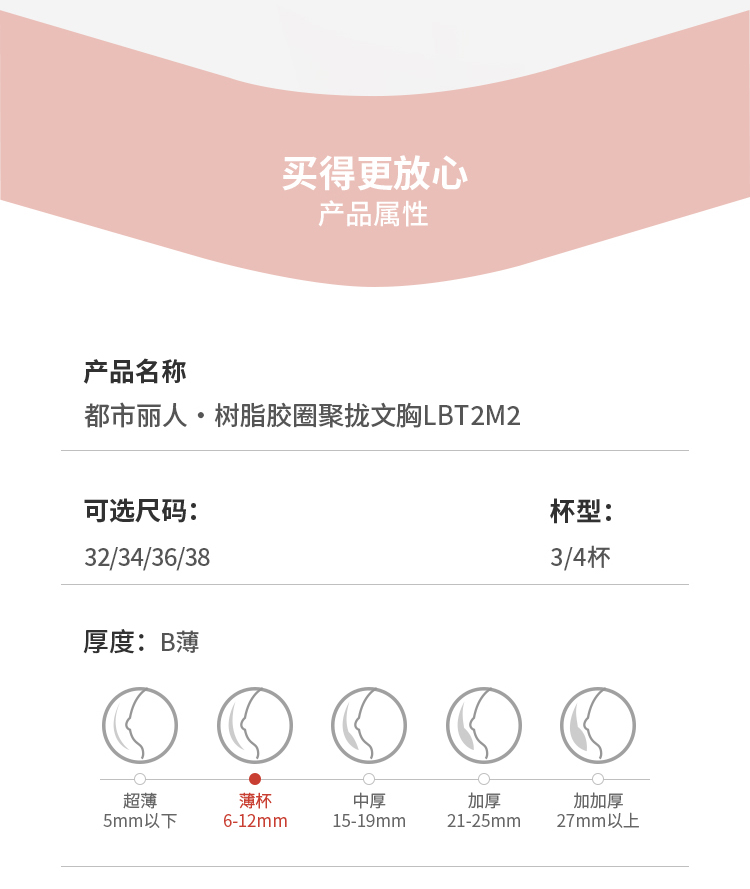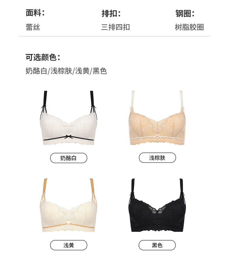 都市丽人内衣自然舒适常规文胸蕾丝薄文胸3/4杯三排扣树脂胶圈LBT2M2