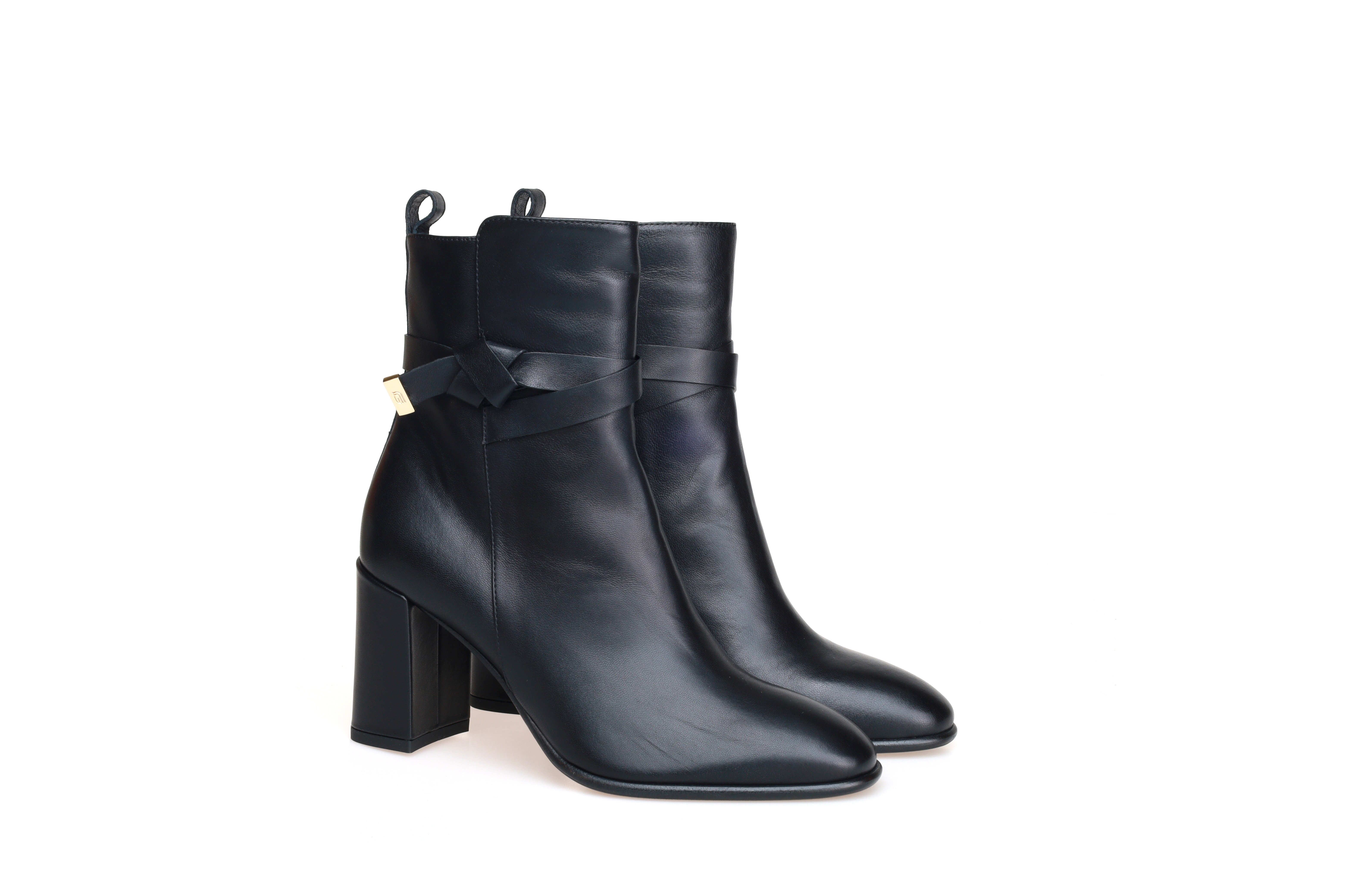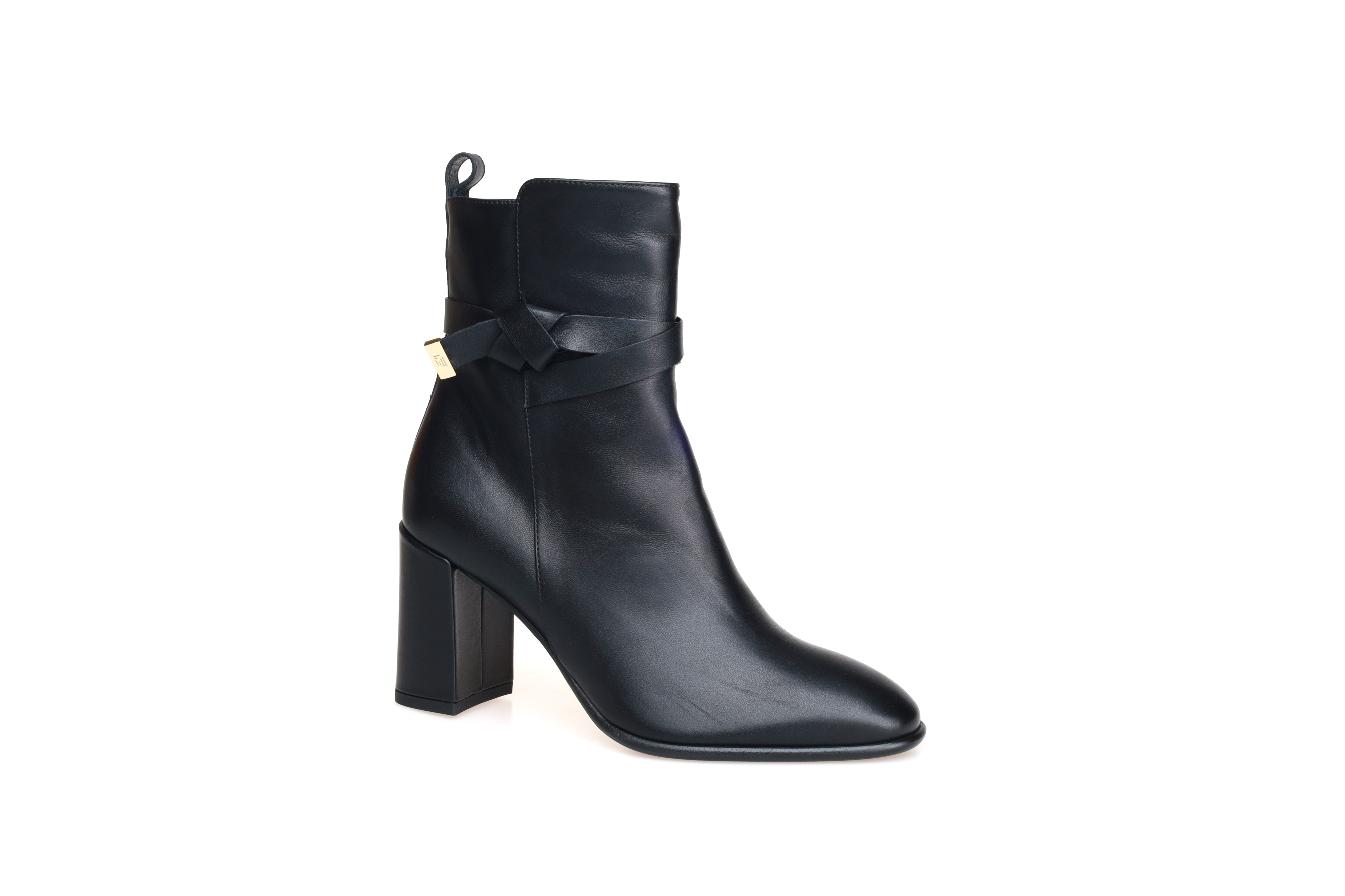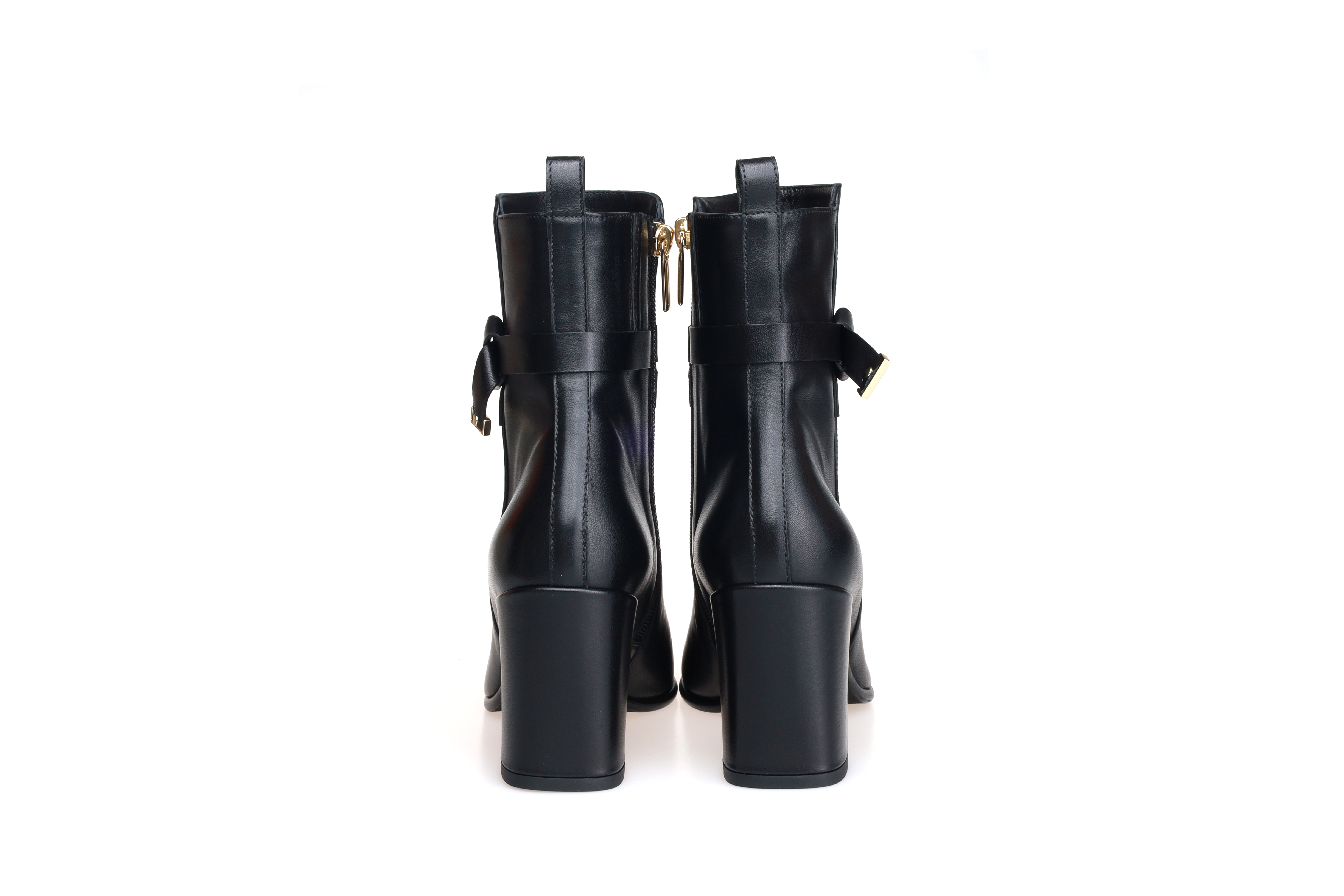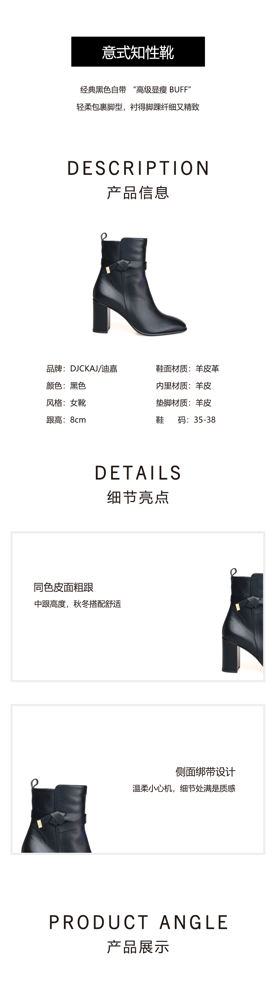 豪麟名鞋进口迪嘉女鞋短靴羊皮革W25290黑色
