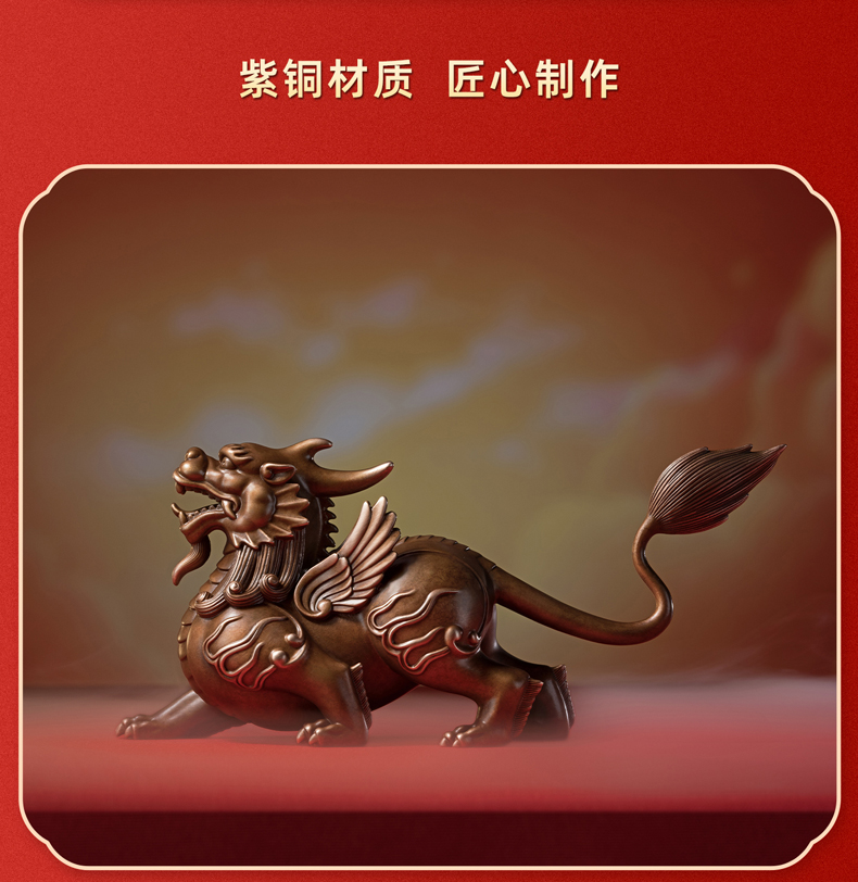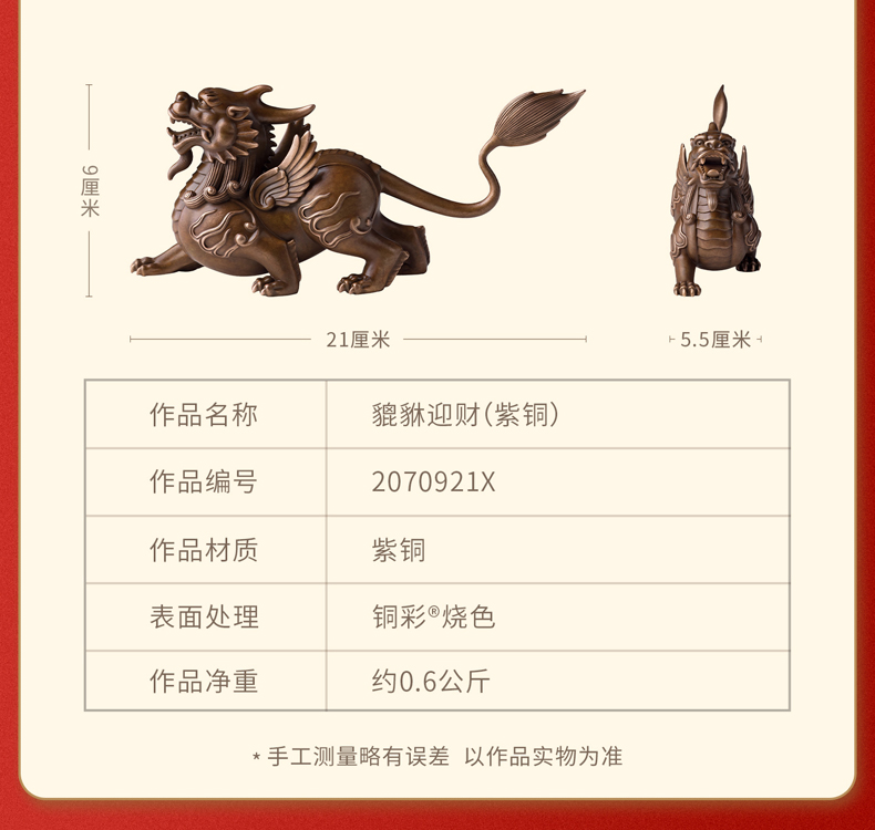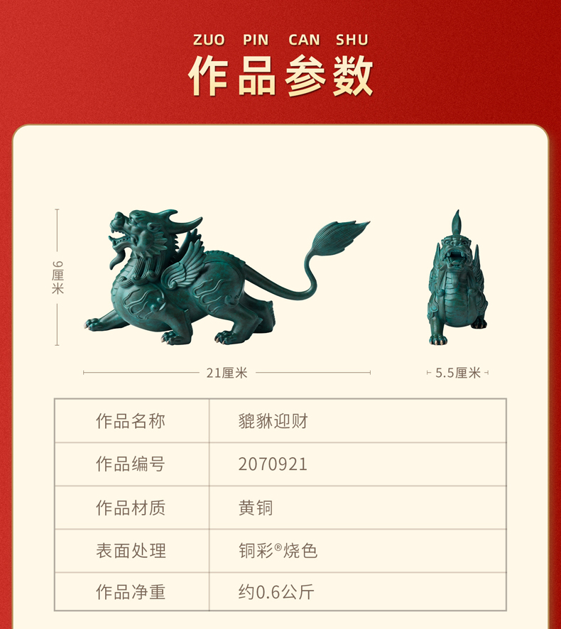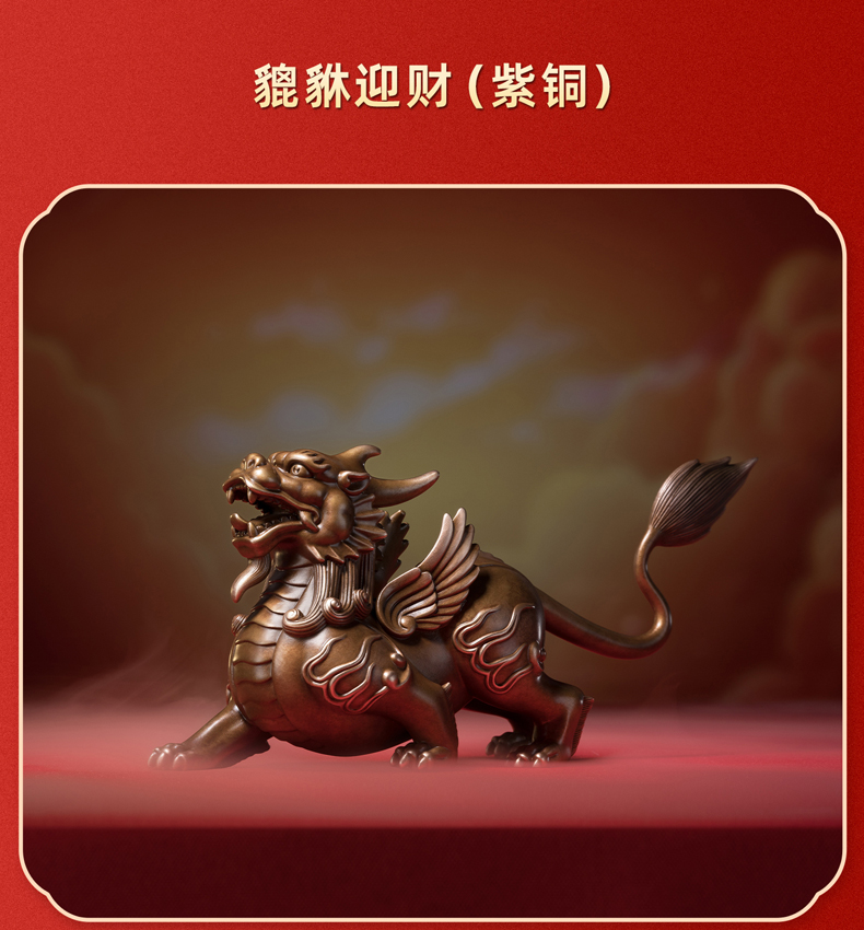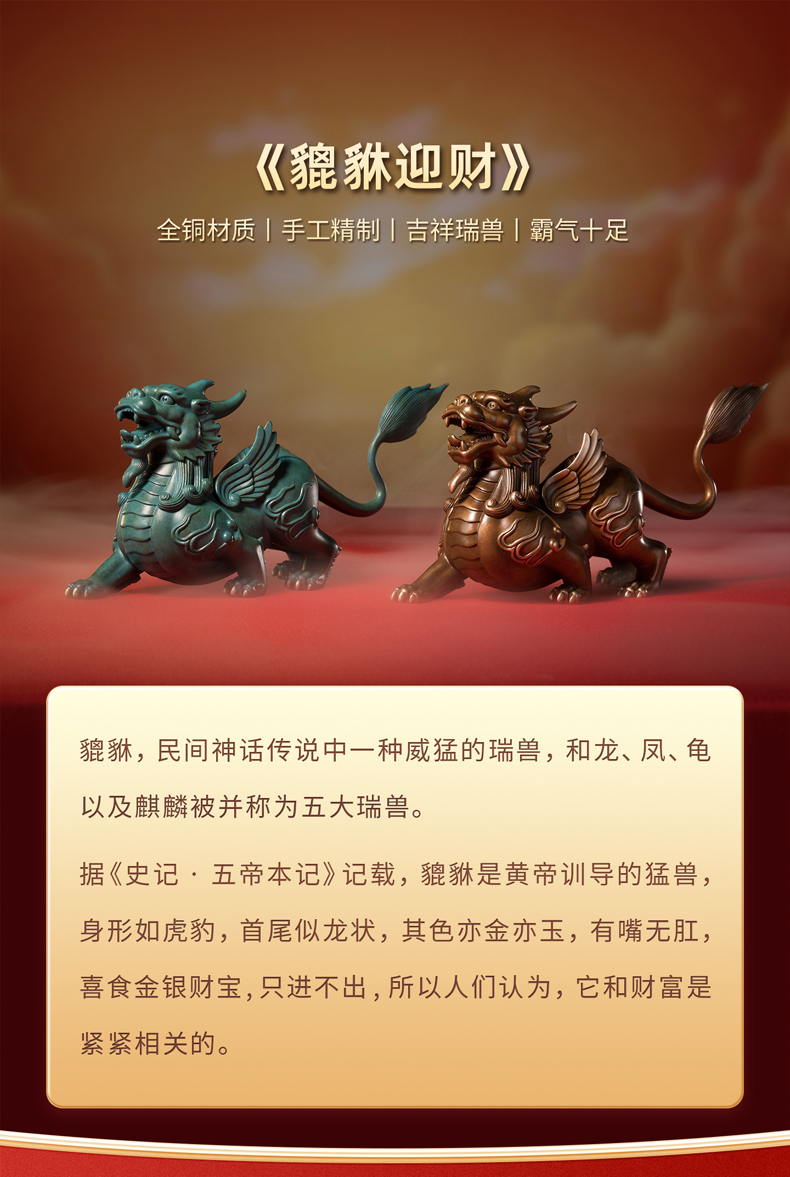 铜师傅《貔貅迎财》中式家居办公室铜摆件 乔迁新居开业装饰礼品
