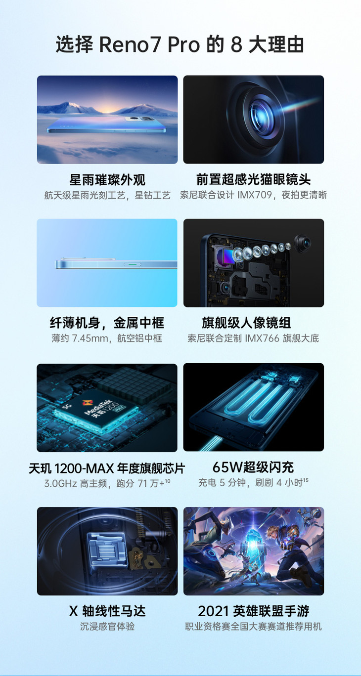 OPPO Reno7 Pro 8+256GB 星夜黑5000万IMX766旗舰主摄 天玑1200-Max旗舰芯片 65W超级闪充 5G手机