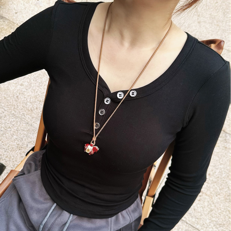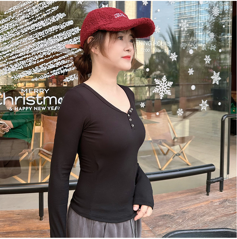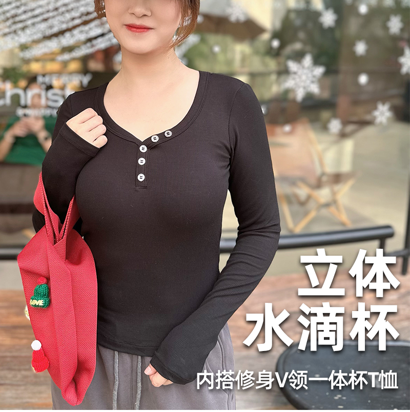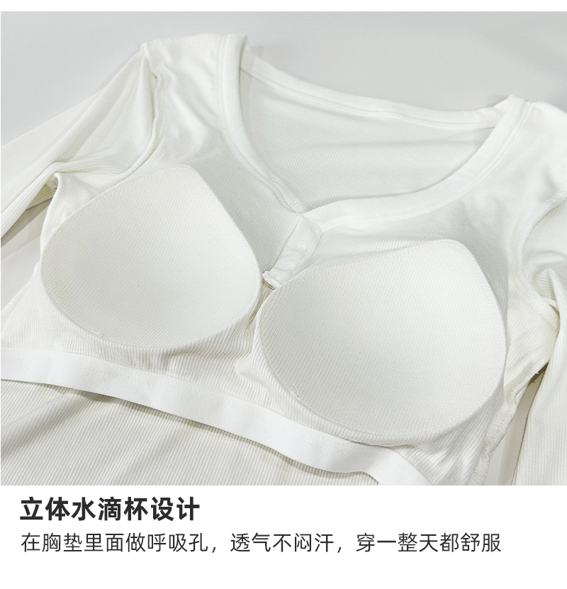壁虎瑜伽【2512SY470】内搭修身V领一体杯胸T恤 (5天发货)(一体式胸垫)