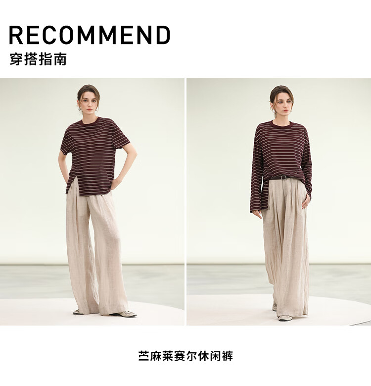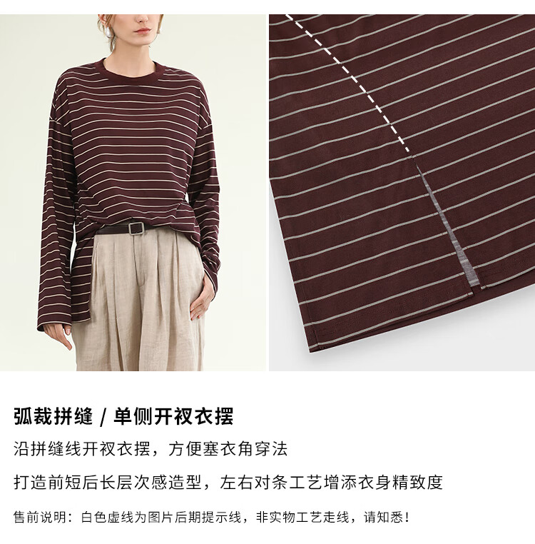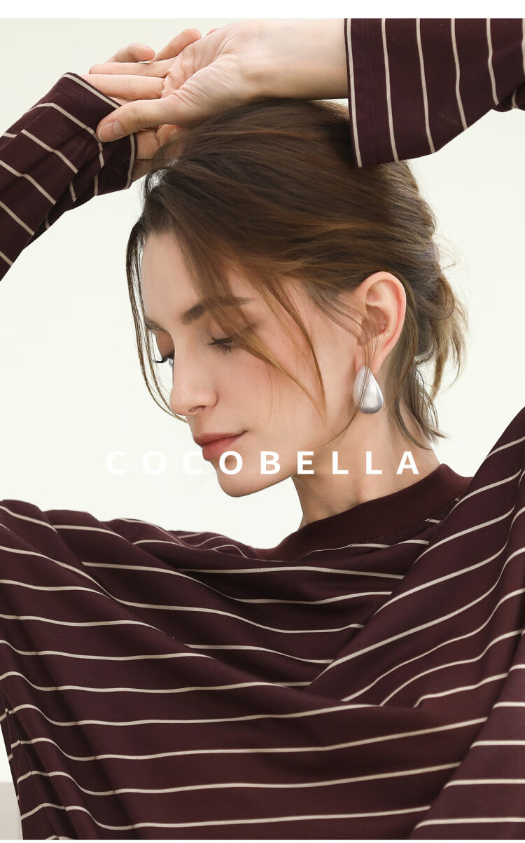 COCOBELLA安可拉红撞色条纹长袖T恤圆领开叉休闲上衣TS3198