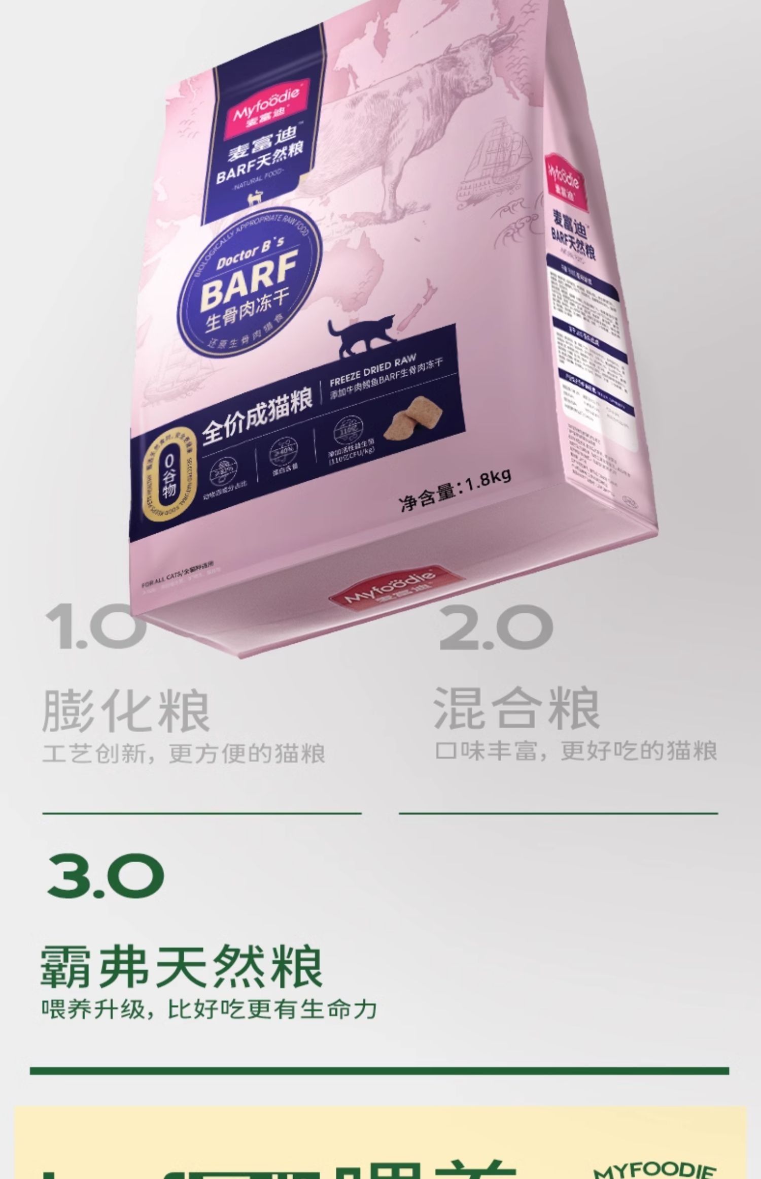 麦富迪猫粮barf生骨肉冻干全价成猫粮牛肉鳕鱼火鸡1.8kg