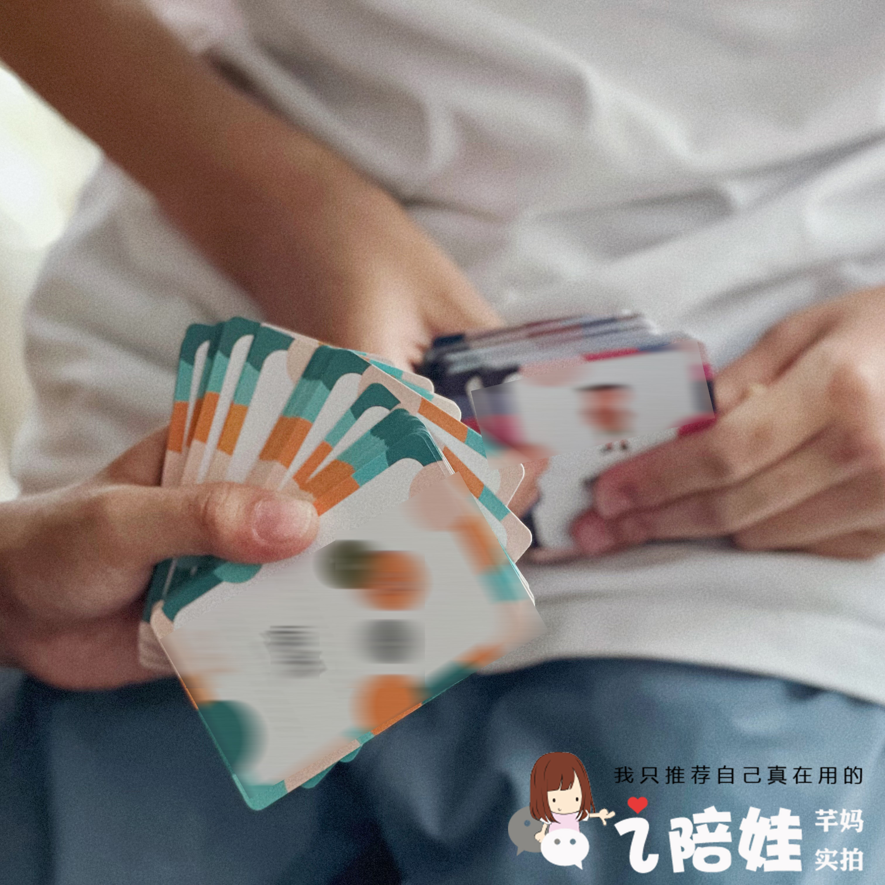 我俩玩着没问题,但有时候芊芊参与不进来,就又一边刷手机去了。后来我就给她入了这种纸质题卡的。