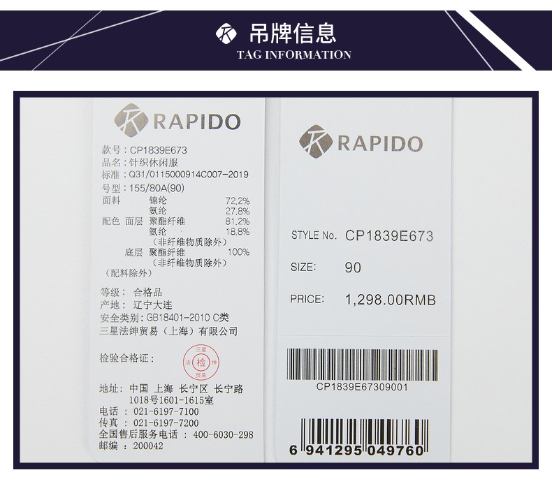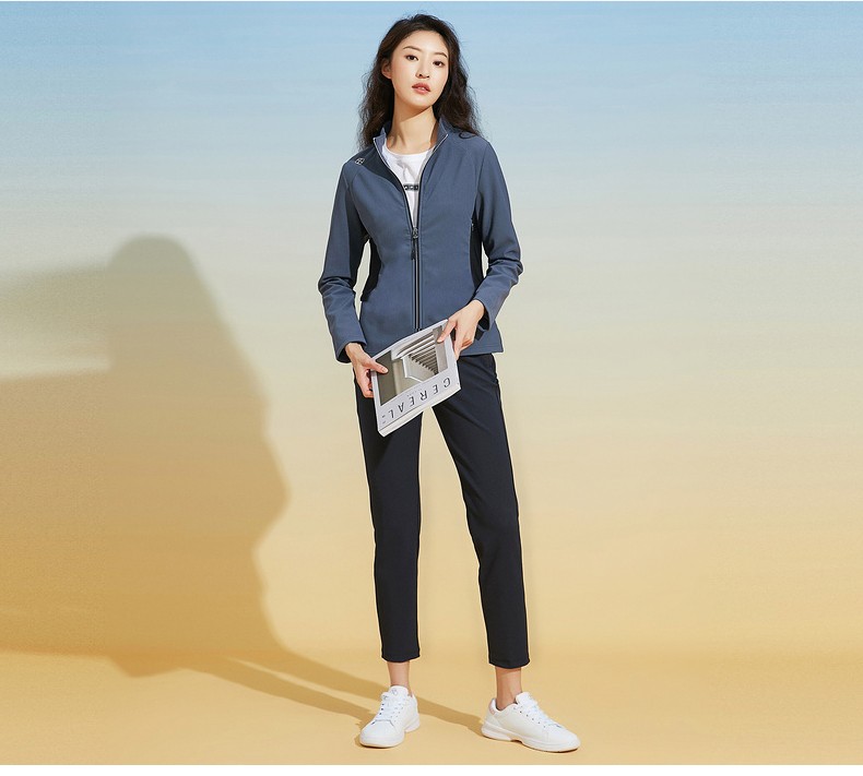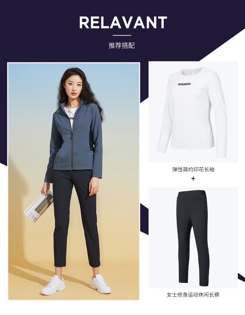 RAPIDO雳霹道2021秋季女士运动拼接立领针织背面磨毛夹克外套CP1976G03P