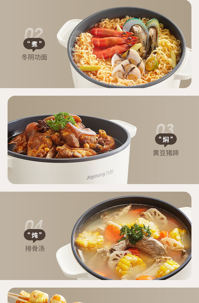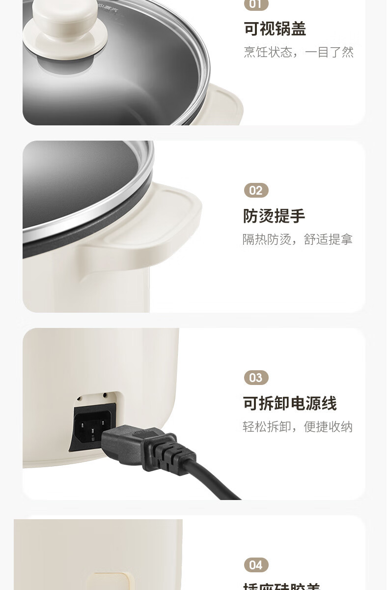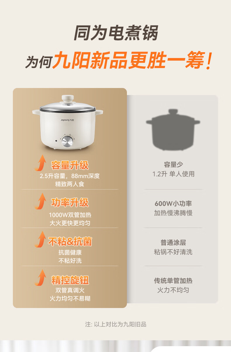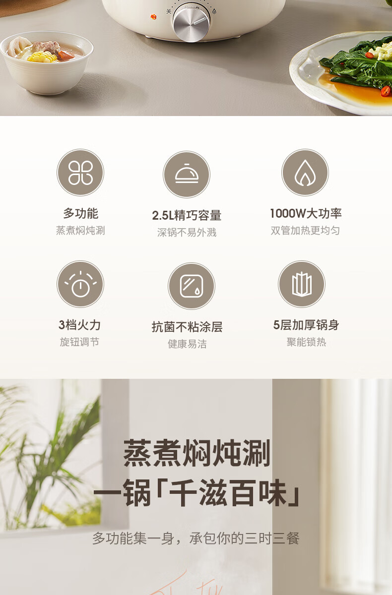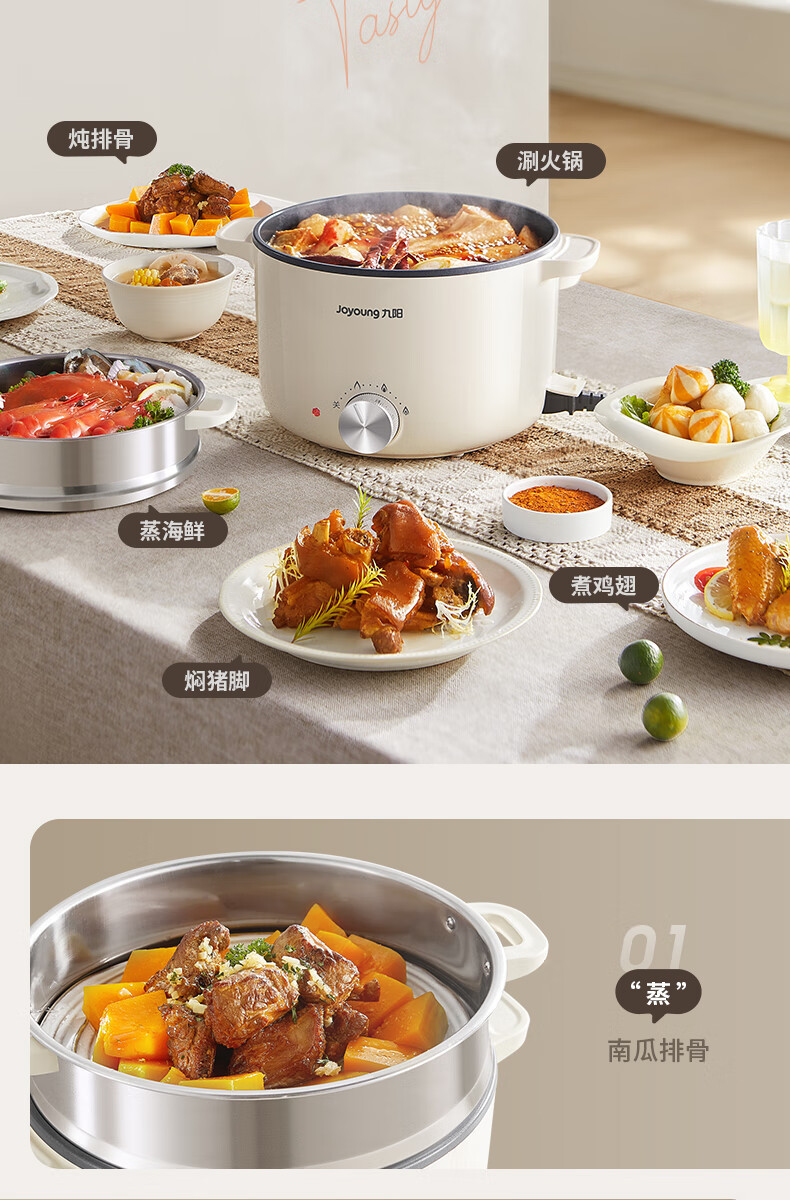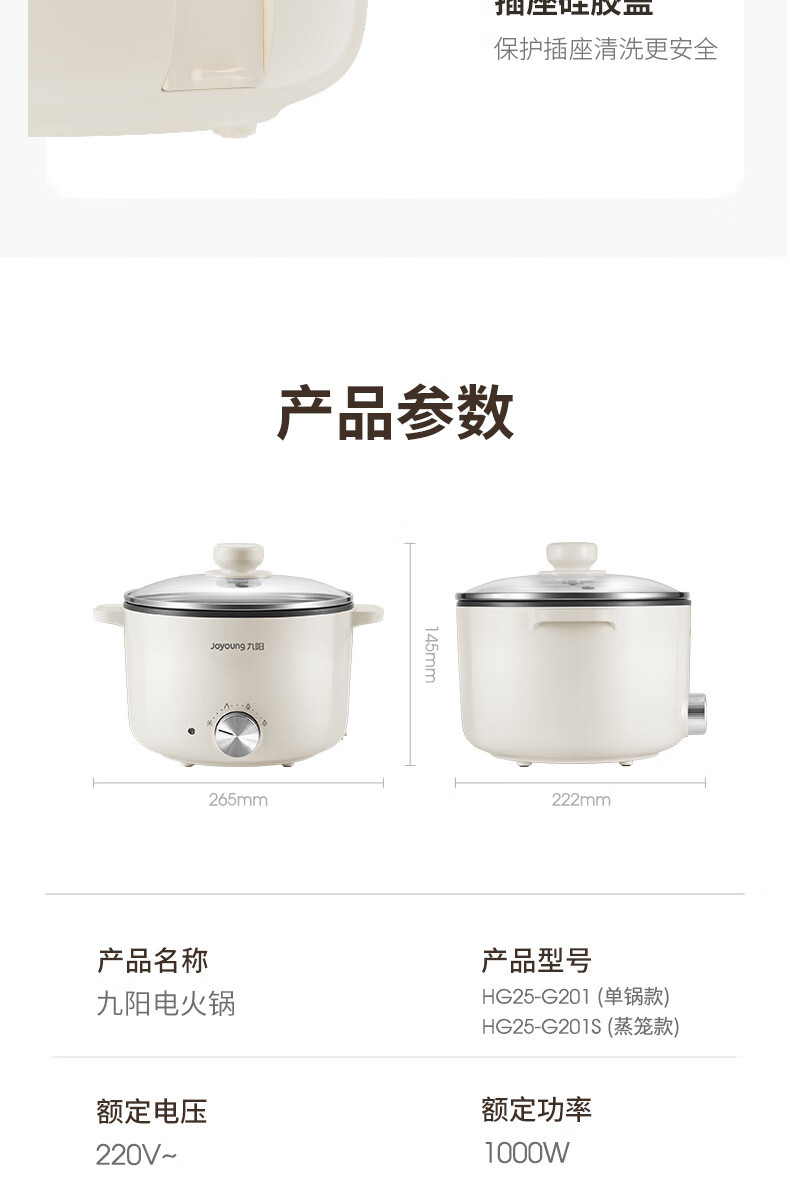 九阳HG25-G201S电煮锅 热锅火锅电蒸锅 2.5L蒸煮一体蒸屉蒸笼电蒸锅
