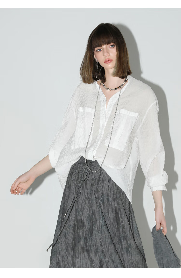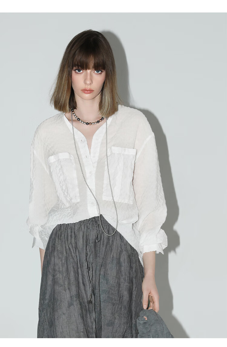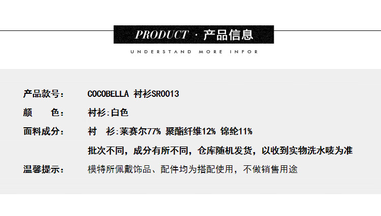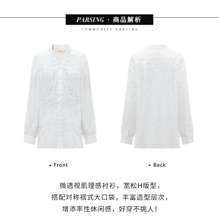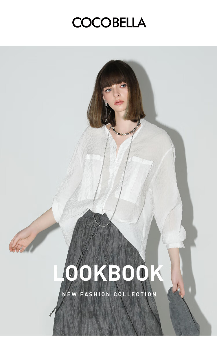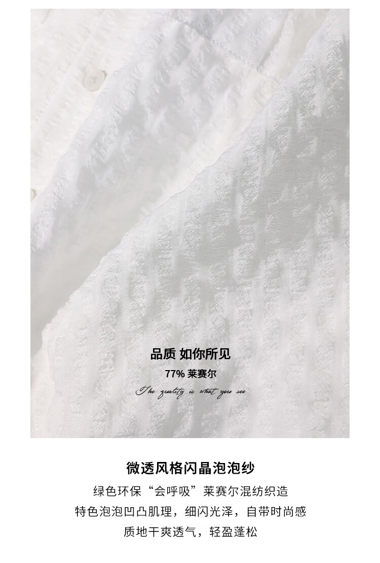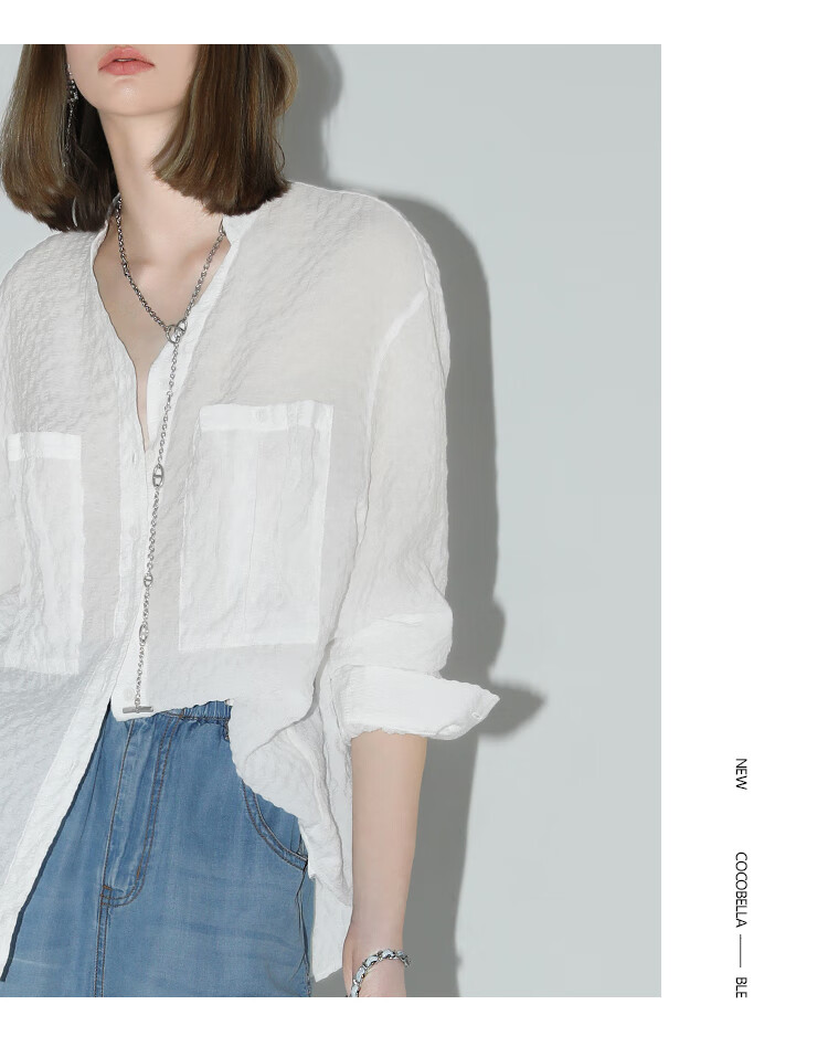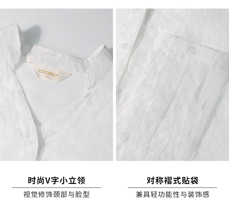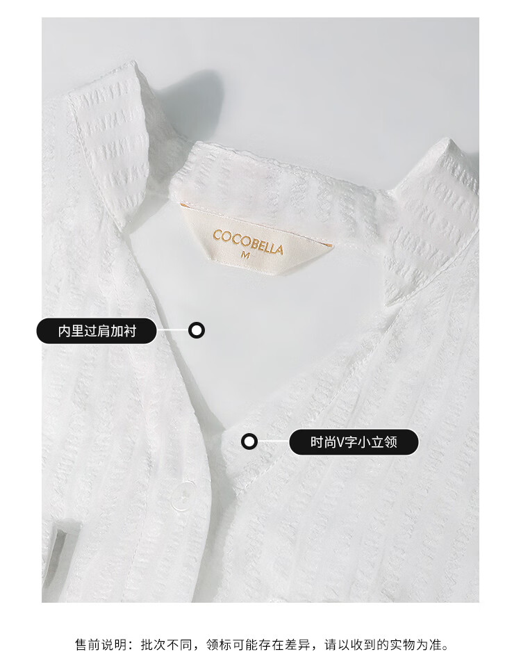 COCOBELLA肌理感泡泡皱莱赛尔遮阳白衬衫OL小立领衬衣SR0013