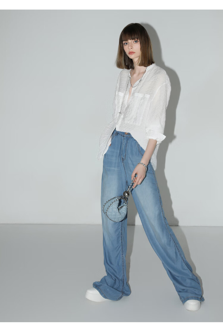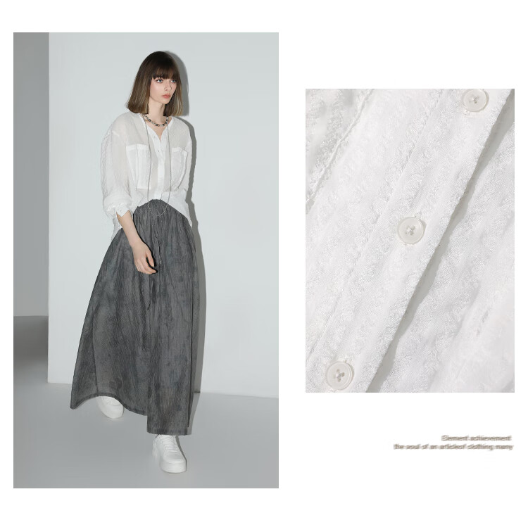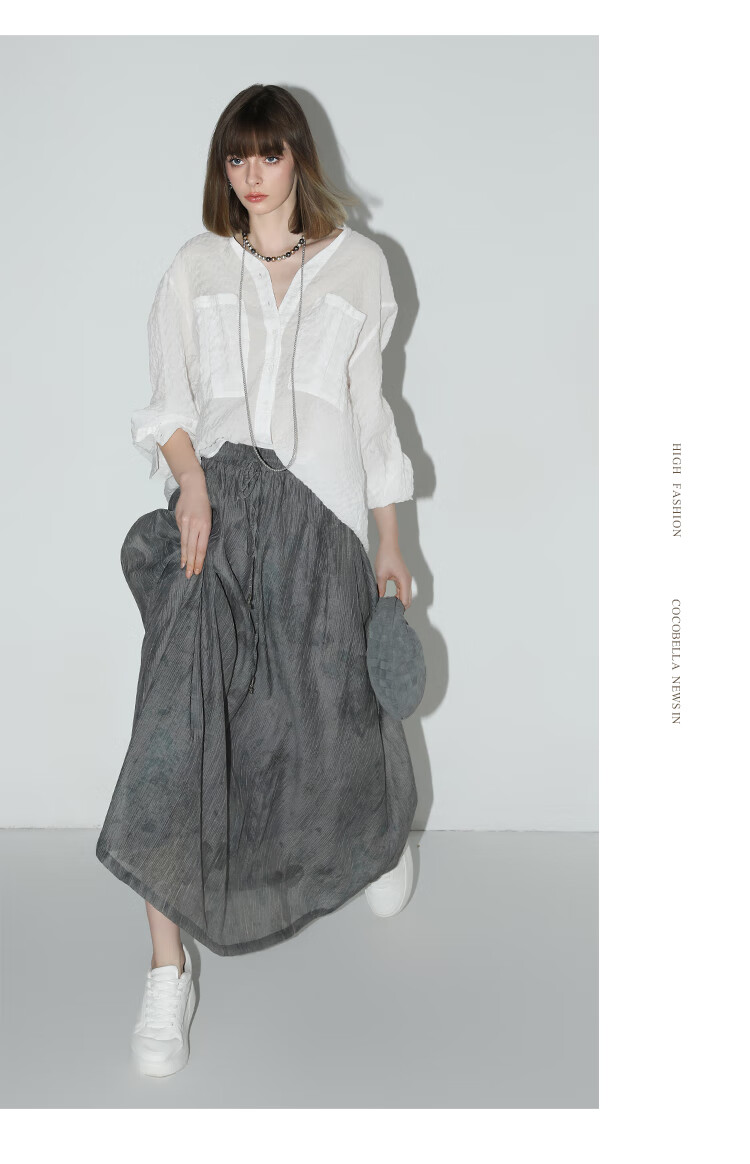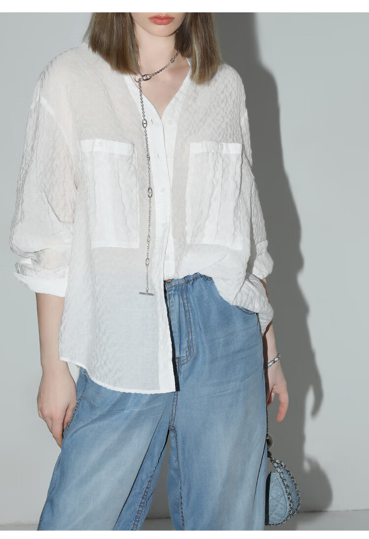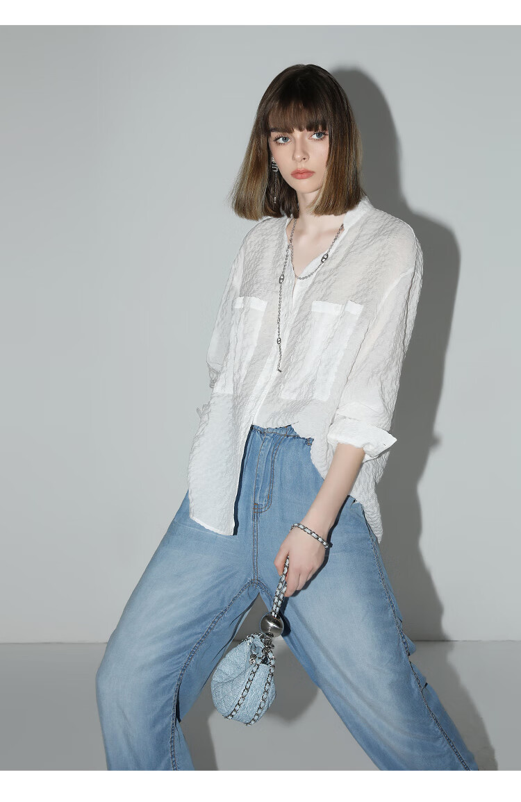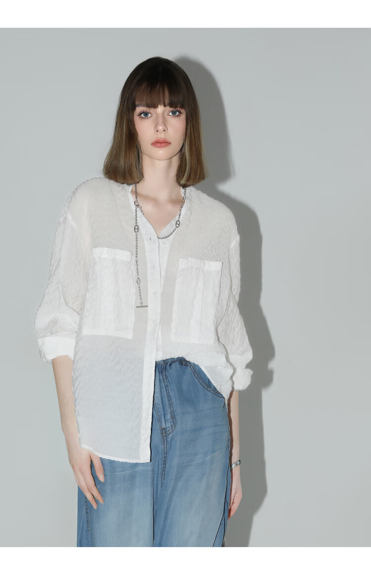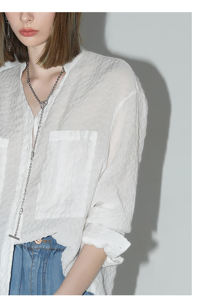 COCOBELLA肌理感泡泡皱莱赛尔遮阳白衬衫OL小立领衬衣SR0013