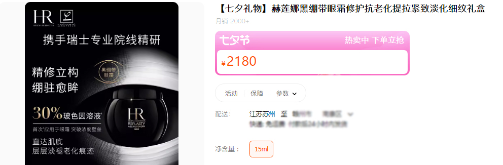 【商品名称】HR赫莲娜活颜修护眼霜3ml 黑绷带眼霜