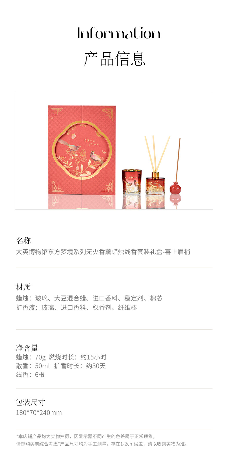 大英博物馆东方梦境系列无火香薰蜡烛线香套装礼盒-喜上眉梢