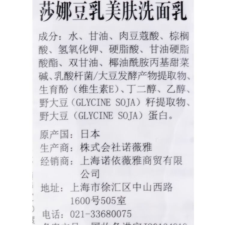 莎娜豆乳美肤洗面乳150g/支