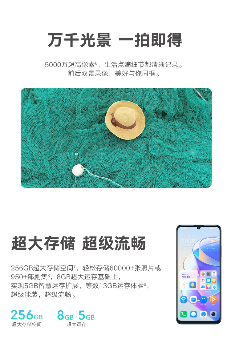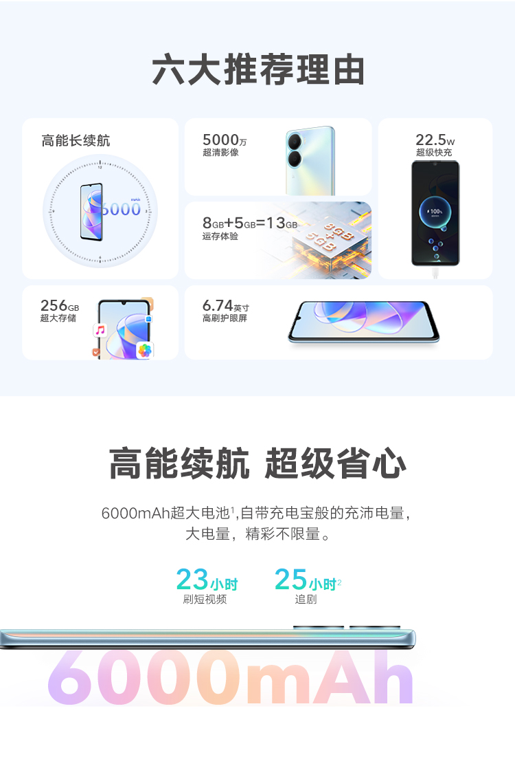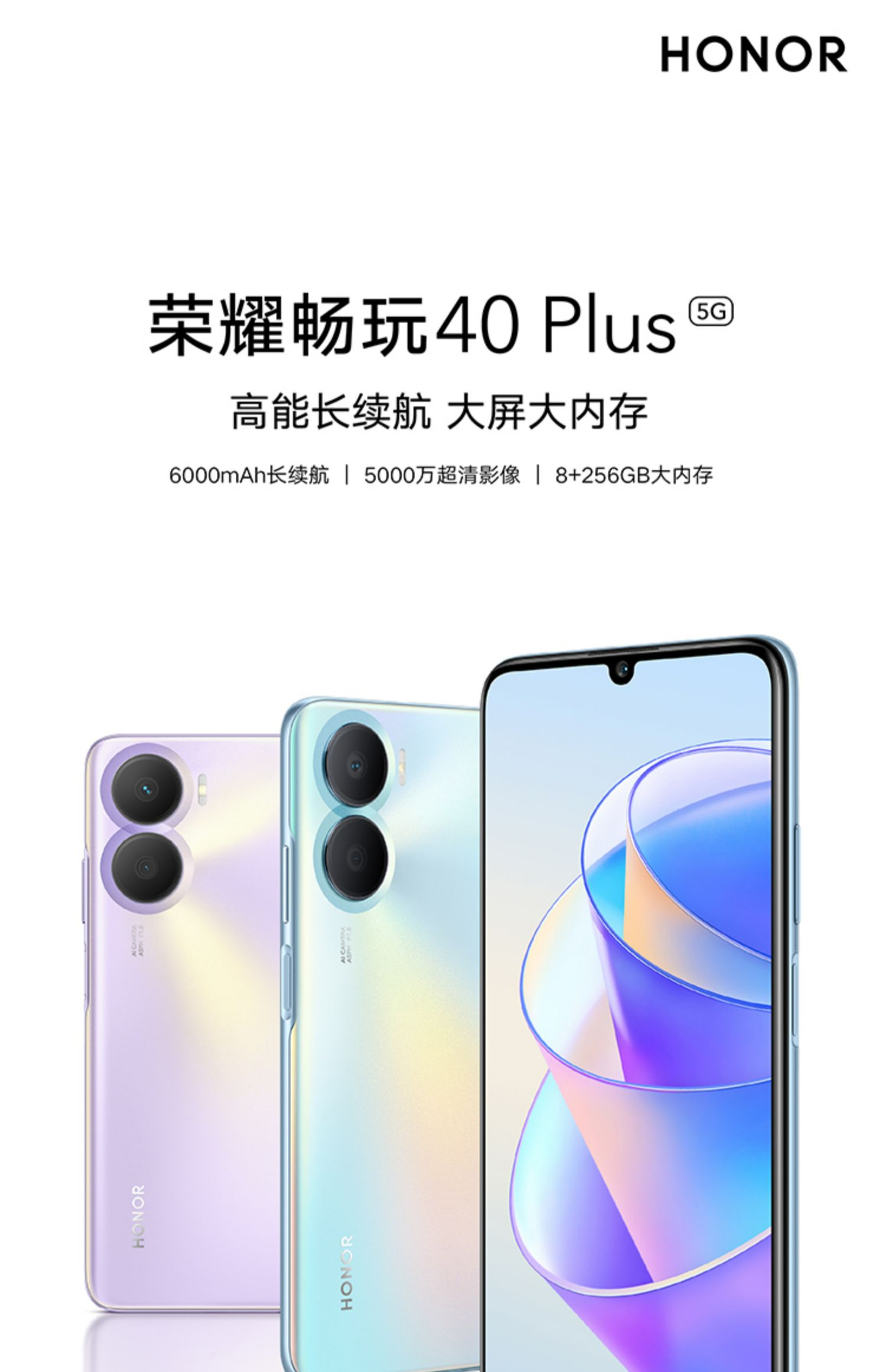 荣耀畅玩40 Plus 5000万超清影像 6000mAh大电池 侧边指纹解锁 5G手机 8+128G