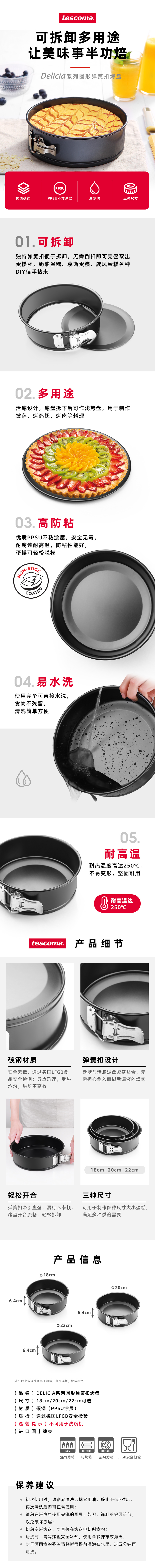 捷克捷克/Tescoma 烘焙工具弹簧扣蛋糕模具 可拆式活底家用烘焙模具 戚风蛋糕活扣模具
