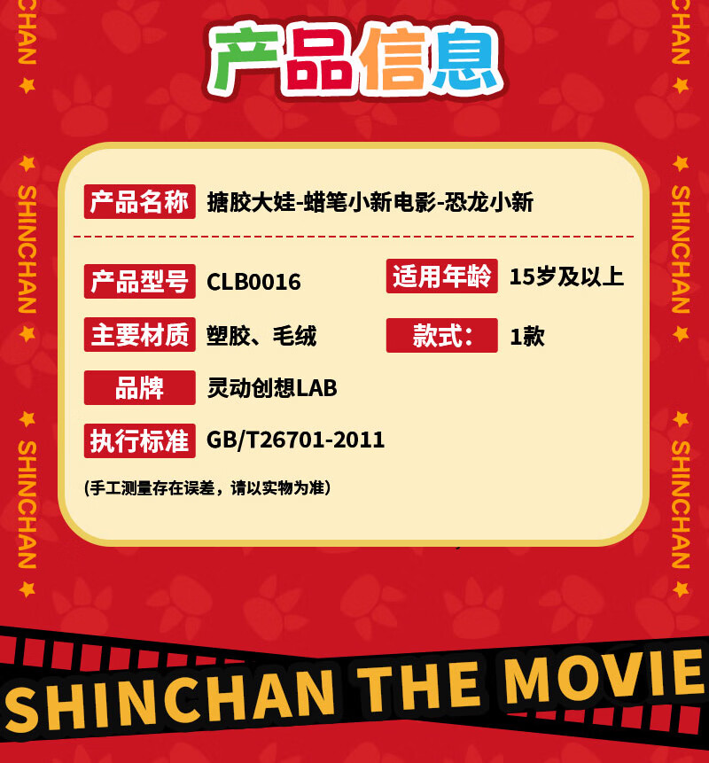 H灵动玩具CLB0016蜡笔小新电影-恐龙小新搪胶大娃
