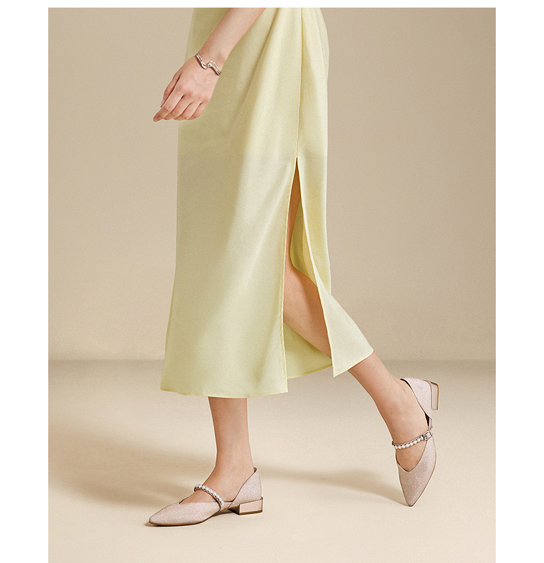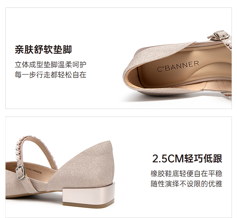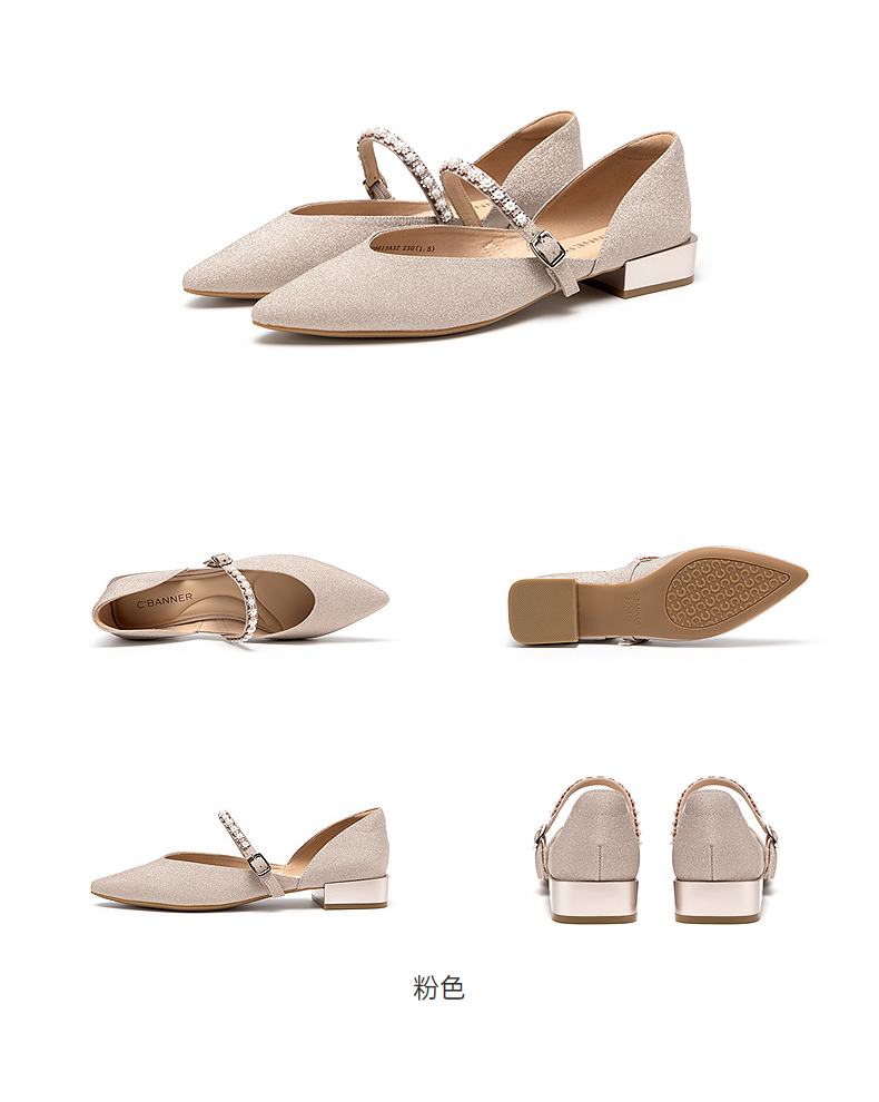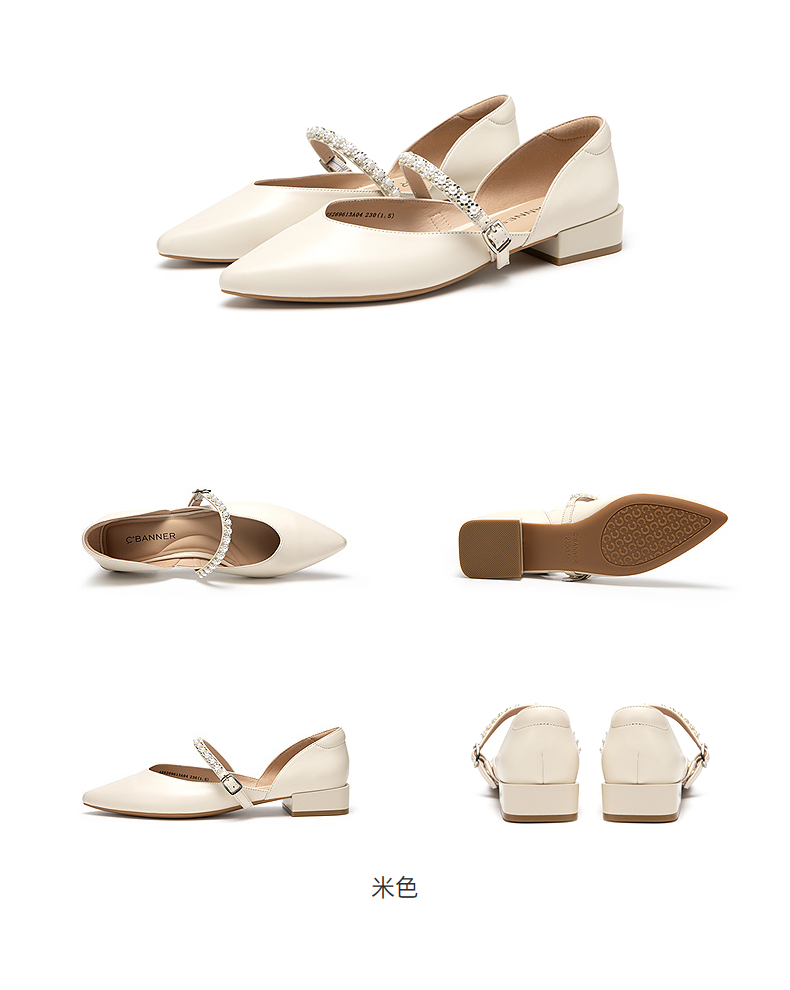 千百度低跟玛丽珍时装凉鞋女尖头扣饰通勤浅口单鞋A25269613