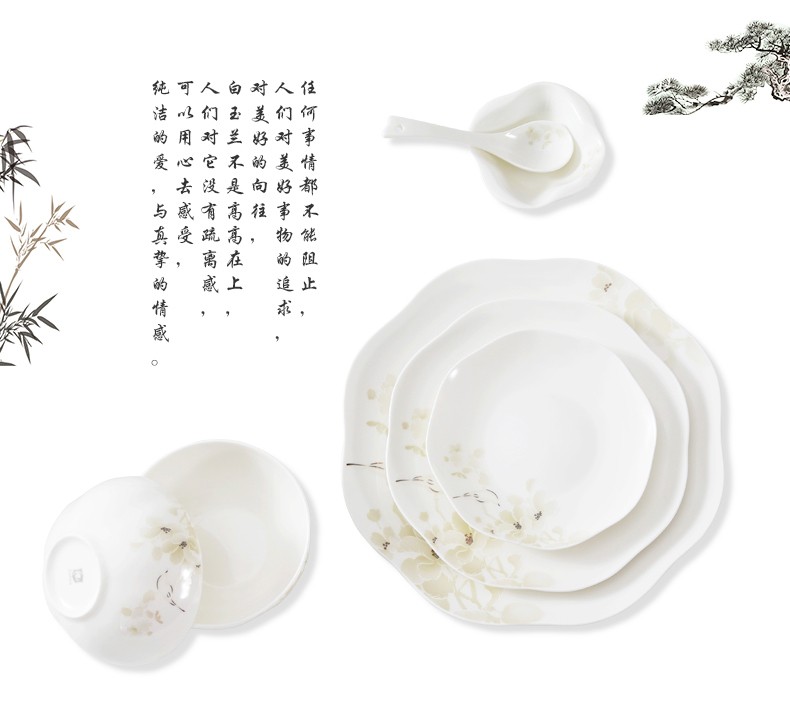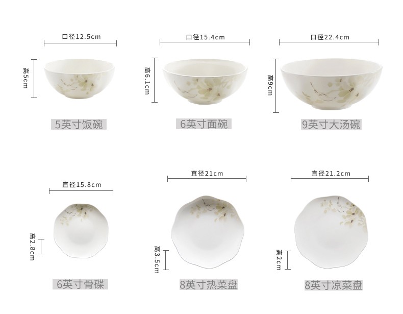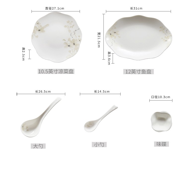 雷澳娜REONE中式餐具玉兰系列散件骨瓷餐具