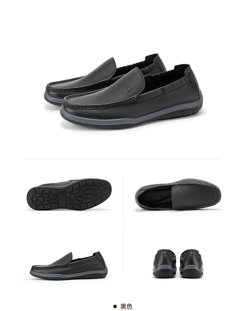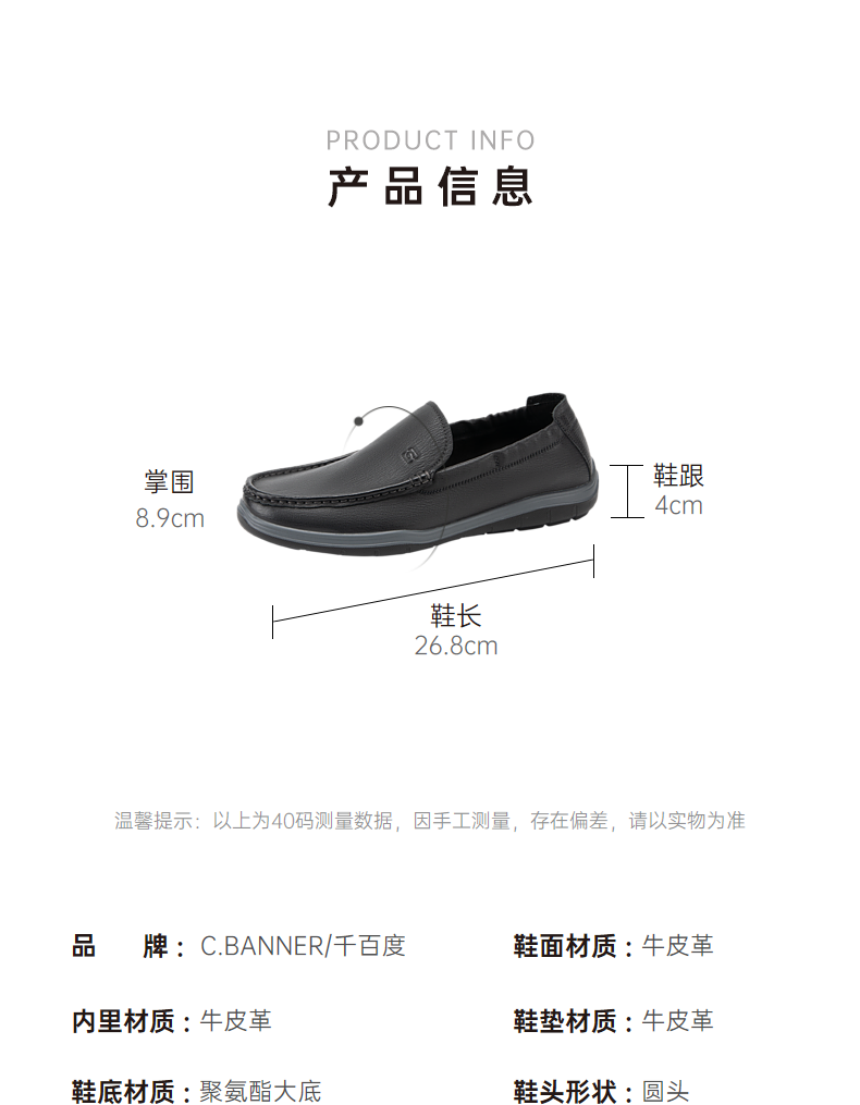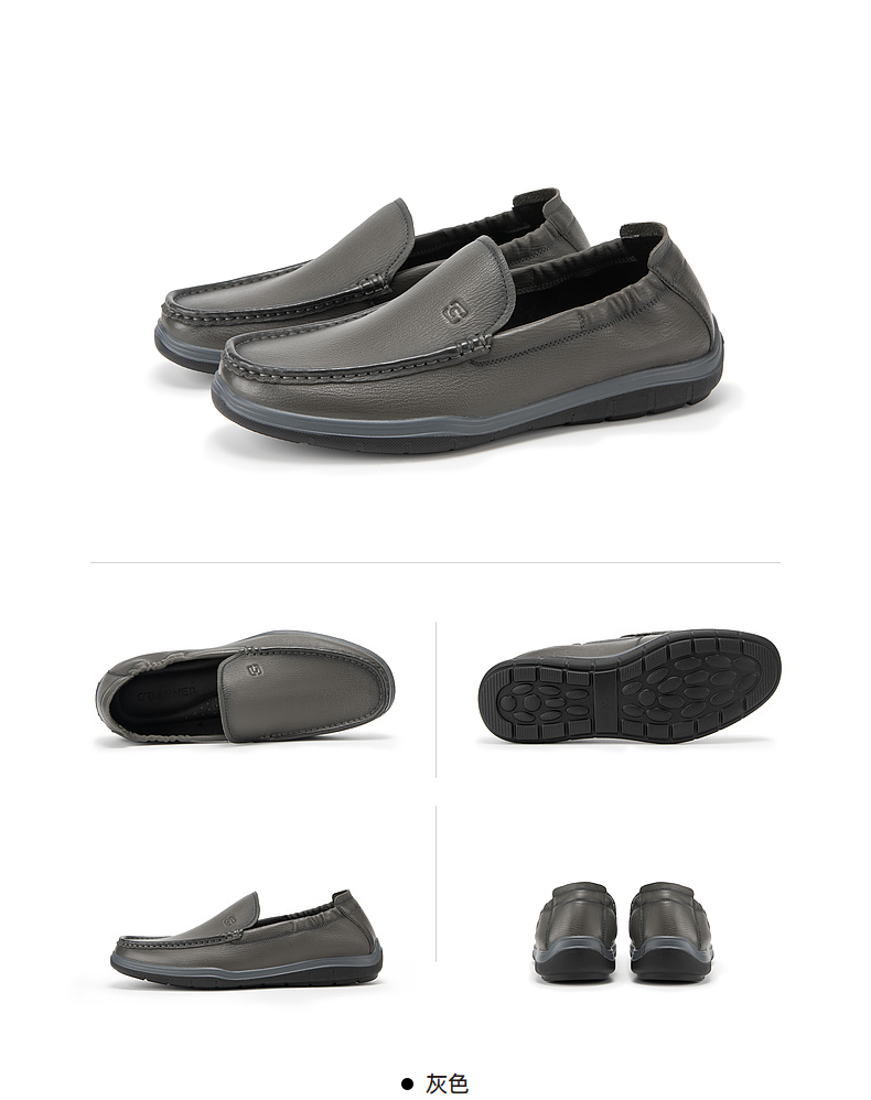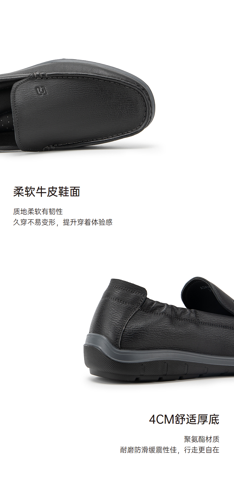 千百度男鞋夏季一脚蹬休闲皮鞋厚底增高乐福鞋A24160314