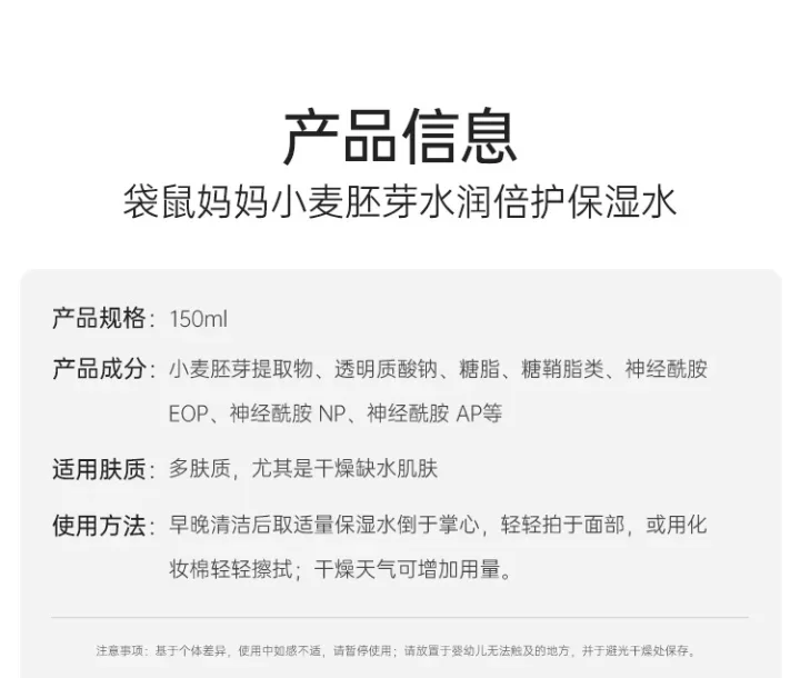 袋鼠妈妈小麦胚芽水润倍护保湿水-150ml