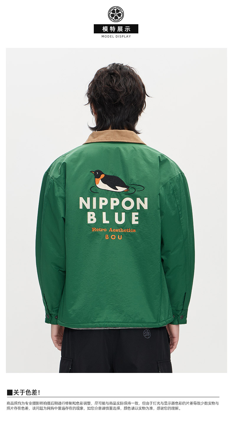 ONIARAI/鬼洗25秋冬棒系列企鹅加绒教练夹克厚外套男式 N340228