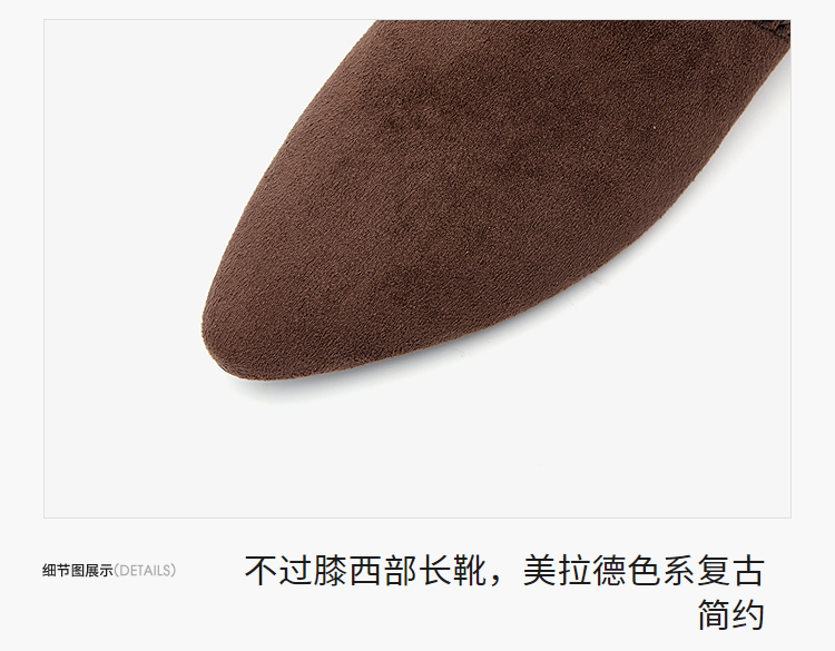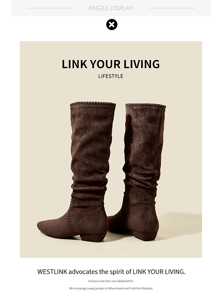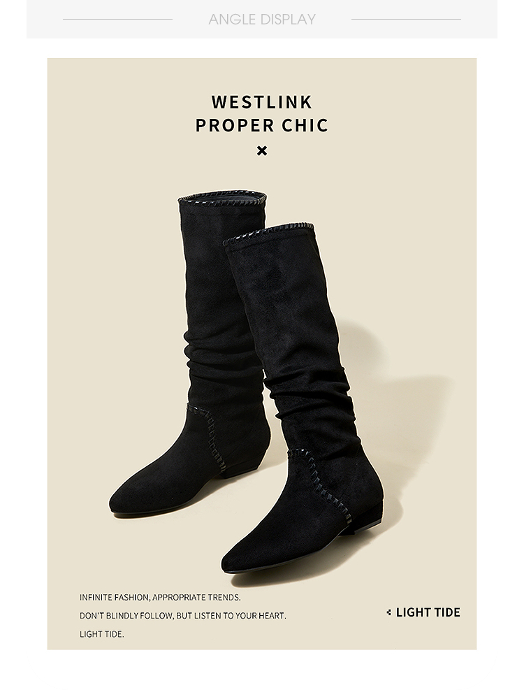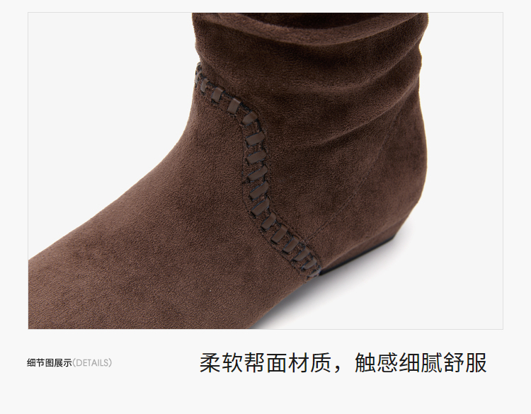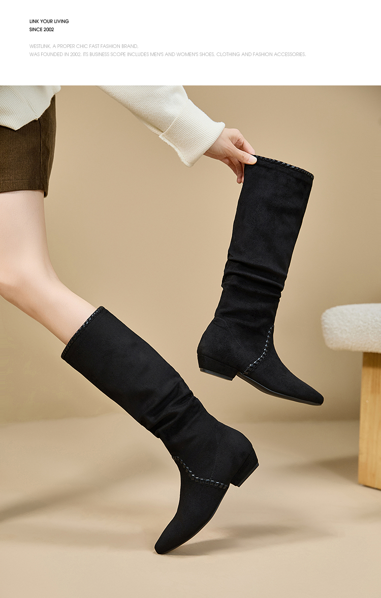西遇复古堆堆靴女新款秋冬绒面西部牛仔靴低跟不过膝高筒长靴V2257265