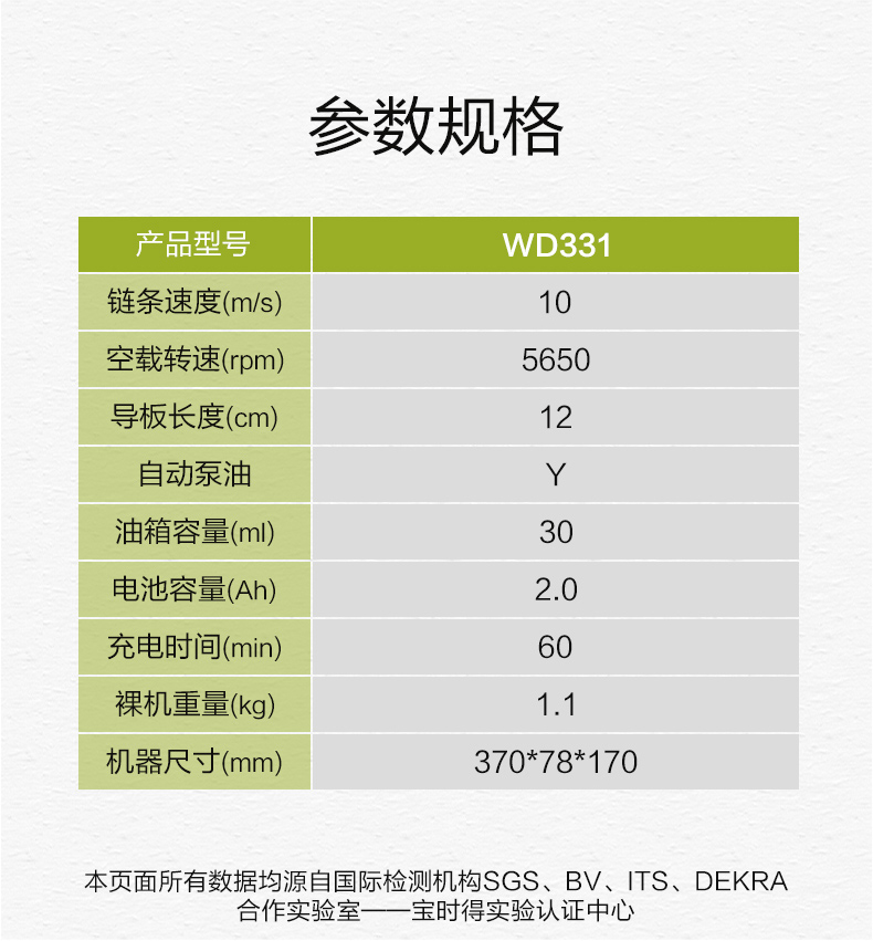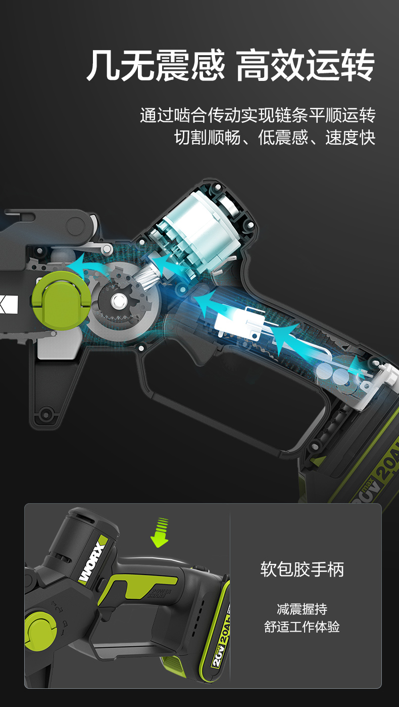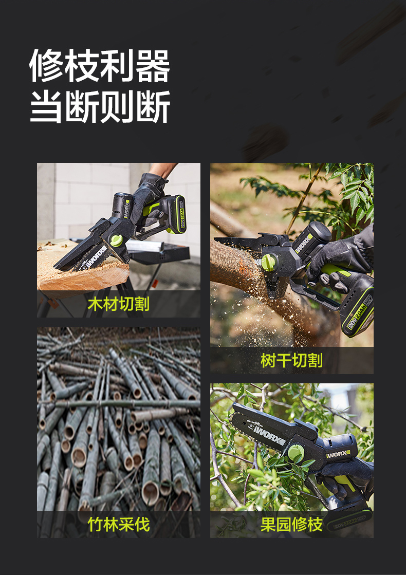 威克士锂电锯WD331家用小型手持果树修枝庭院园艺伐木充电式电锯
