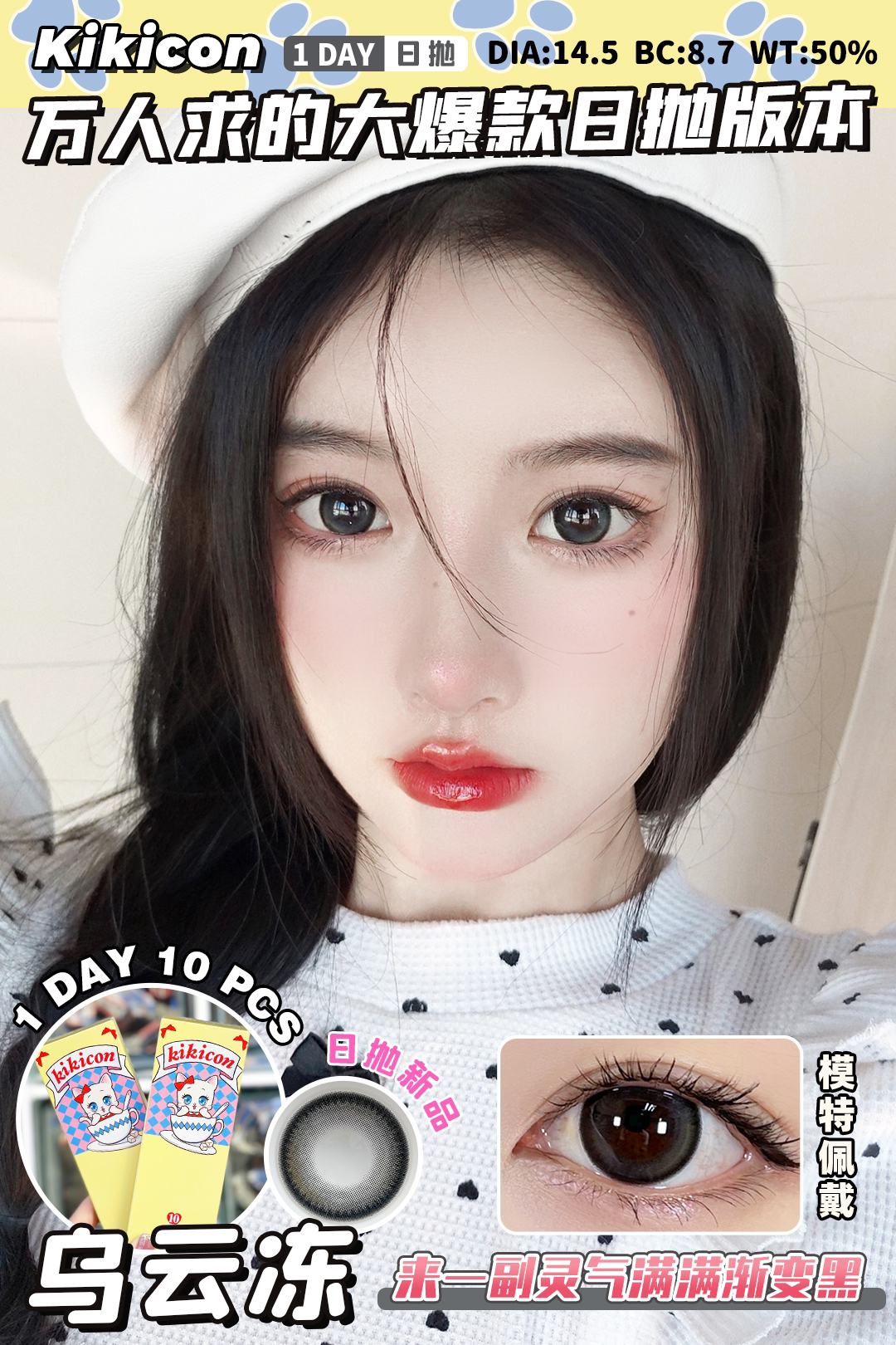 大直径日抛 乌云冻 KikiCon 大直径14.5 着色14.3 (一盒10片 多盒购买更划算 选款色板在详情页内) 高光渐变黑色美瞳
