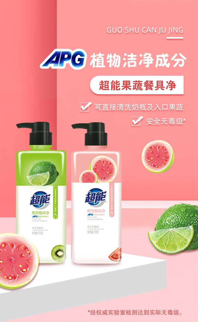 750g超能果蔬餐具净*2瓶(颜色随机)