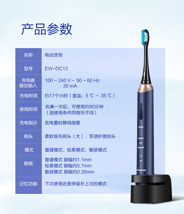松下电动牙刷EW-DC12-A405蓝色(200g )