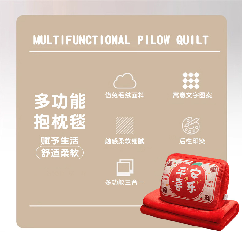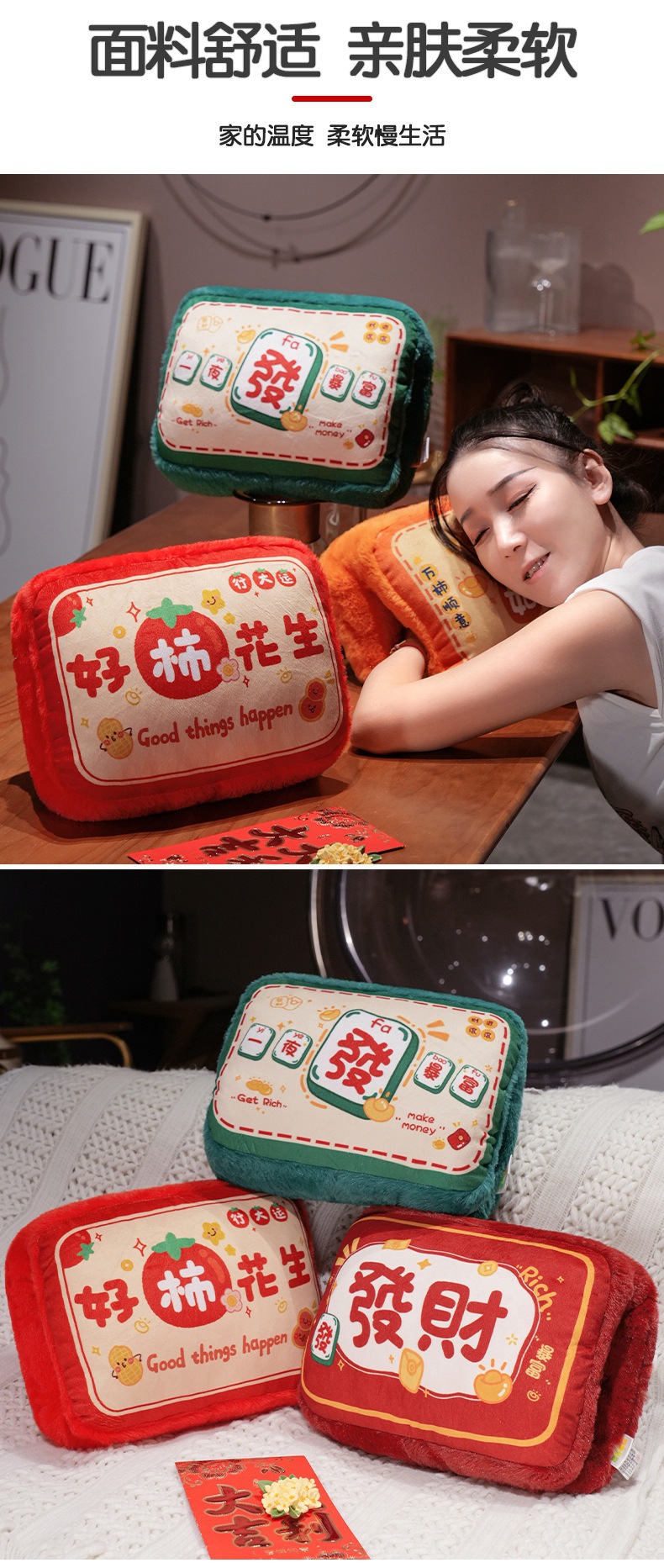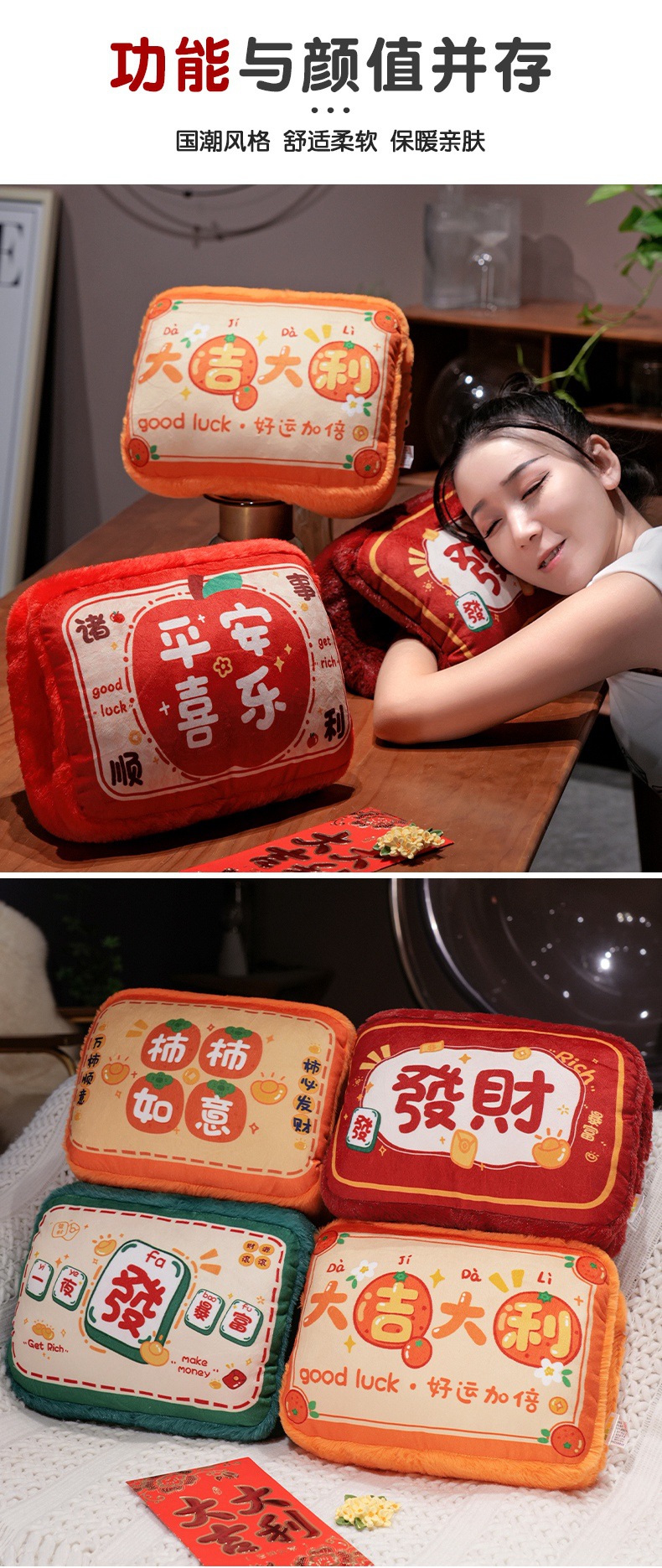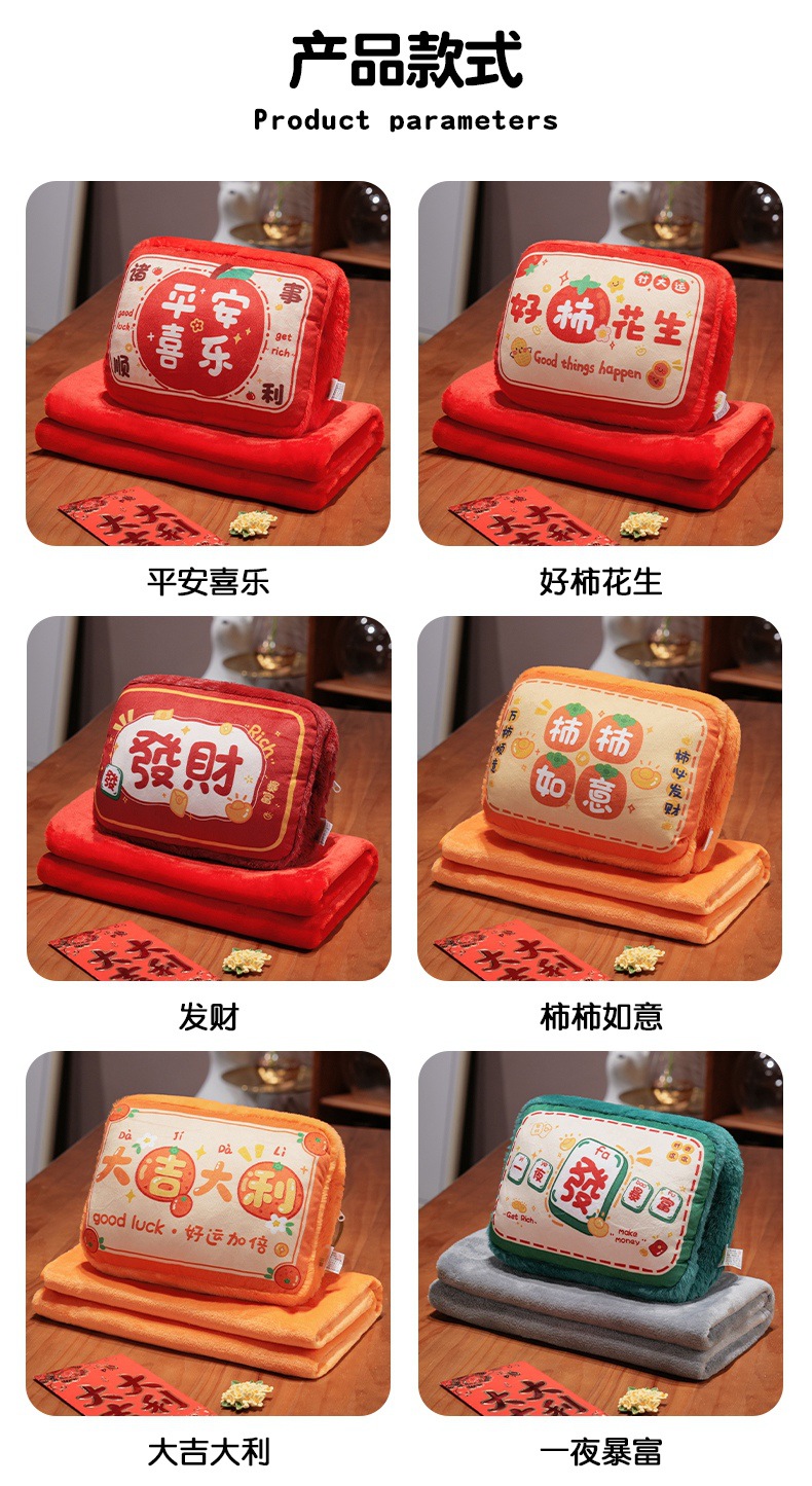【好柿花生!一夜暴富】新年国潮系列-三合一抱枕毯暖手抱枕插手捂毛绒办公室午睡枕趴睡枕冬季。ry