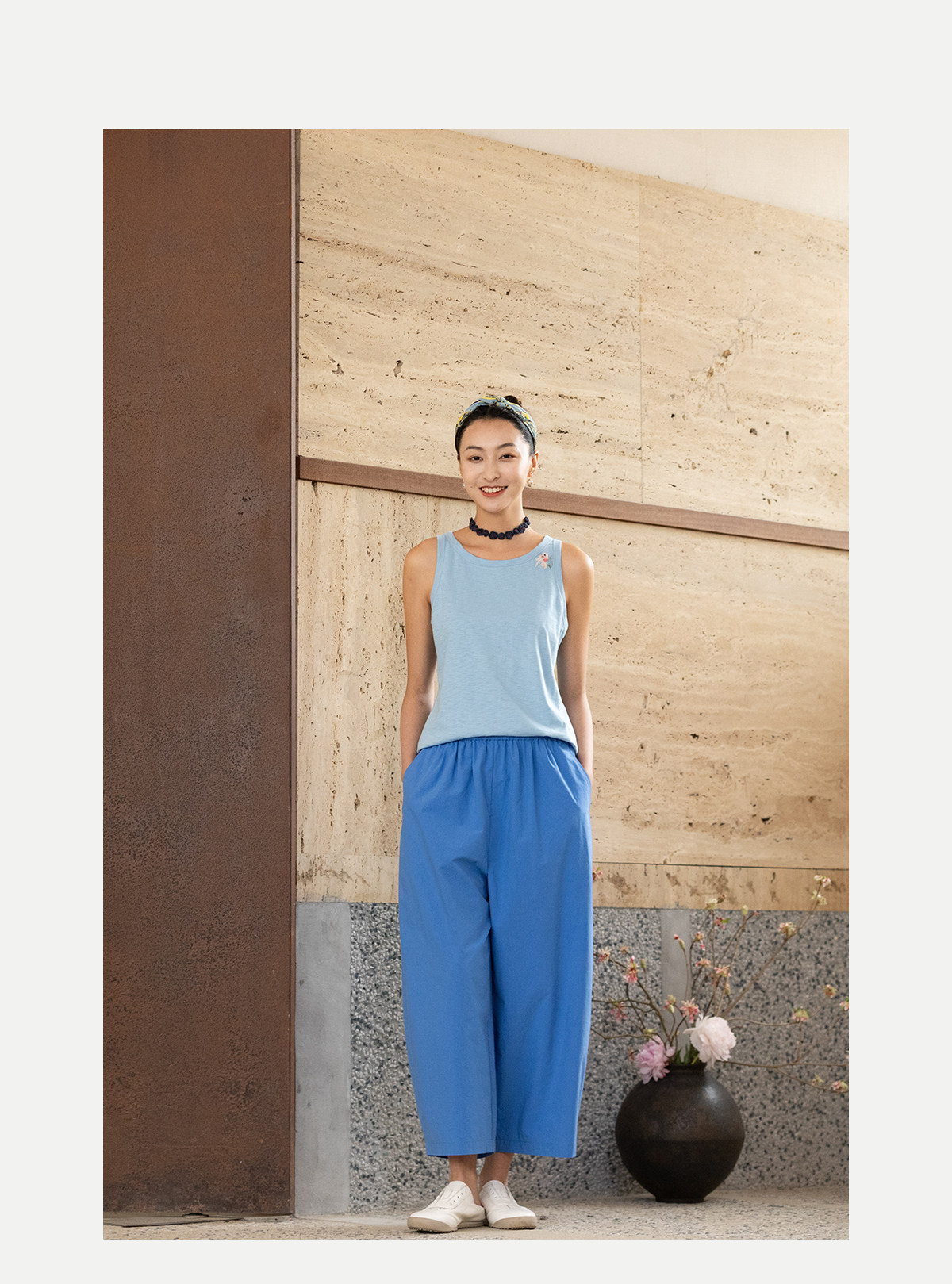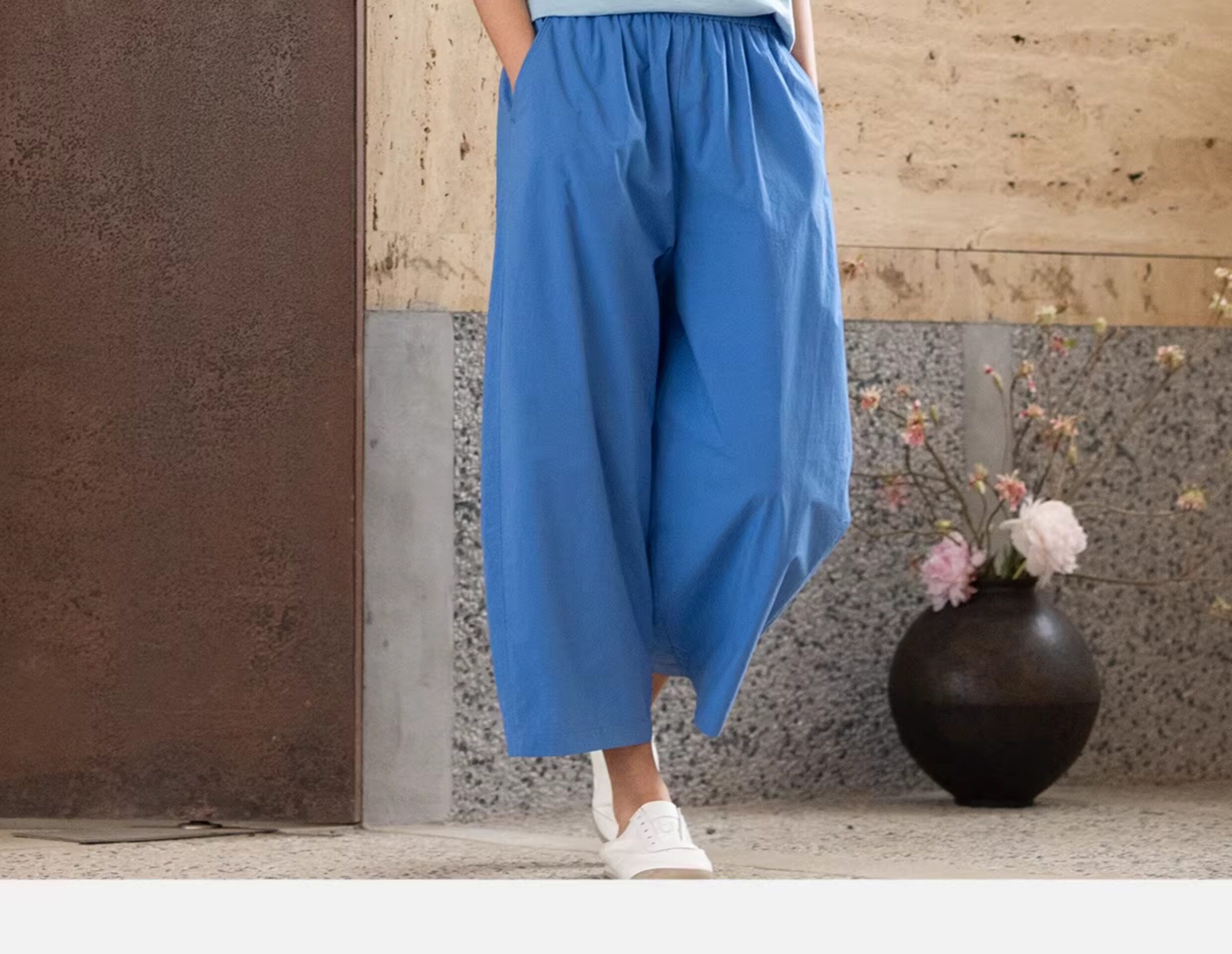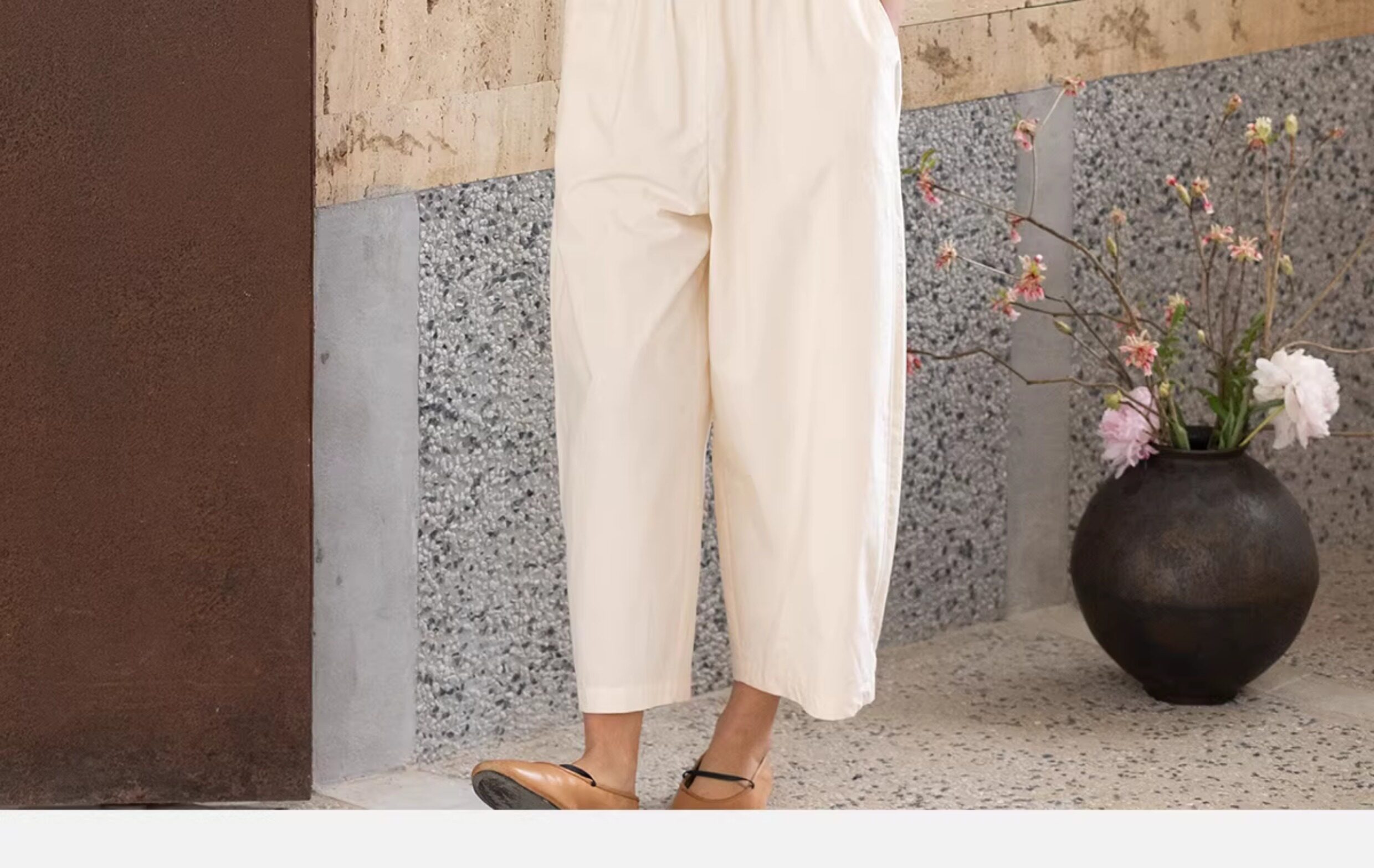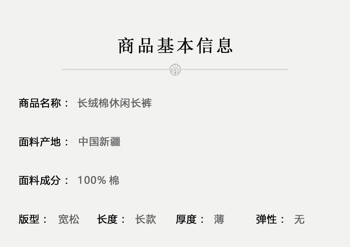 牧衣游原创 60支新疆长绒棉休闲长裤新款宽松简约百搭裤子 晴山