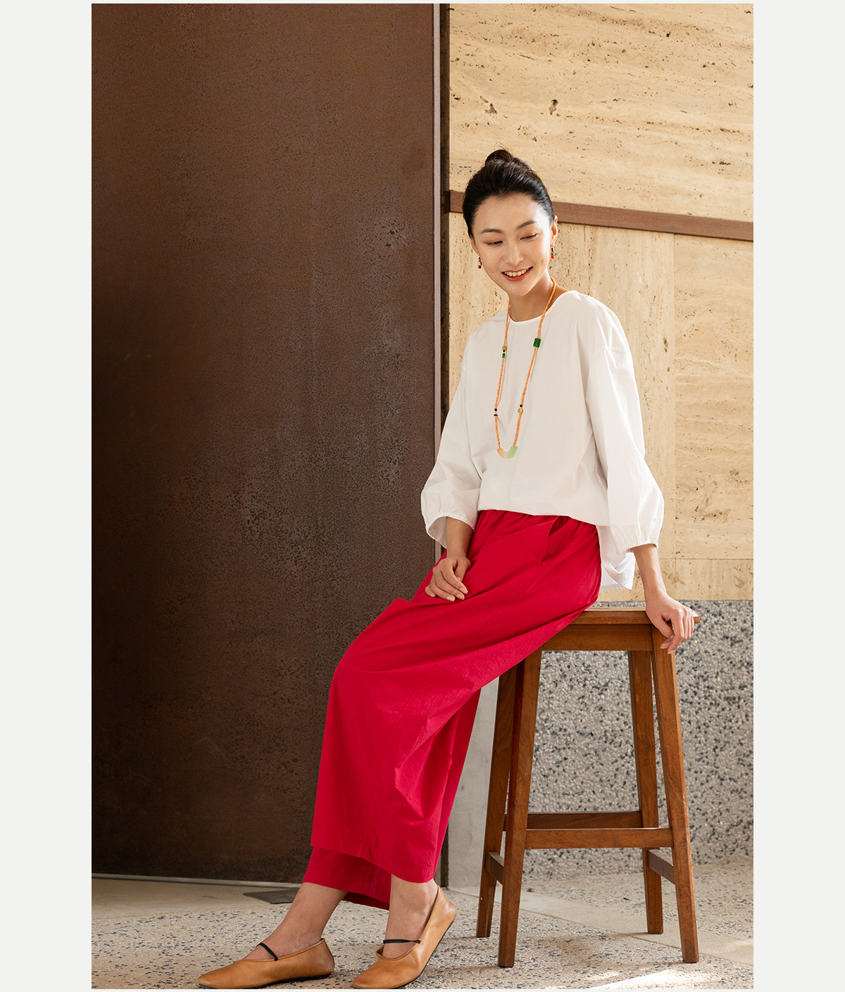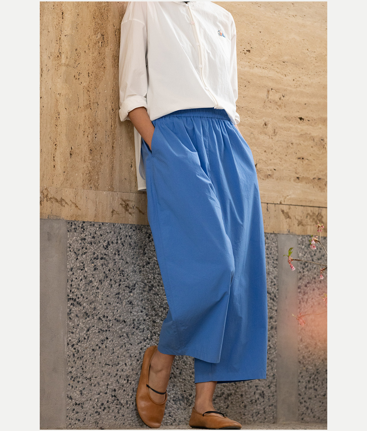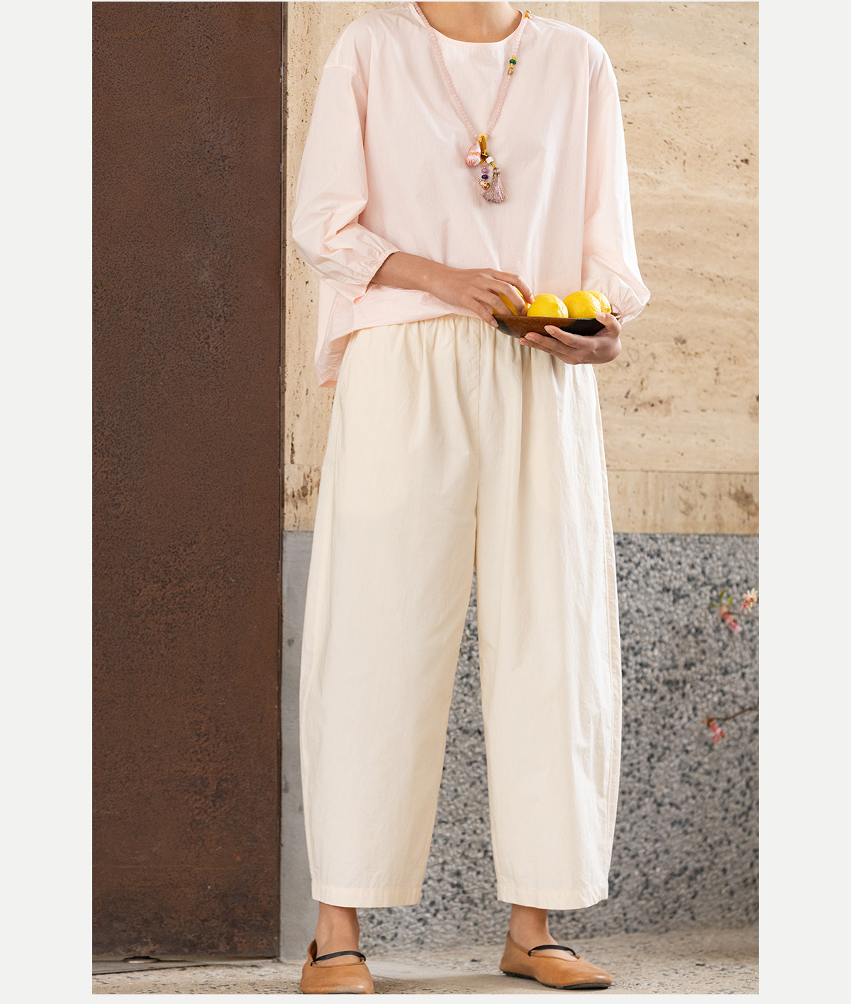 牧衣游原创 60支新疆长绒棉休闲长裤新款宽松简约百搭裤子 晴山